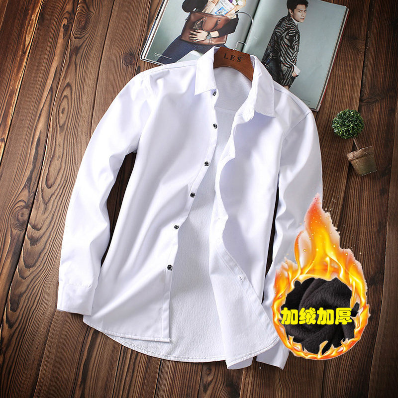 겨울 남자 긴팔 따뜻한 기모 셔츠 남자 두꺼운 슬림 핏 퓨어 화이트 비즈니스 남자 전문 셔츠스토어 가기