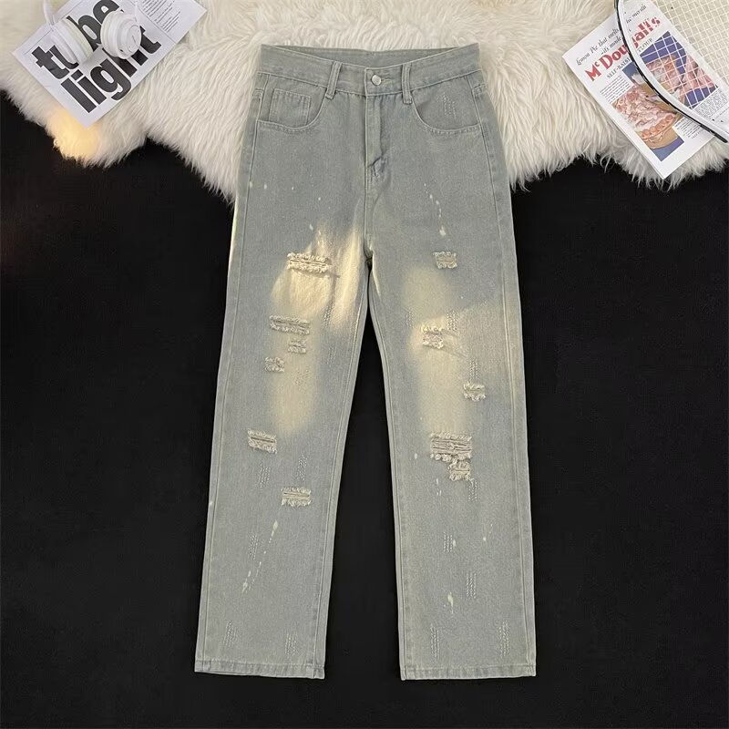 미국 청바지 남성 여름 얇은 미국 하이 스트리트 분위기 찢어진 패션 브랜드 느슨한 스트레이트 캐주얼 바지