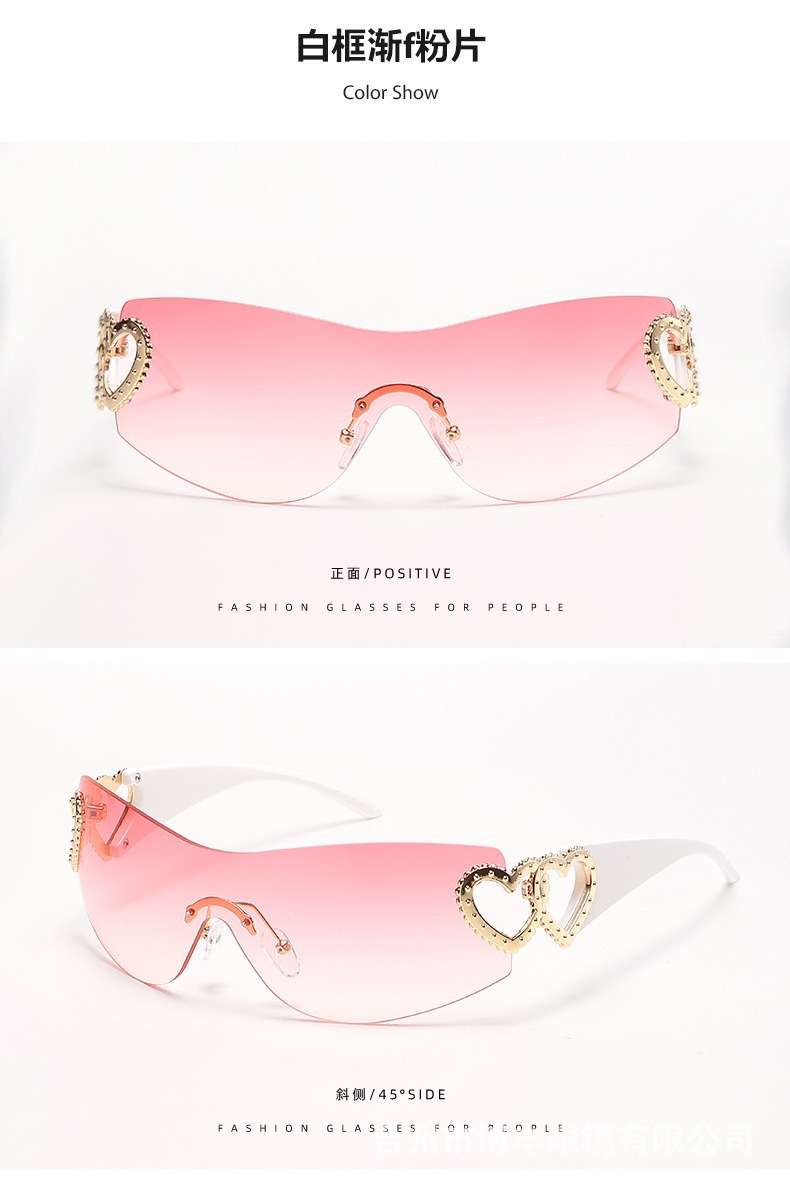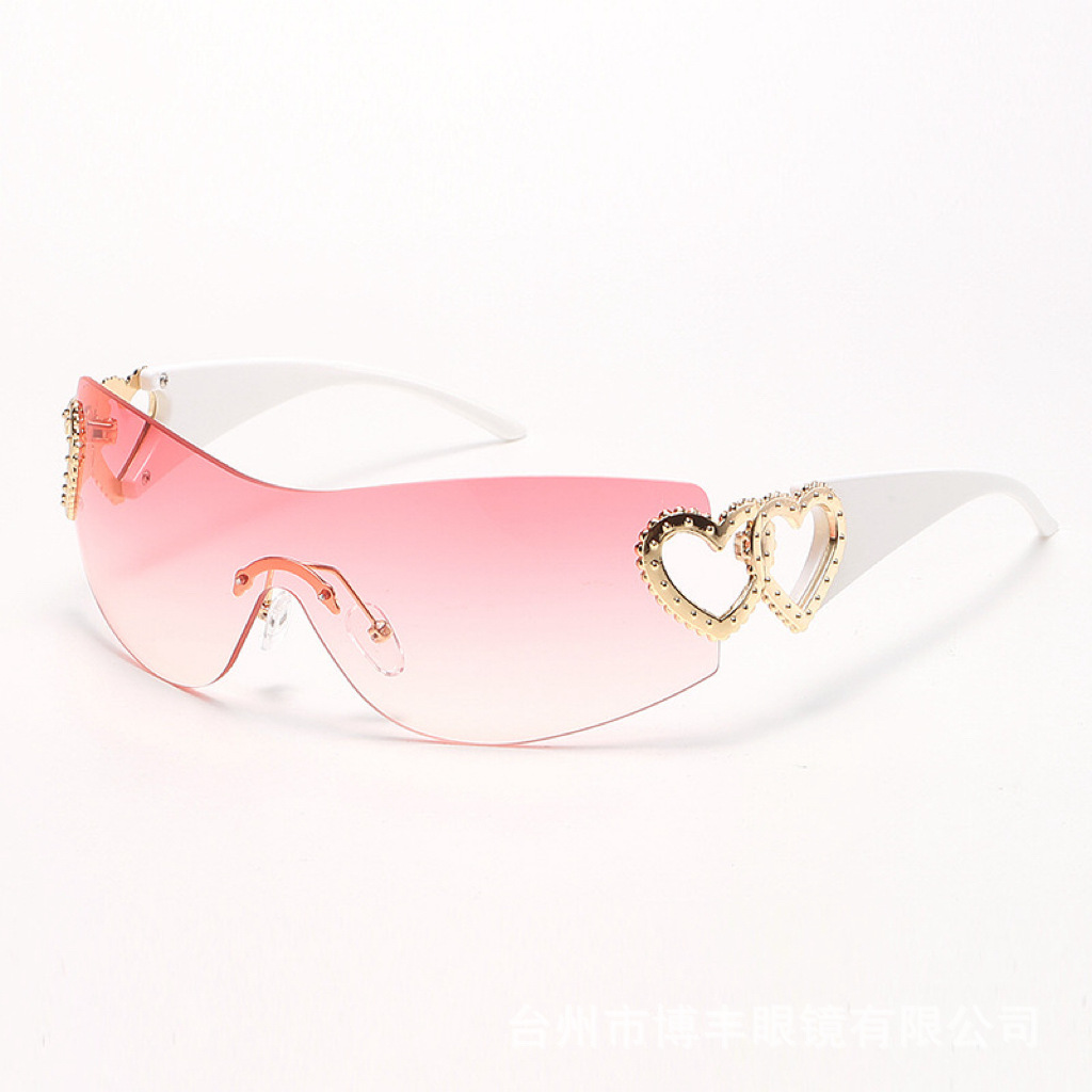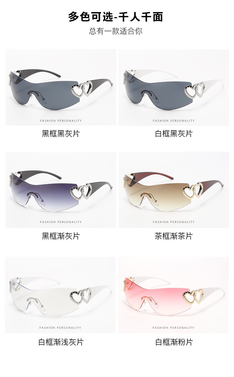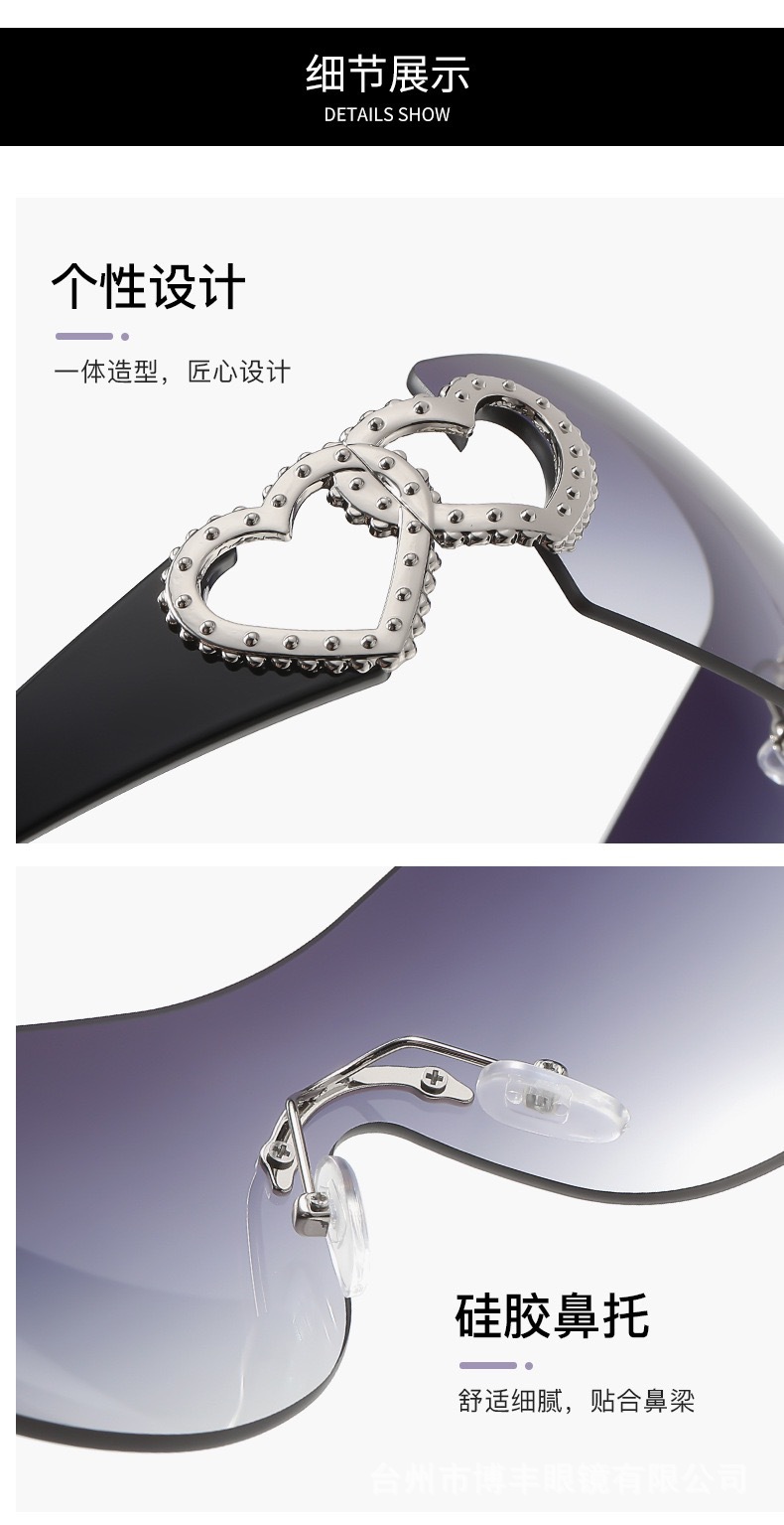 2024 새로운 프레임리스 트렌드 심장 선글라스 uv400 간단한 하이 센스 선글라스 y2k 국경 제조 업체 도매스토어 가기