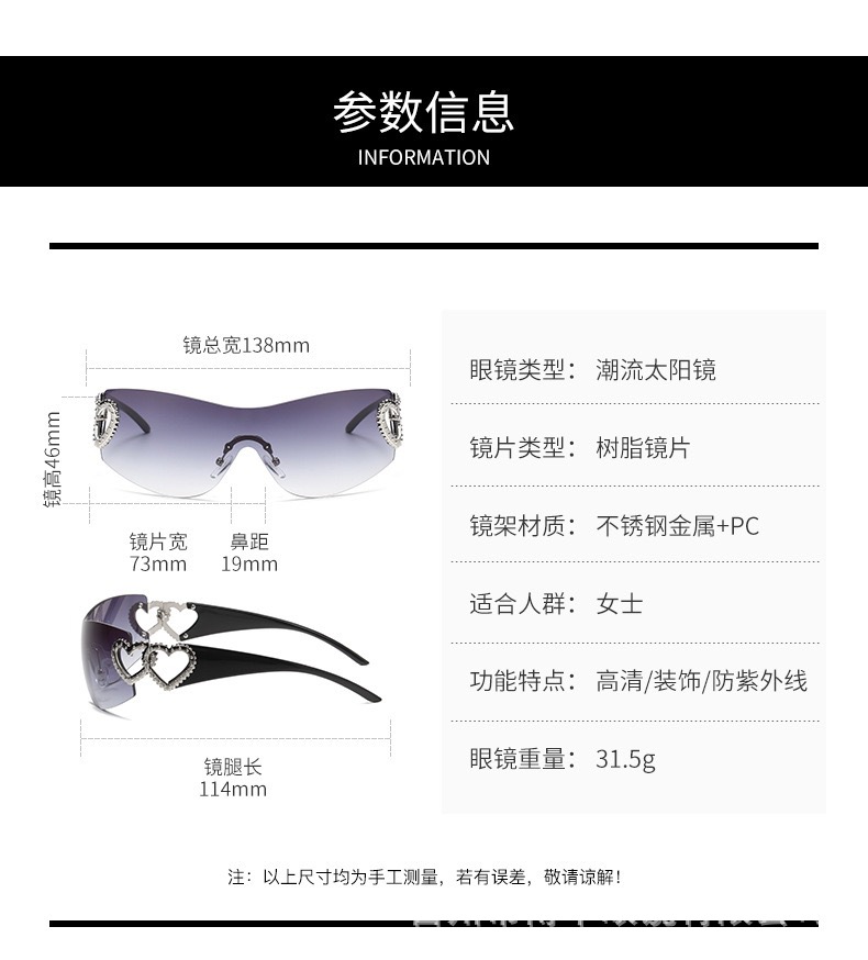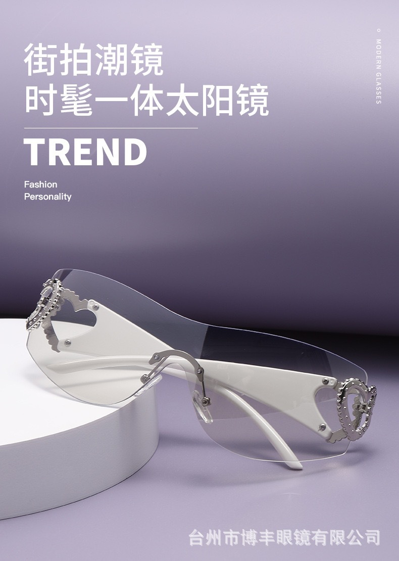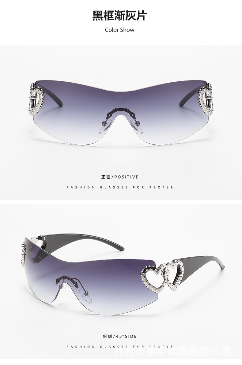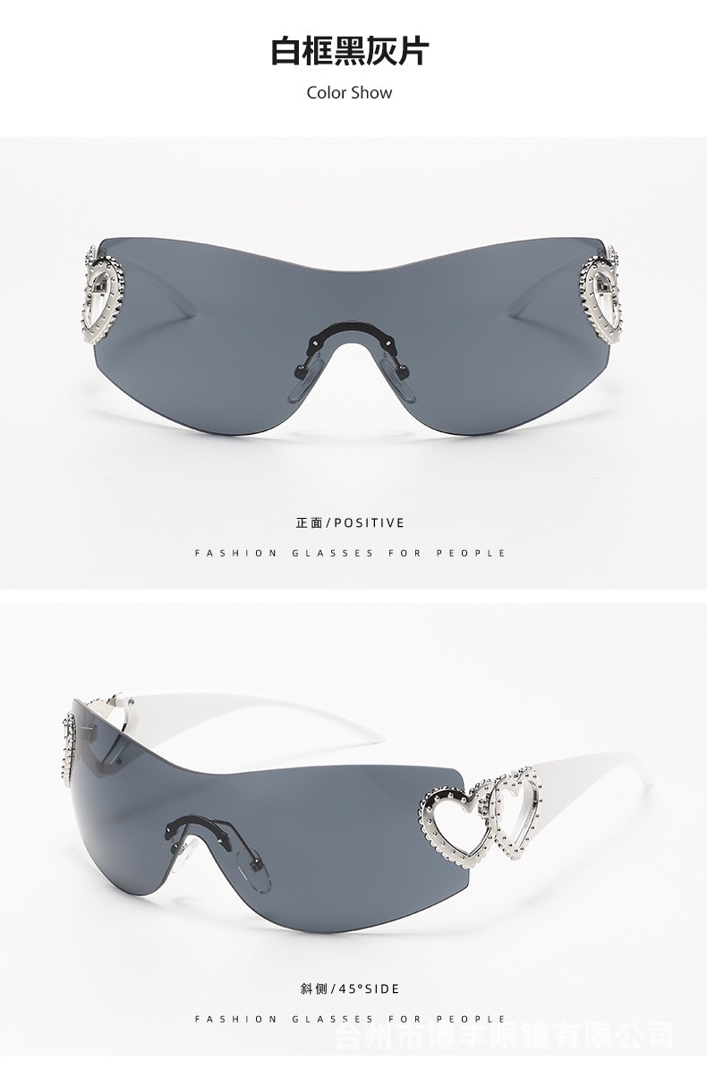 2024 새로운 프레임리스 트렌드 심장 선글라스 uv400 간단한 하이 센스 선글라스 y2k 국경 제조 업체 도매스토어 가기