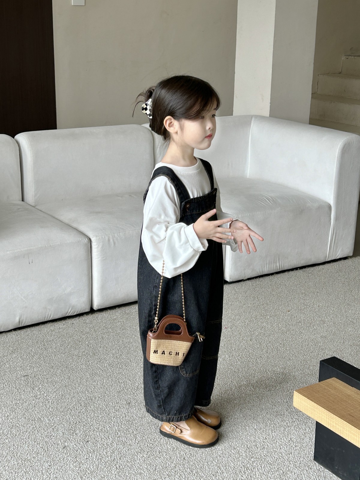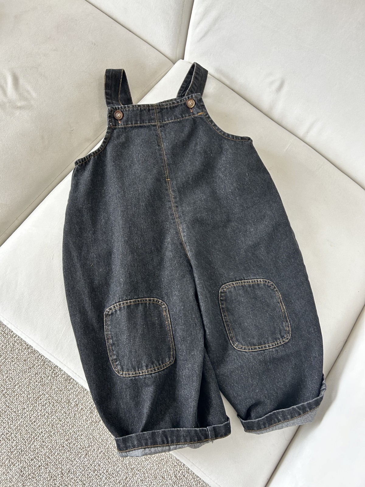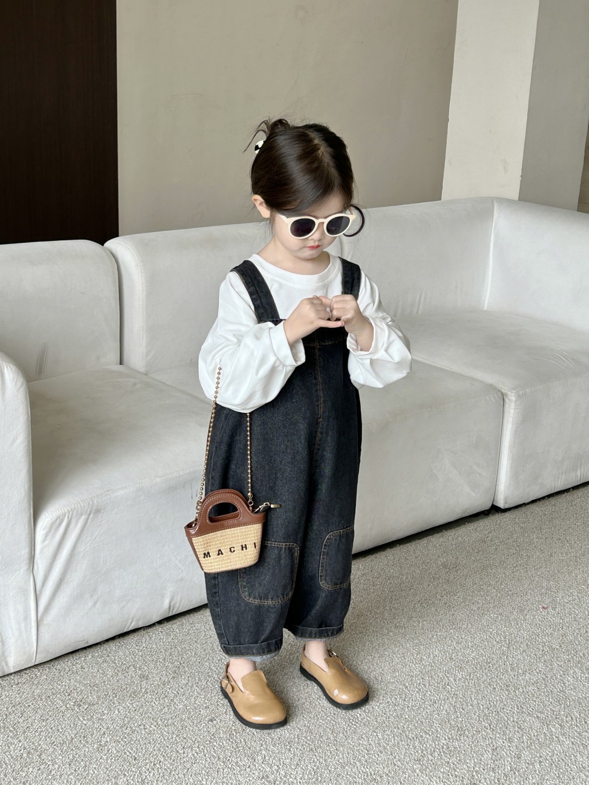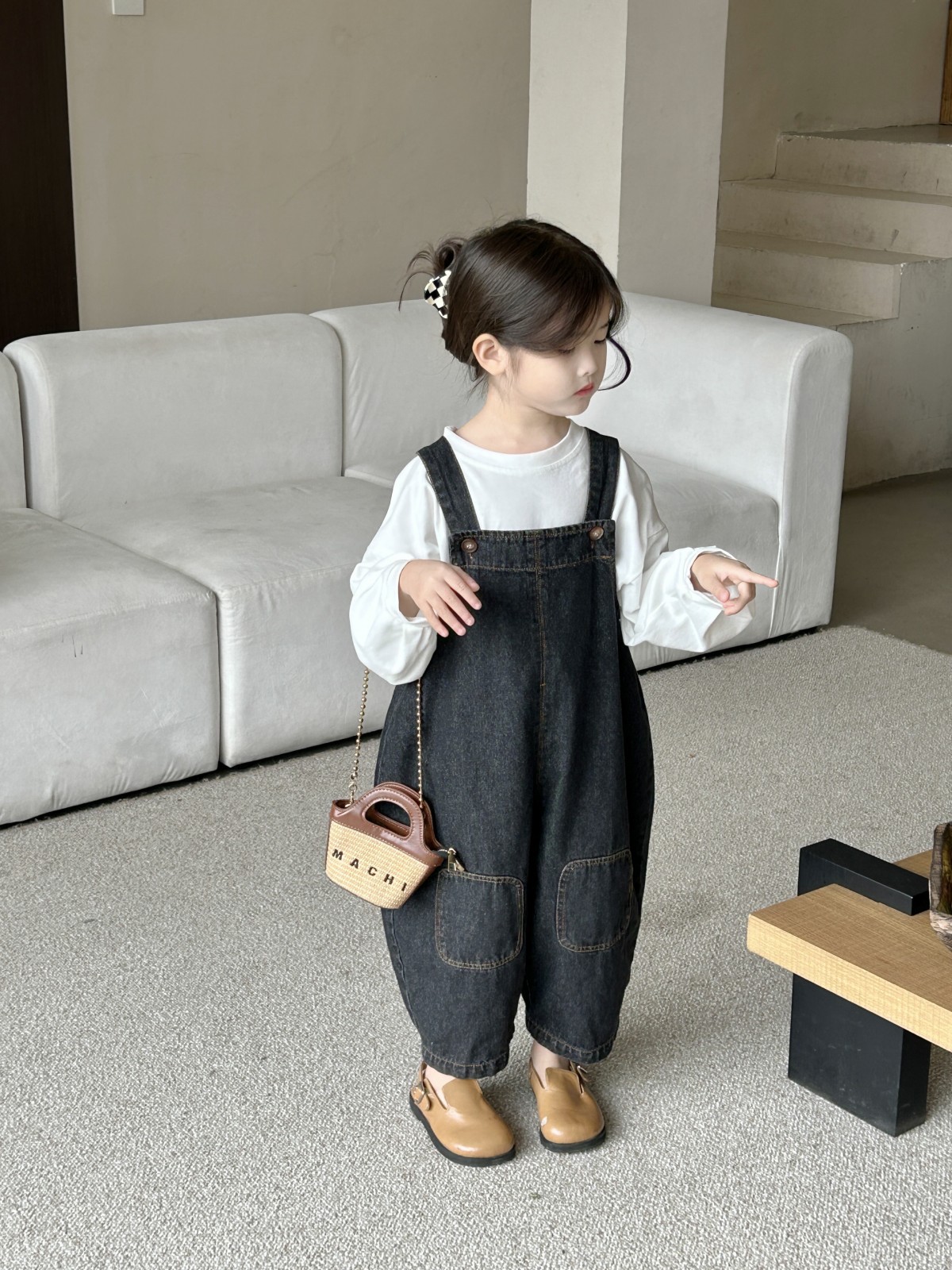봄 새 어린이 복고풍 중립 향수를 씻은 데님 멜빵 한국판 아기의 느슨한 멜빵