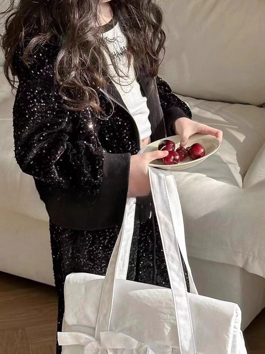 소녀 스팽글 지퍼 셔츠 코트 넓은 다리 바지 투피스 세트 2024 봄 새로운 어린이 서양식 정장 패션스토어 가기