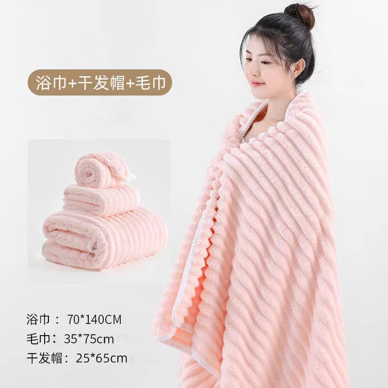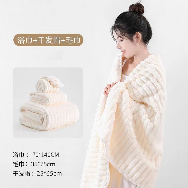 • 목욕타월 + 수건 + 샤워캡 [고급 나사형 가장자리]