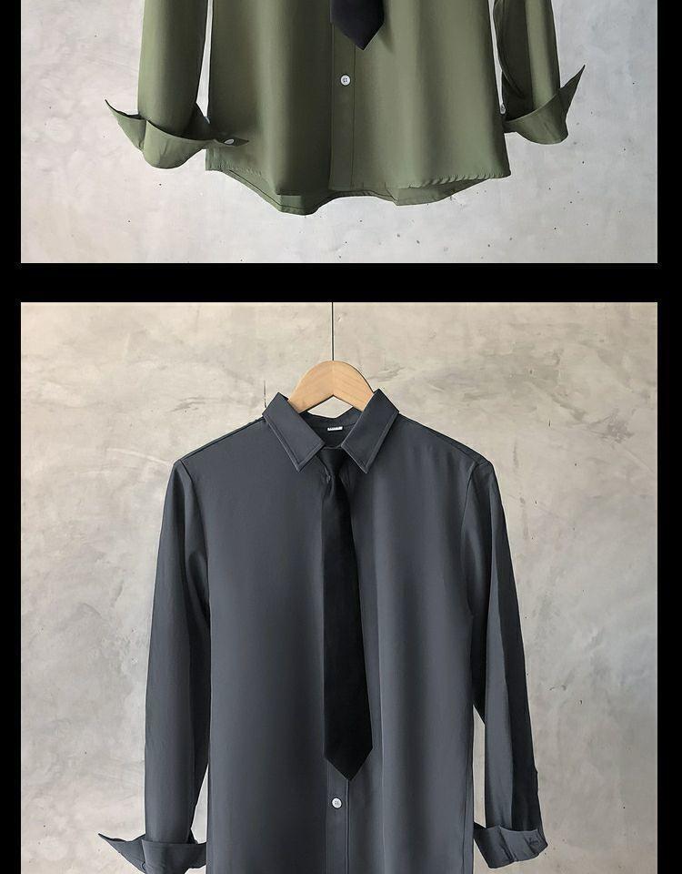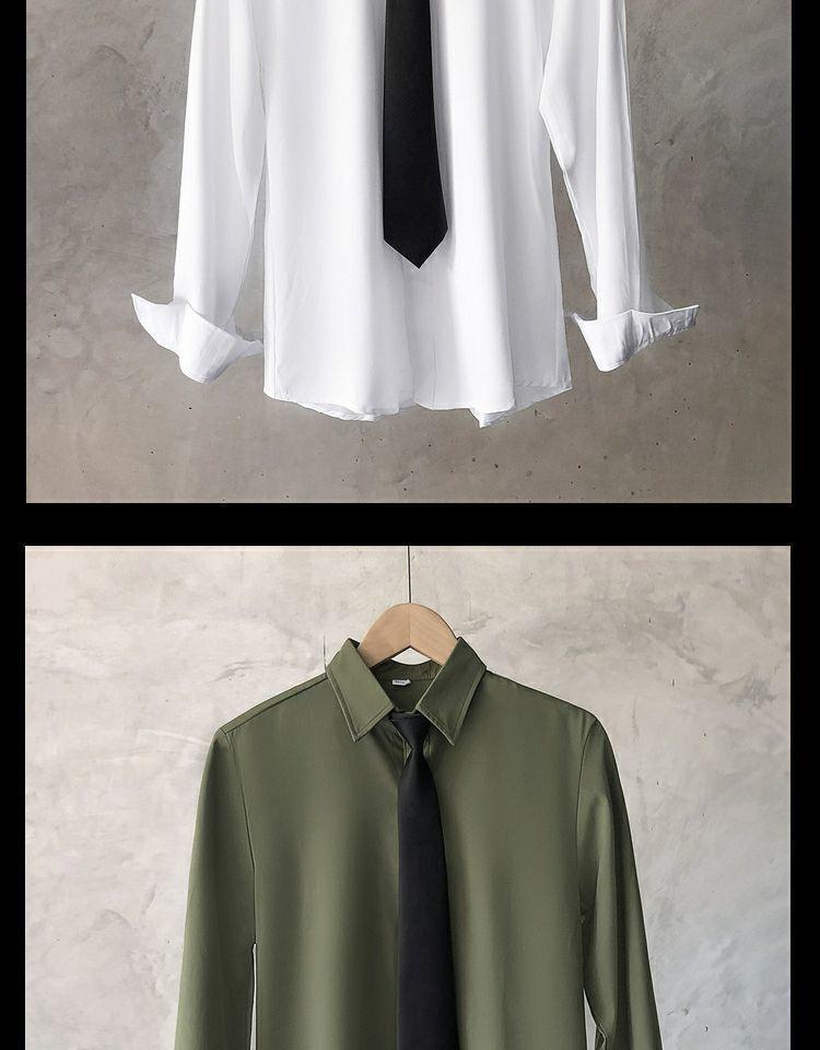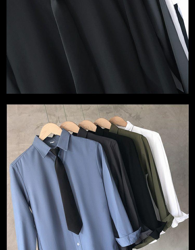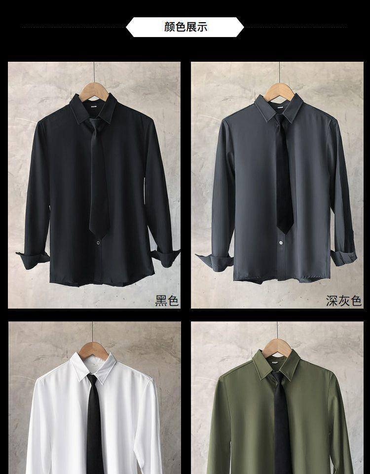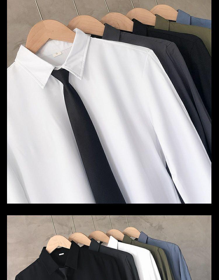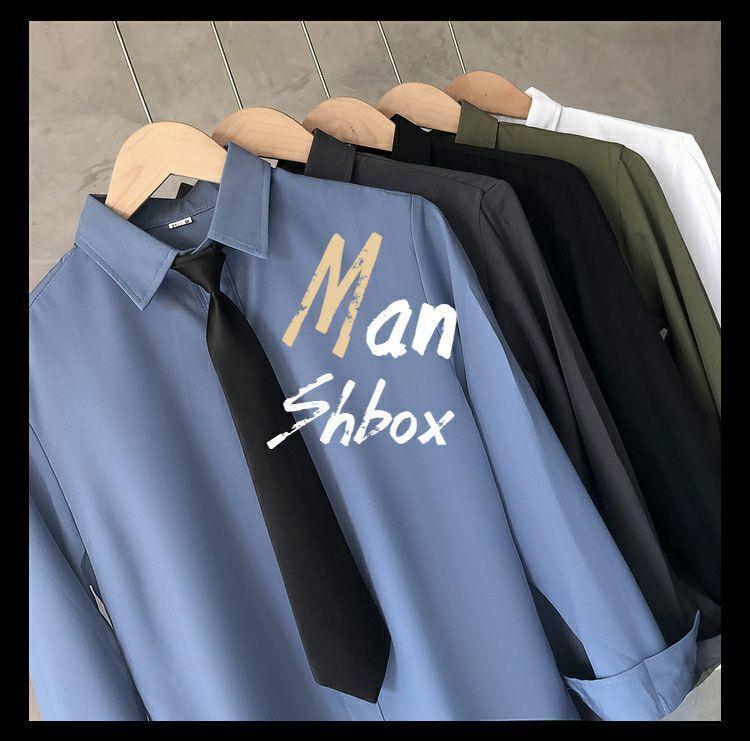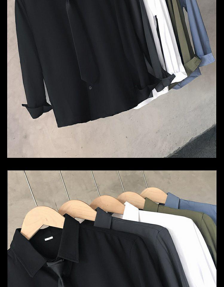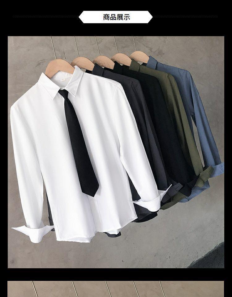 화이트 셔츠 남자의 가을 새로운 간단한 옷깃 셔츠 남자의 슬림 핏 긴팔 셔츠 캐주얼 올 매치 아우터 탑