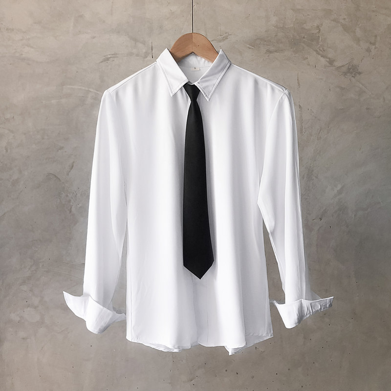 • 긴 소매 스트레치 화이트 (넥타이 보내기)