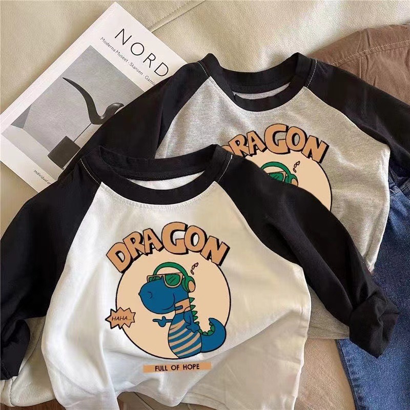 어린이 면화 소년 소녀 바닥 셔츠 봄과 가을 2023 만화 공룡 어린이 아기 탑 티셔츠 긴 소매스토어 가기