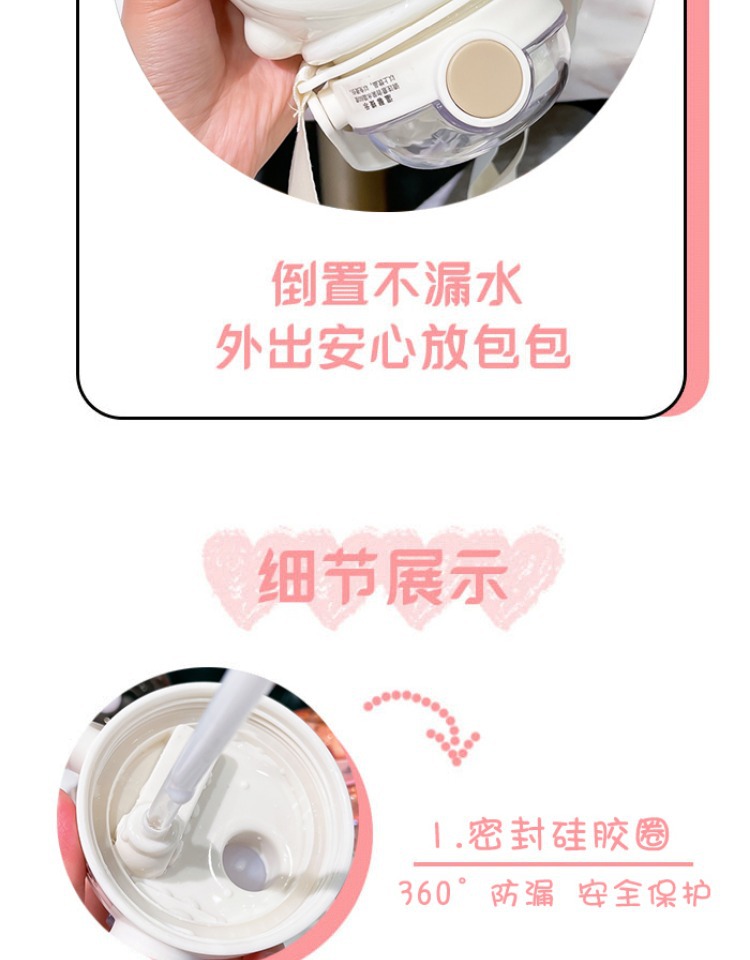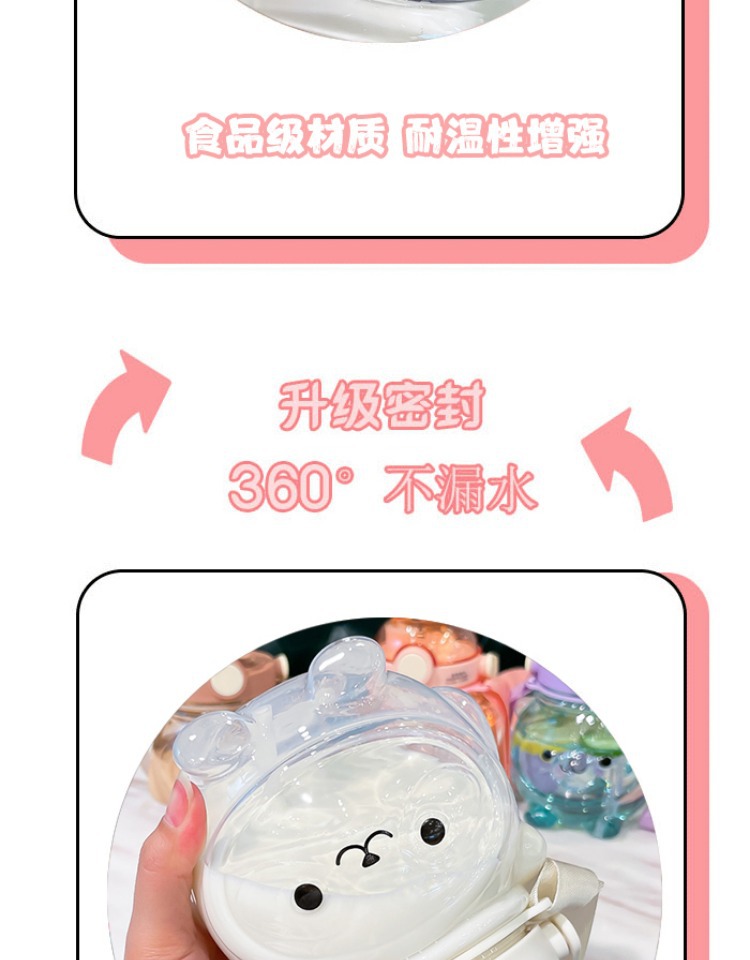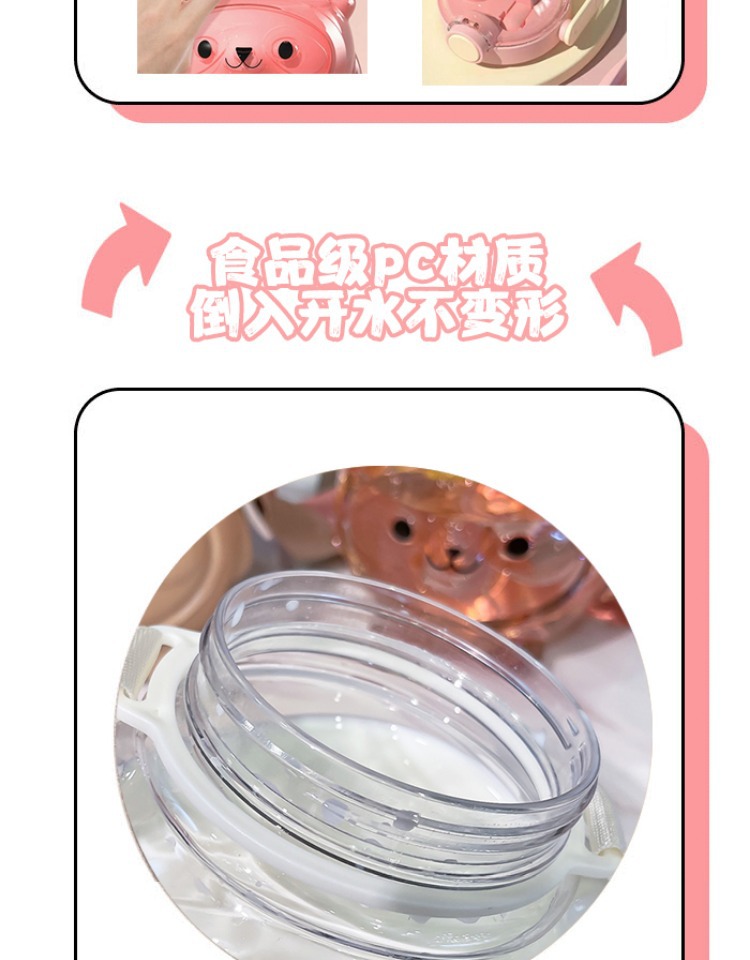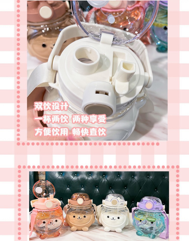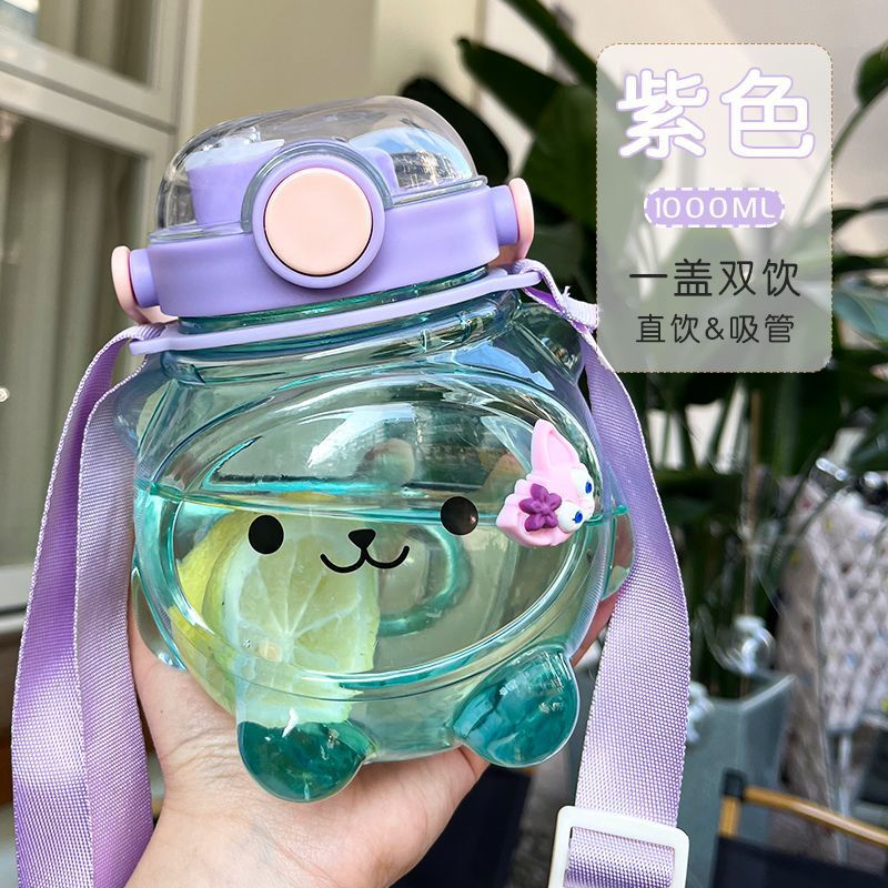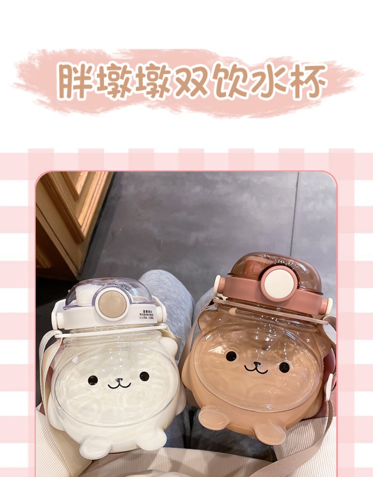 만화 부두 곰 플라스틱 물 컵 귀여운 큰 배꼽 컵 여름 대용량 주전자 어린이 스트랩 밀짚 컵