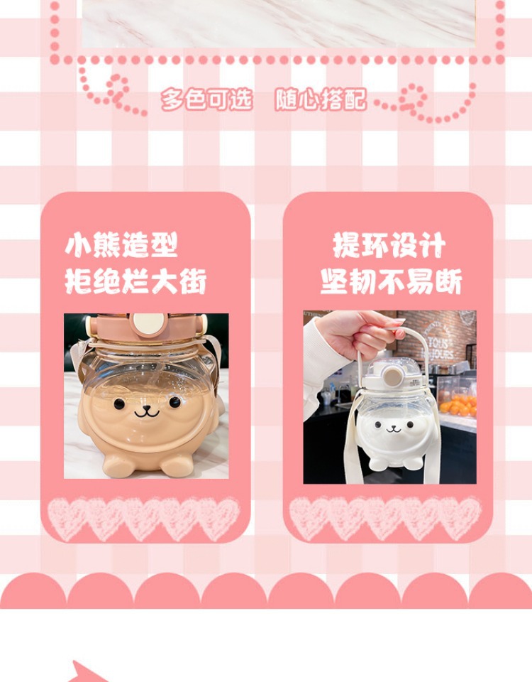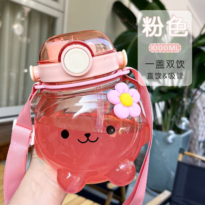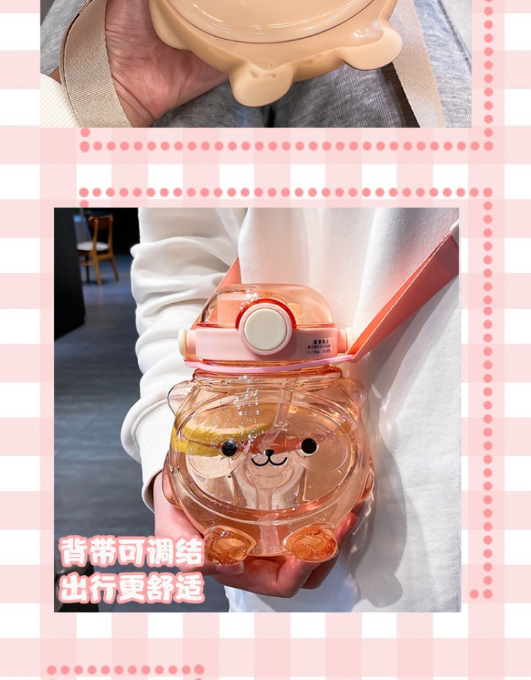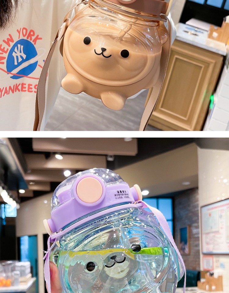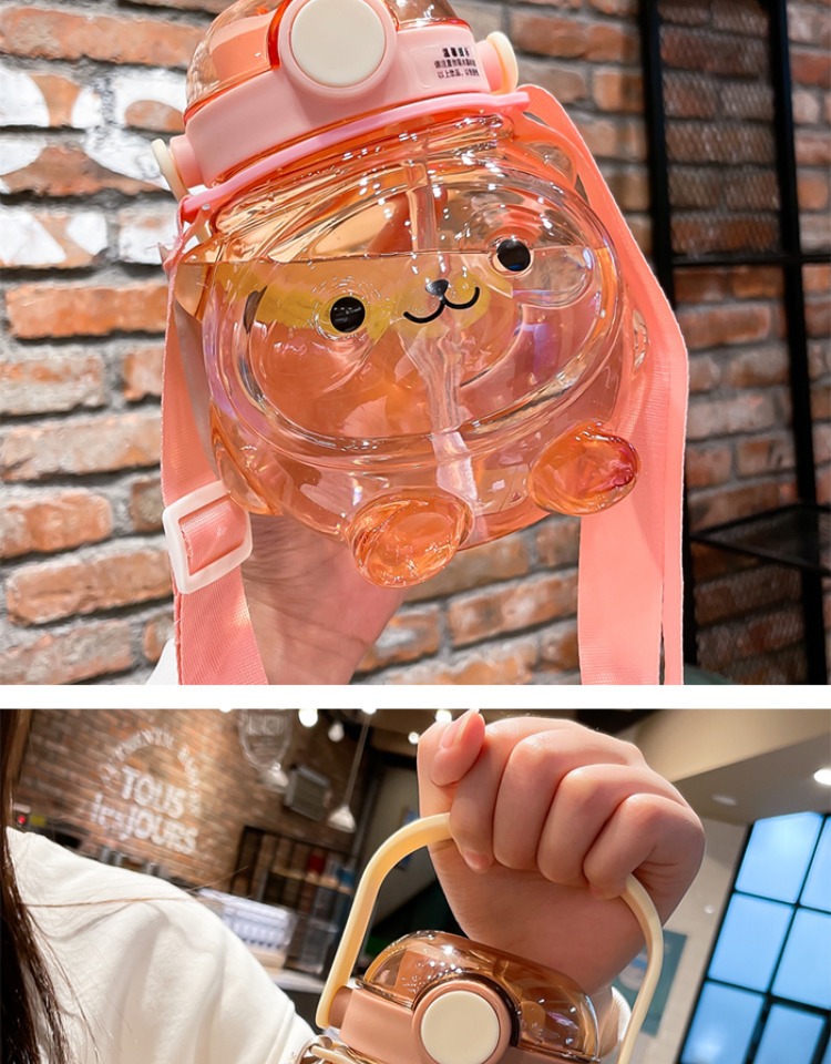 만화 부두 곰 플라스틱 물 컵 귀여운 큰 배꼽 컵 여름 대용량 주전자 어린이 스트랩 밀짚 컵스토어 가기