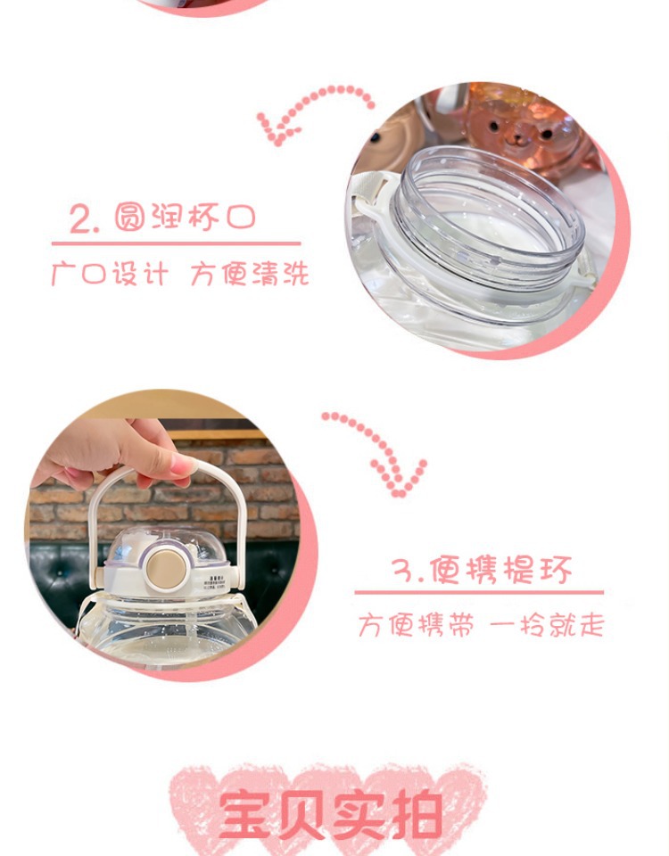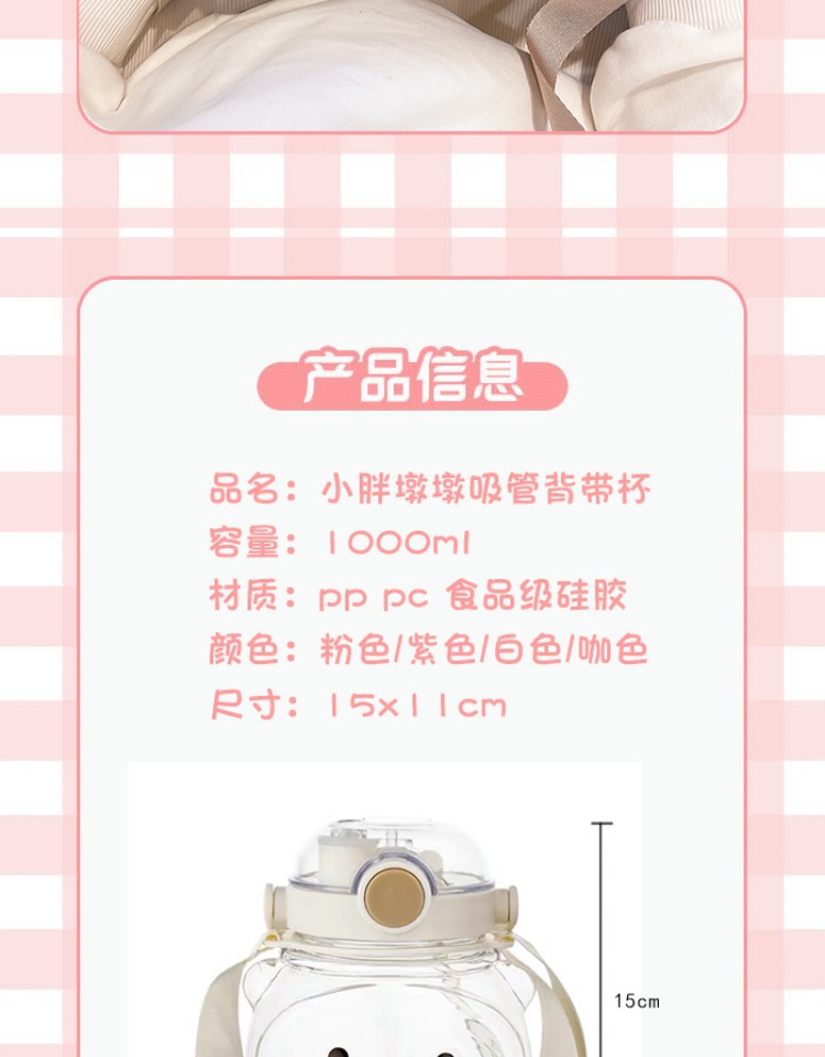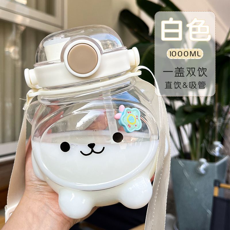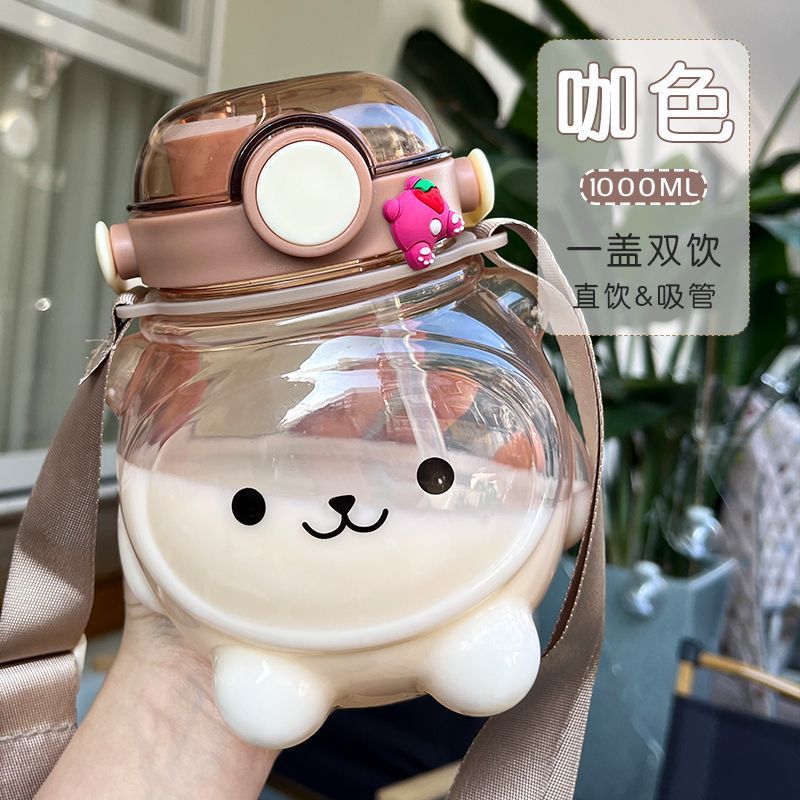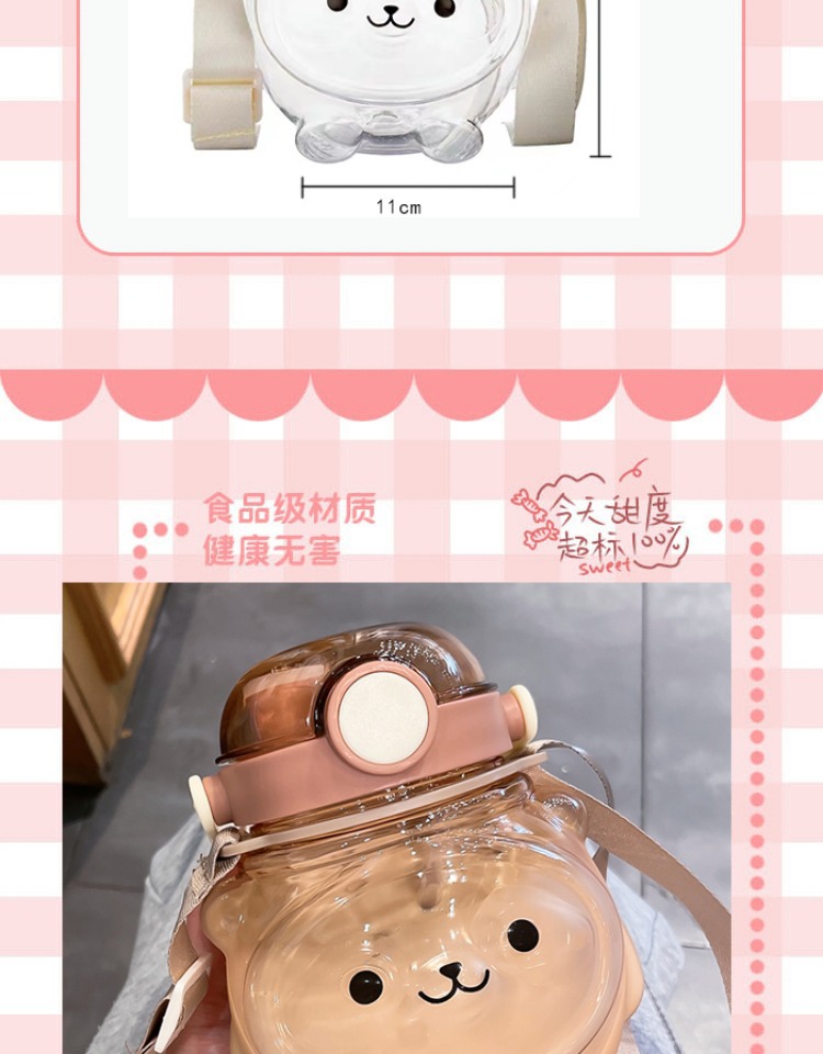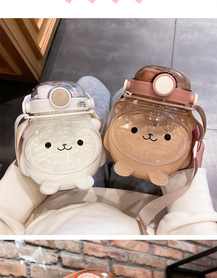 만화 부두 곰 플라스틱 물 컵 귀여운 큰 배꼽 컵 여름 대용량 주전자 어린이 스트랩 밀짚 컵스토어 가기