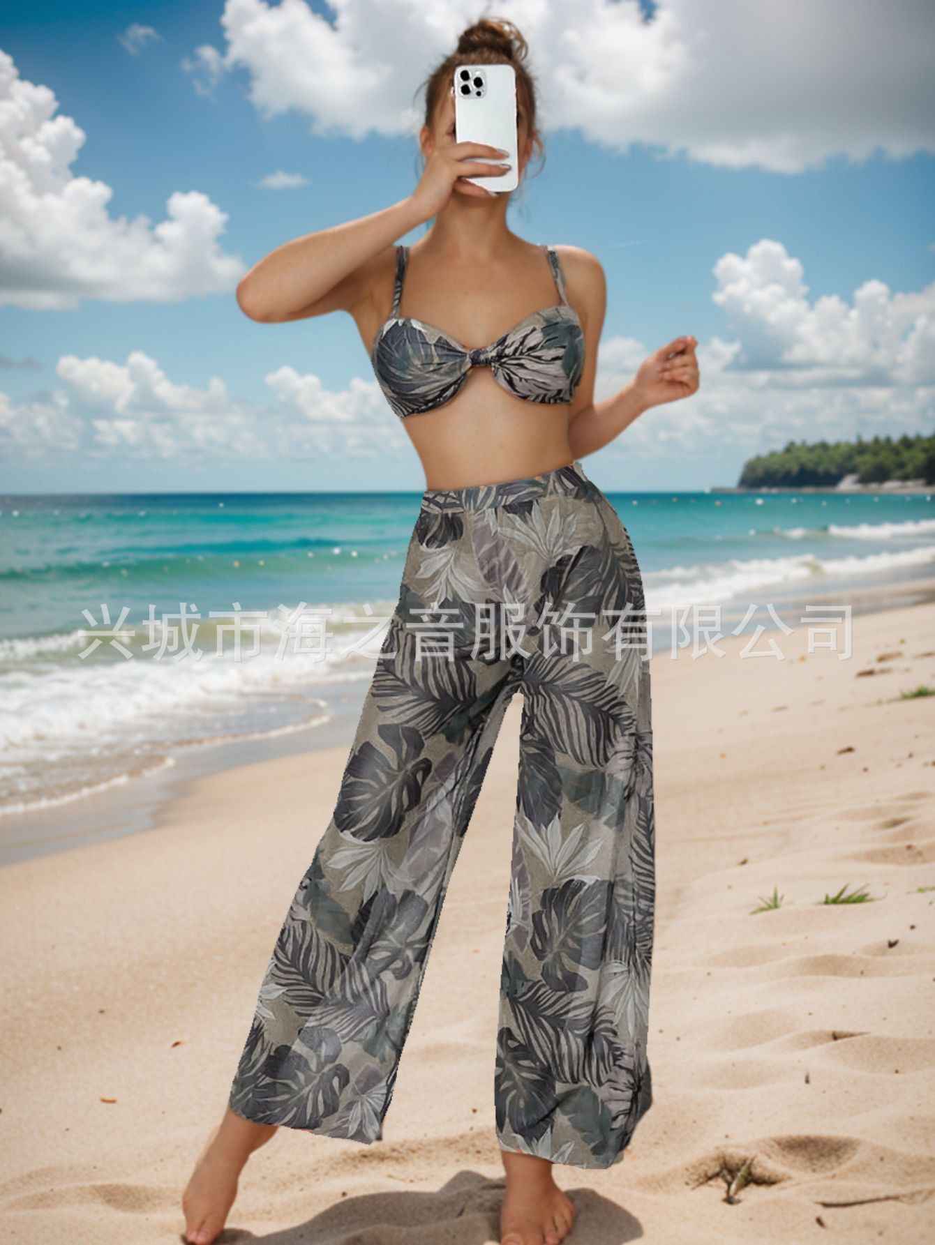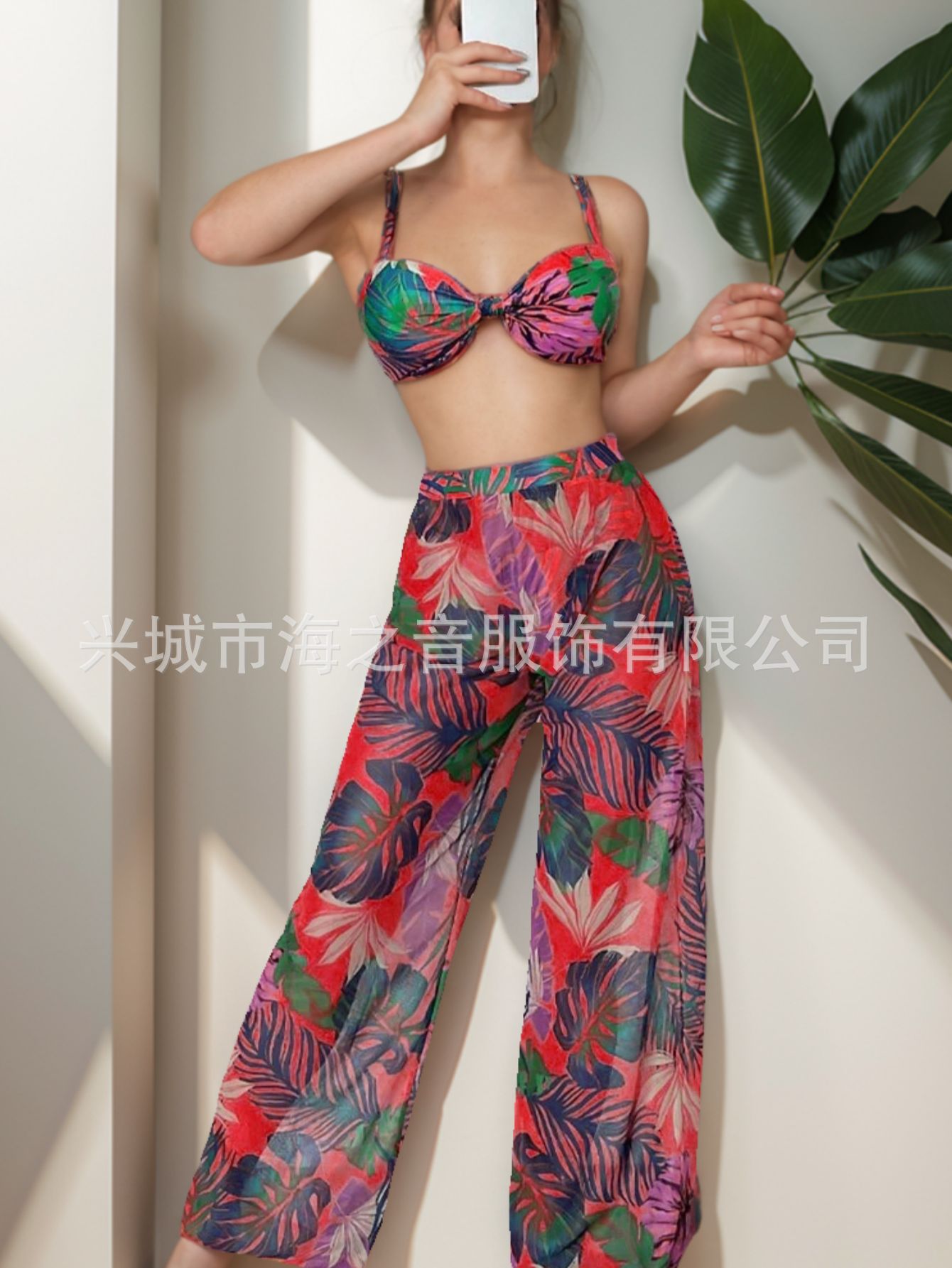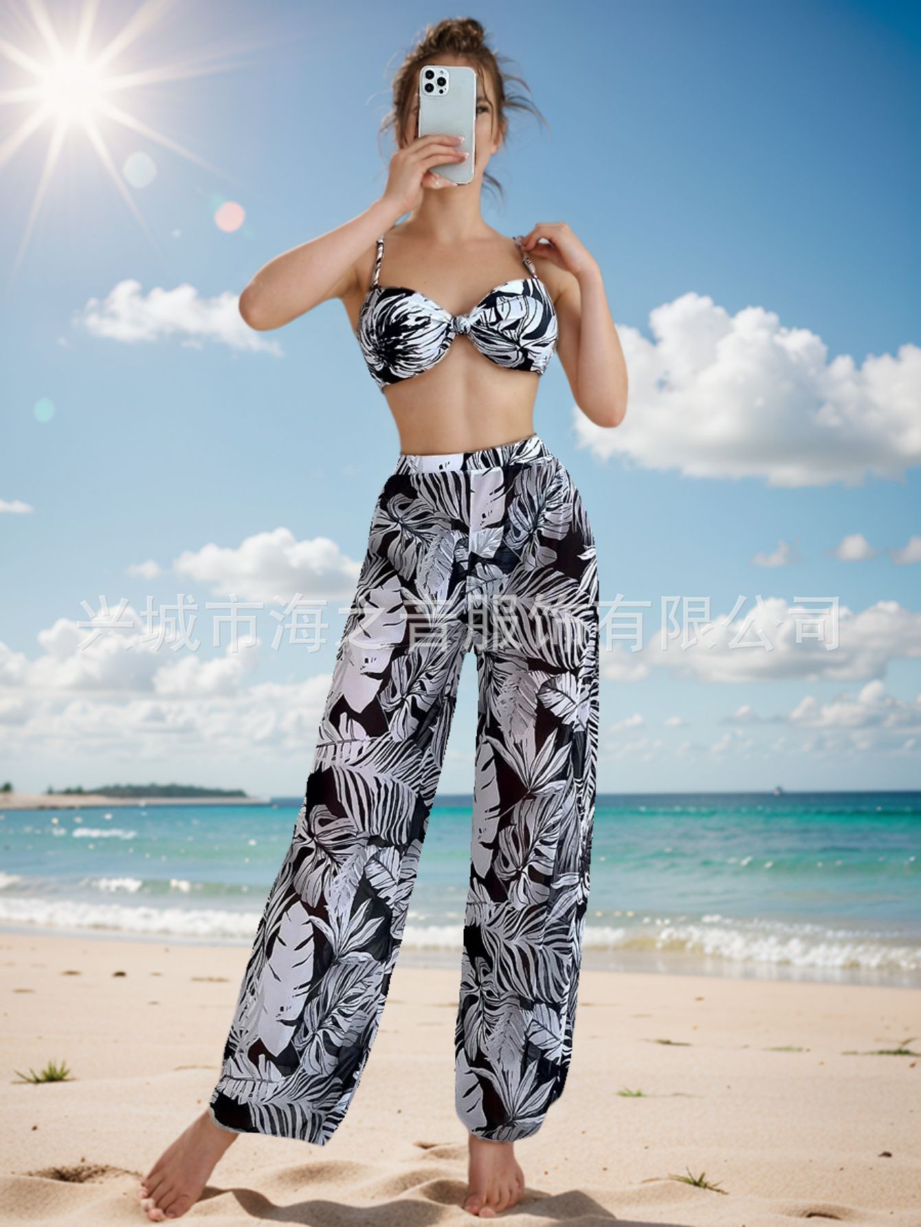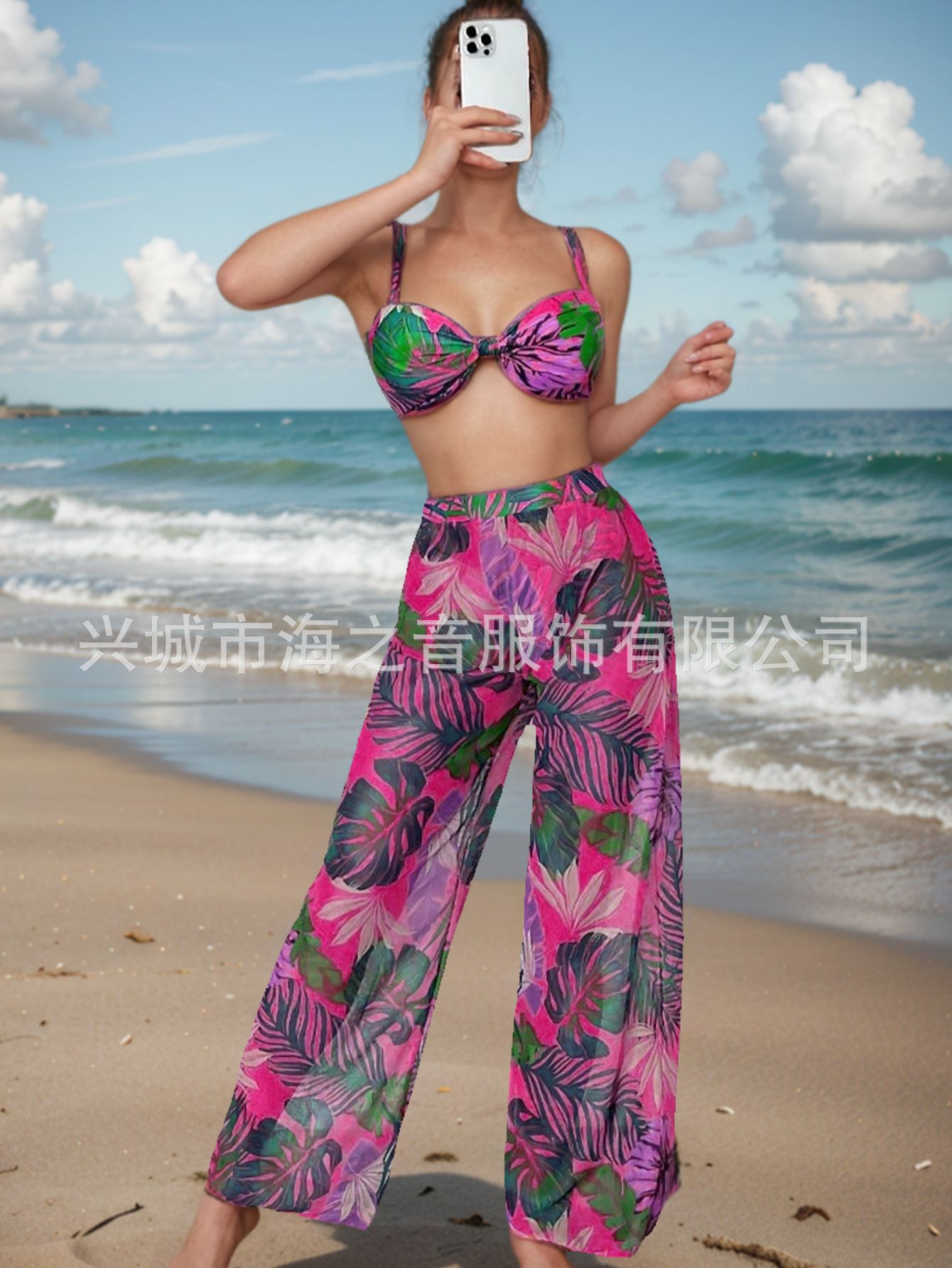 2024 새로운 수영복 유럽과 미국의 섹시한 비키니 메쉬 바지 3 피스 투피스 여성용 수영복 비키니