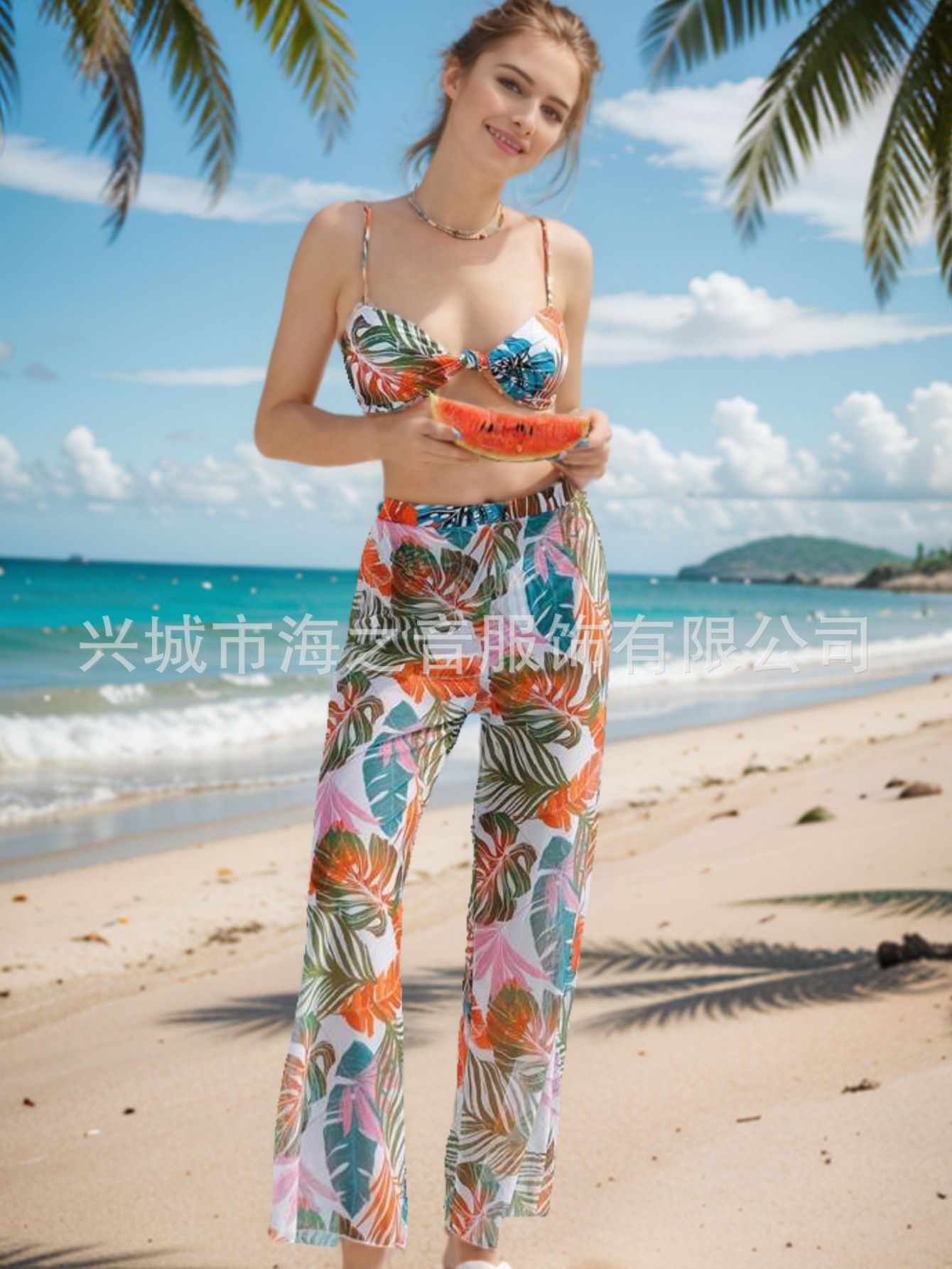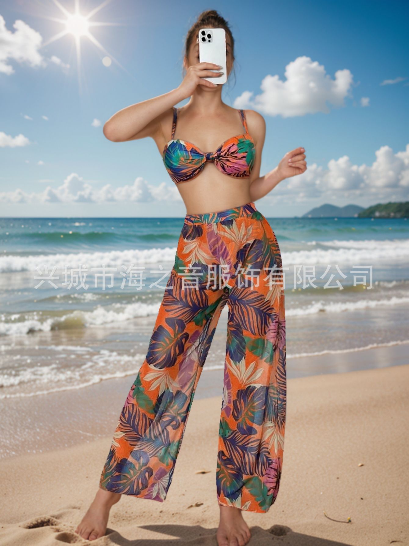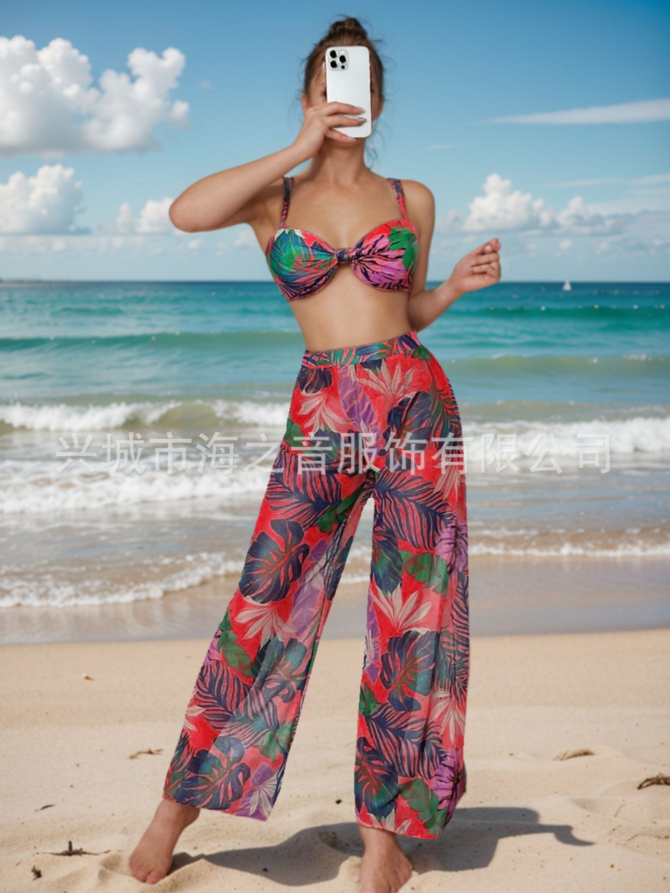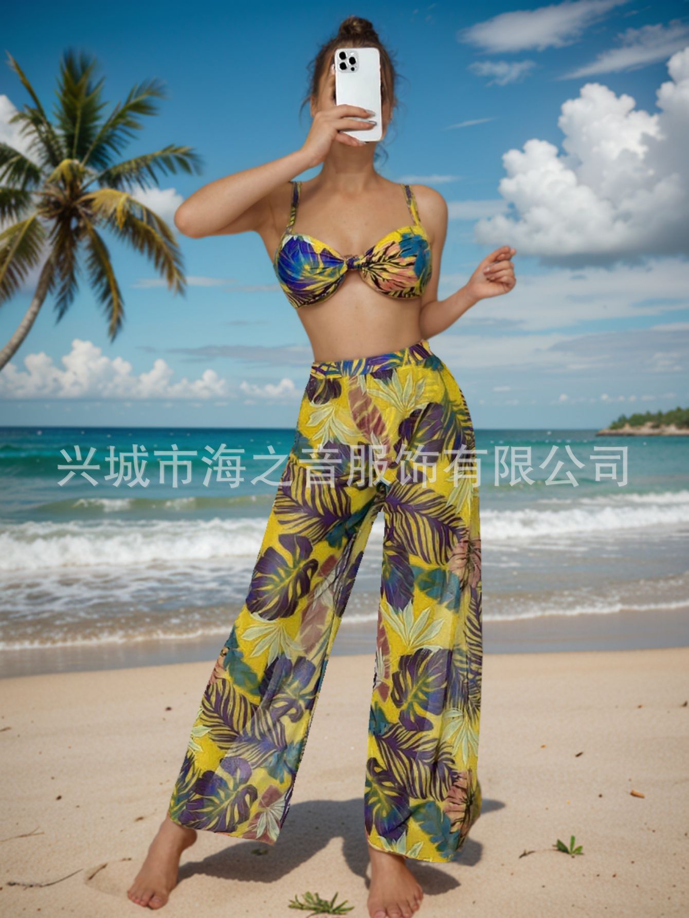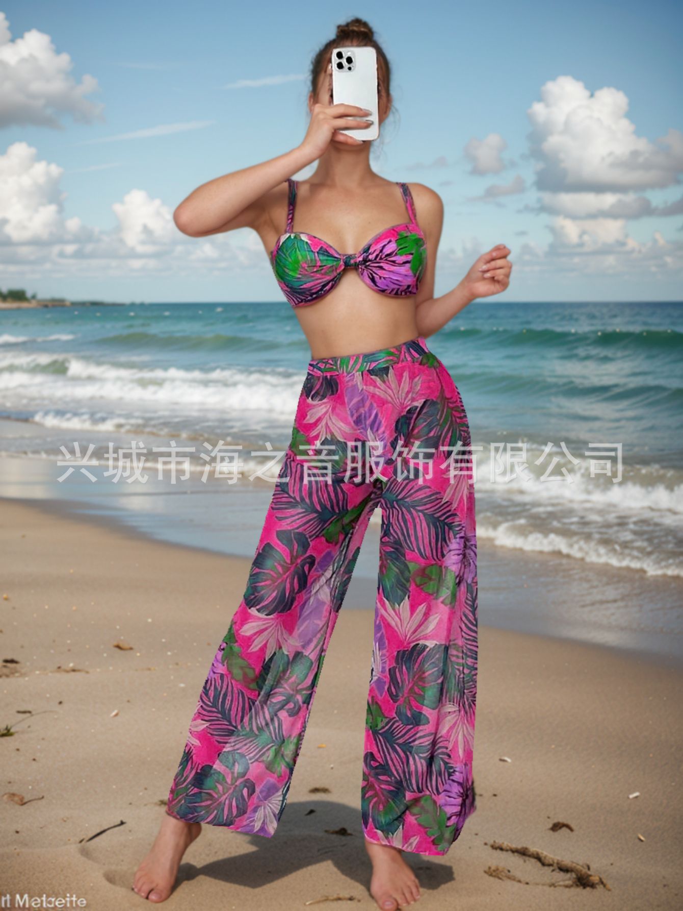 2024 새로운 수영복 유럽과 미국의 섹시한 비키니 메쉬 바지 3 피스 투피스 여성용 수영복 비키니