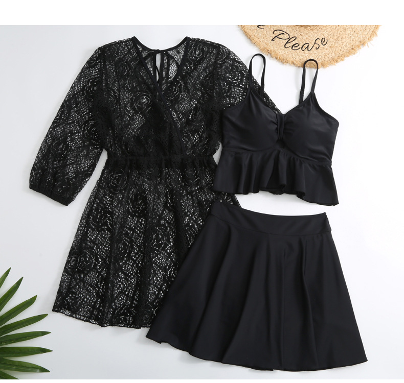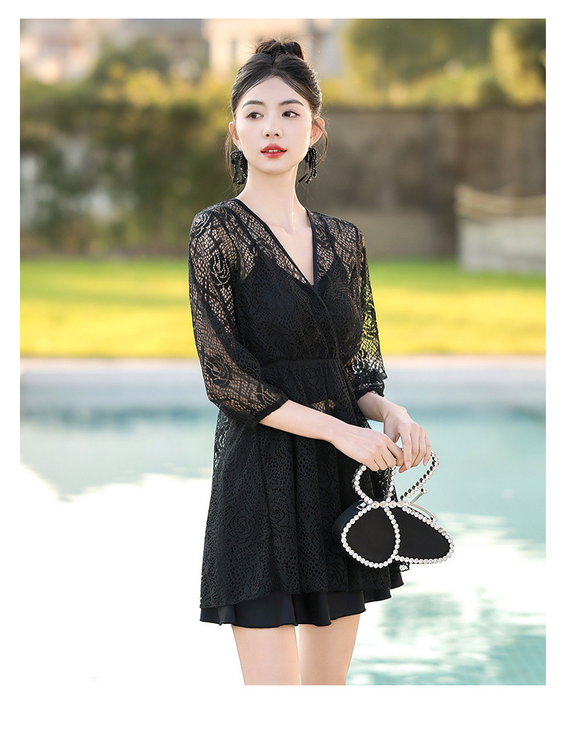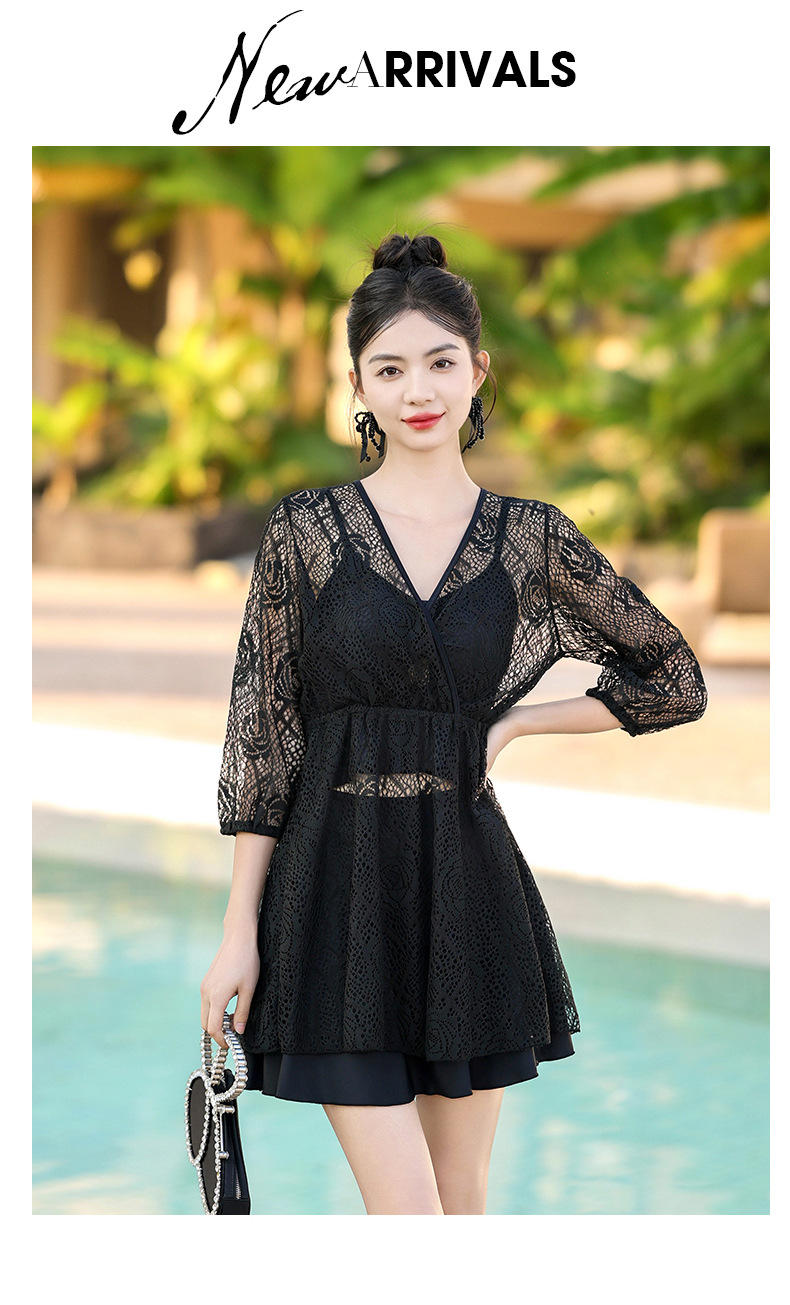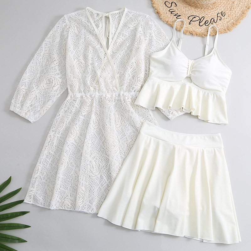 여성 수영복 2024 새로운 온천 슬리밍 고급 배 커버 스플릿 3 피스 세트 플러스 사이즈 보수적 인 겨울 수영복