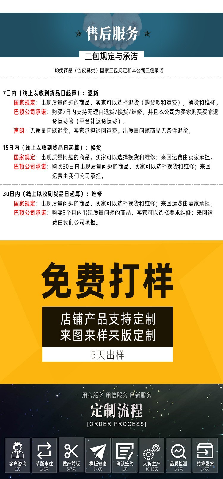 公司和工厂还接受来图来样加工生产/贴牌各类皮具团购和订单,免费设计制作产前样包,免费设计压印/五金激光客户LOGO。本公司网店以优良的质量,低廉的价格,优质的服务欢迎新老客户前来订购!