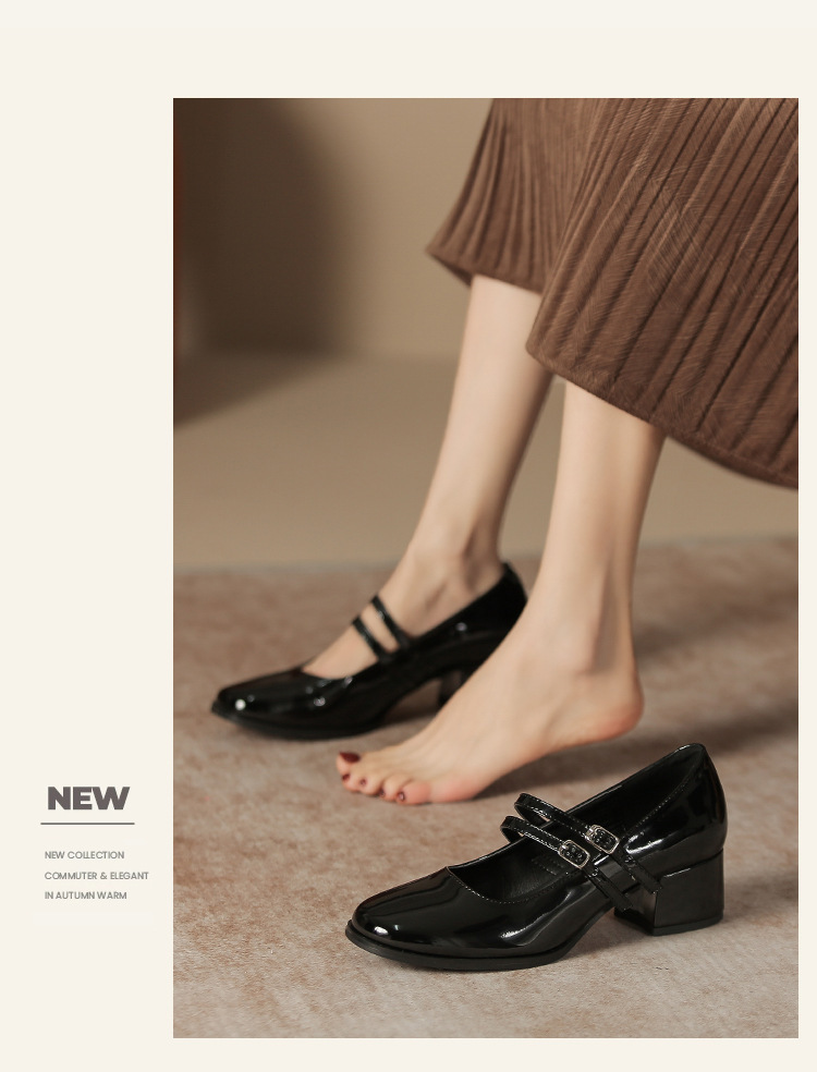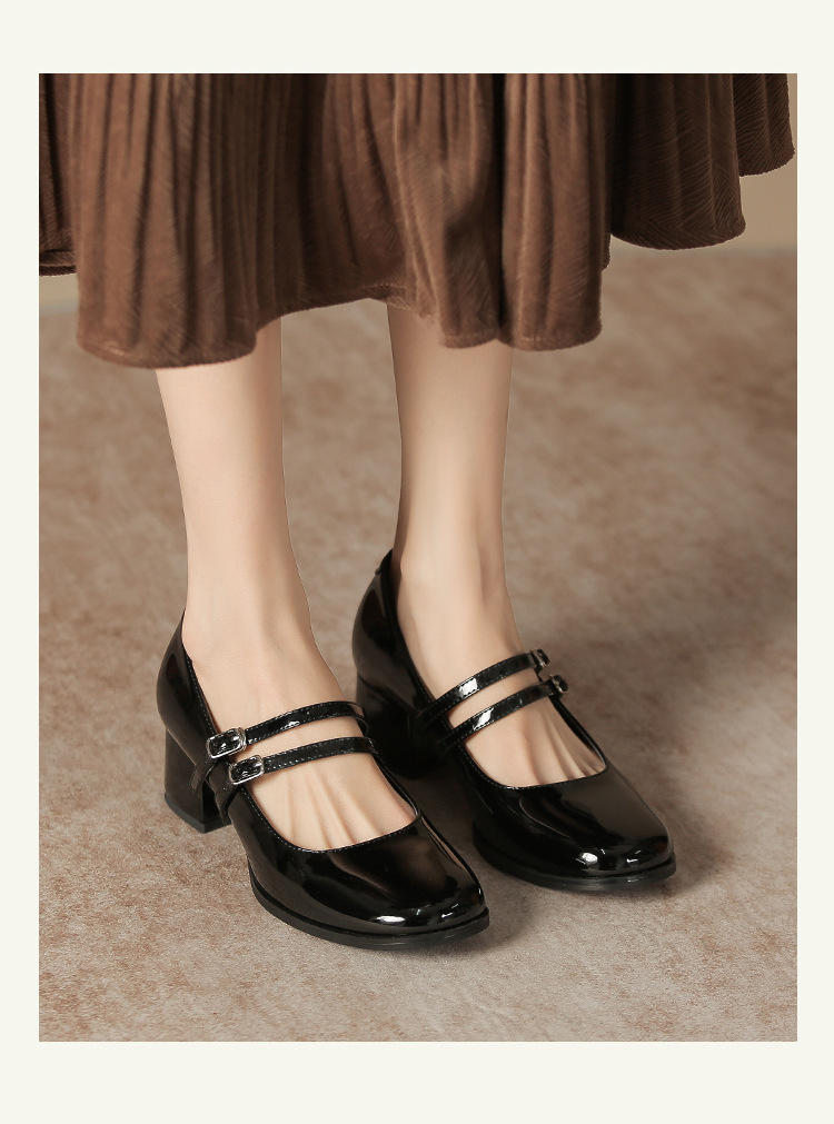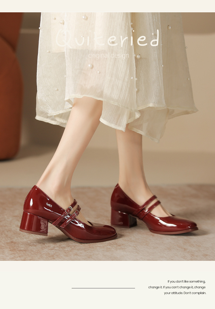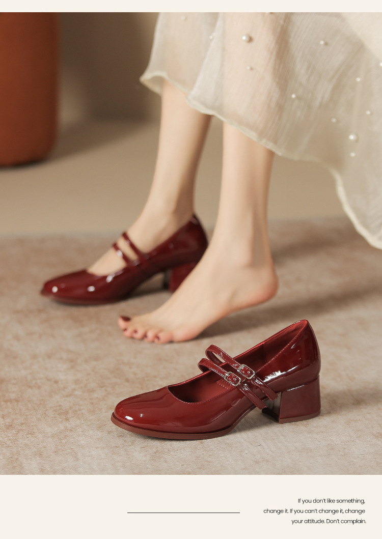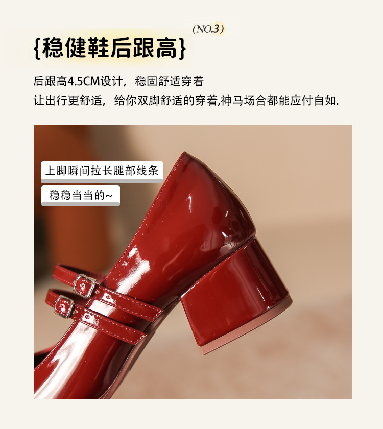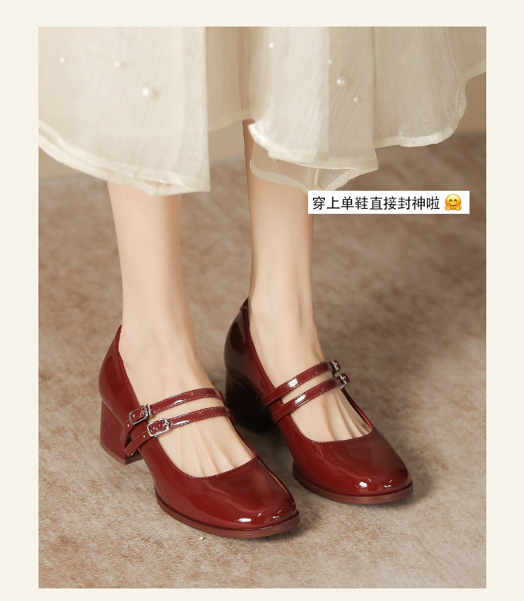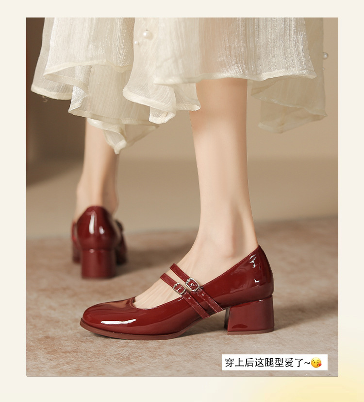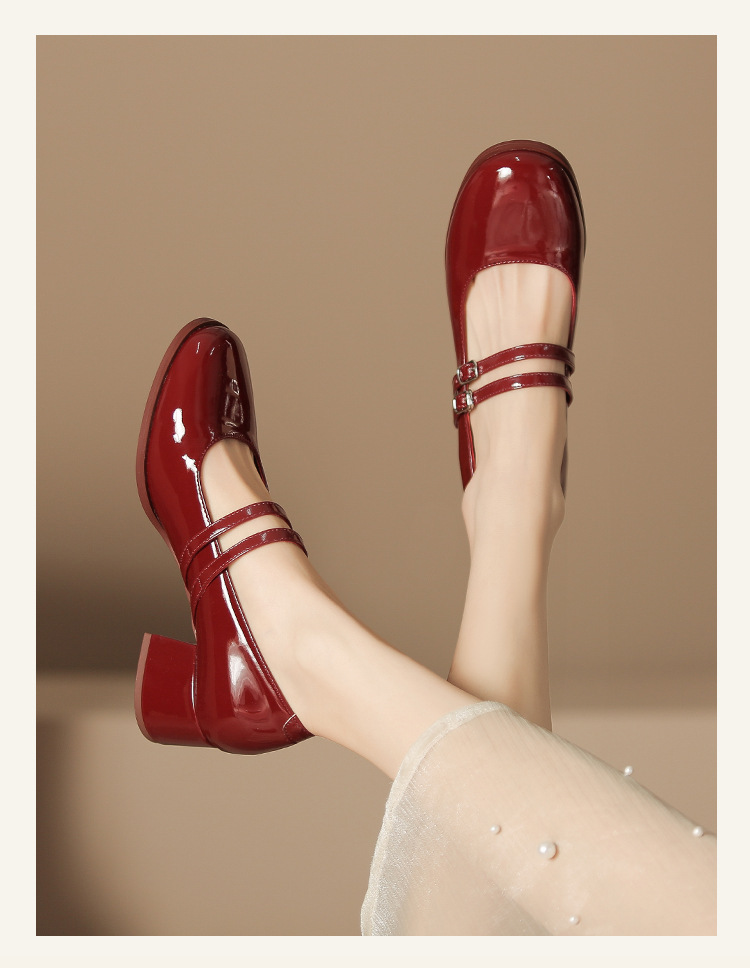 무료 배송 단화, 통굽 메리제인 하이힐, 작은 가죽 신발, 레트로 여성 신발, 빨간색 신부 약혼 신발스토어 가기