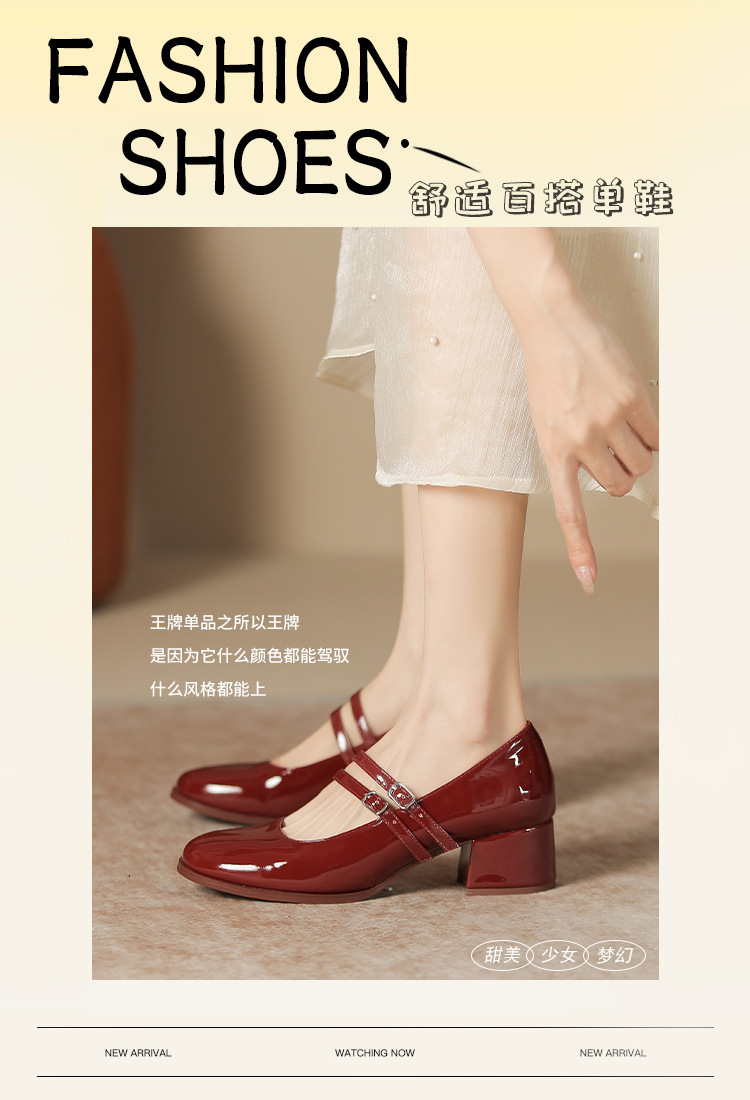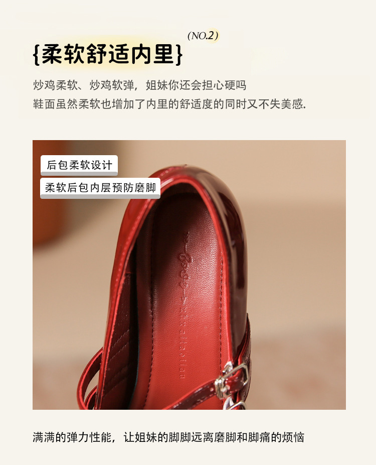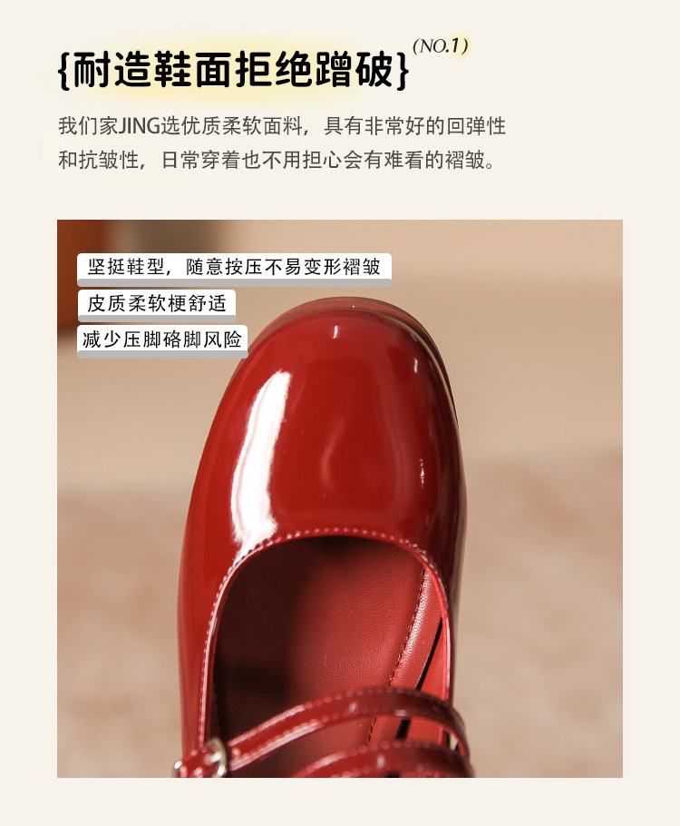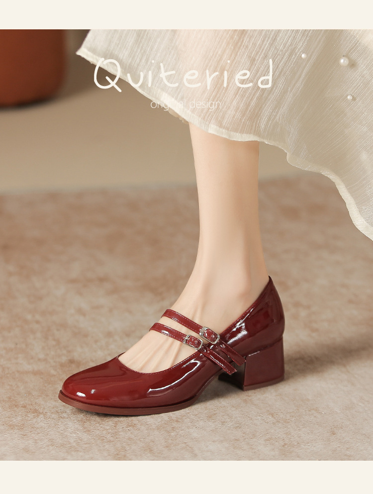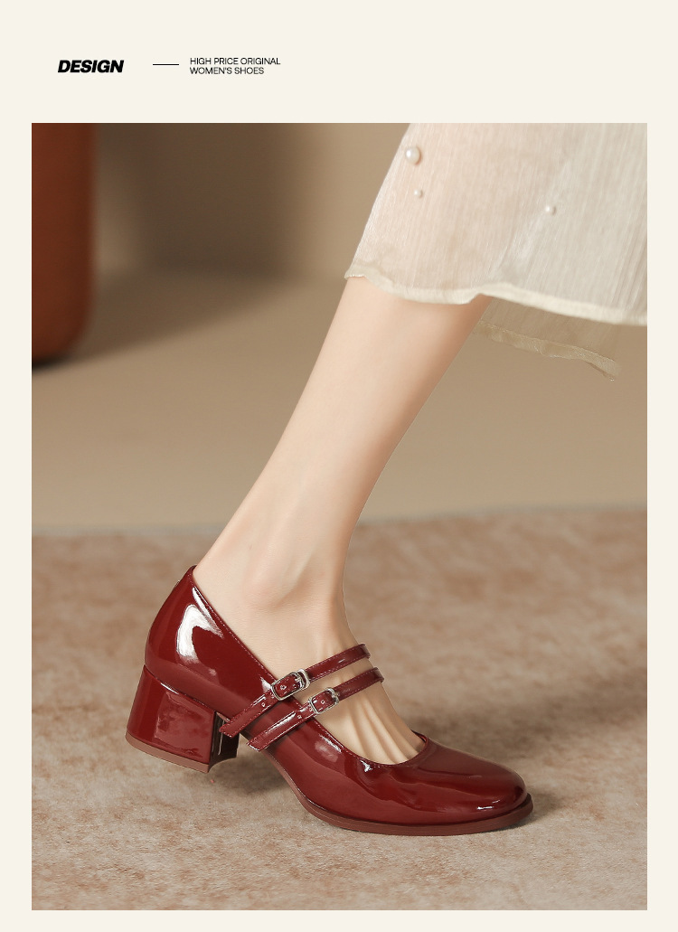무료 배송 단화, 통굽 메리제인 하이힐, 작은 가죽 신발, 레트로 여성 신발, 빨간색 신부 약혼 신발