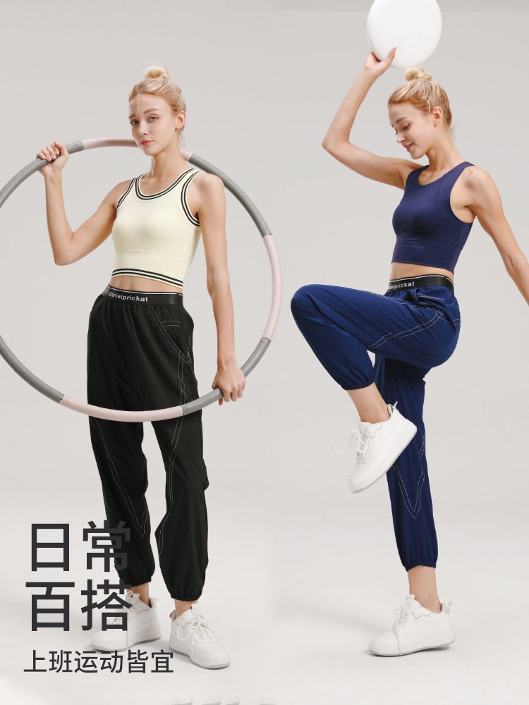 2026년 신상 얇은 요가 팬츠, 속건성 통기성 피트니스 루즈핏 트렌디 브랜드 레터링 신축성 허리밴드 스포츠 롱팬츠스토어 가기