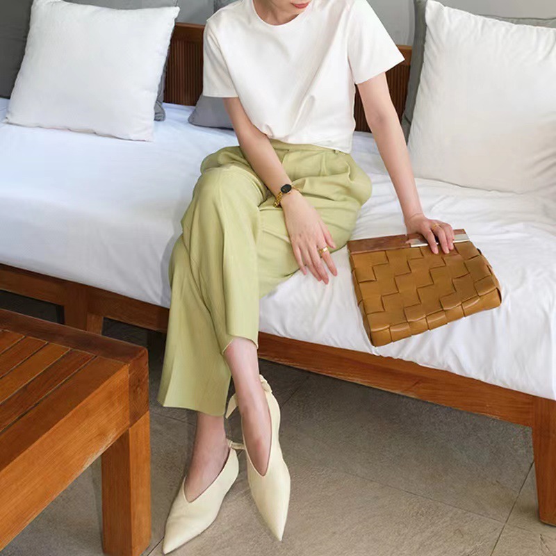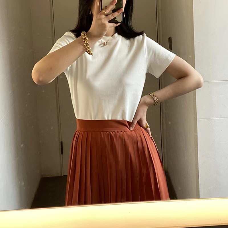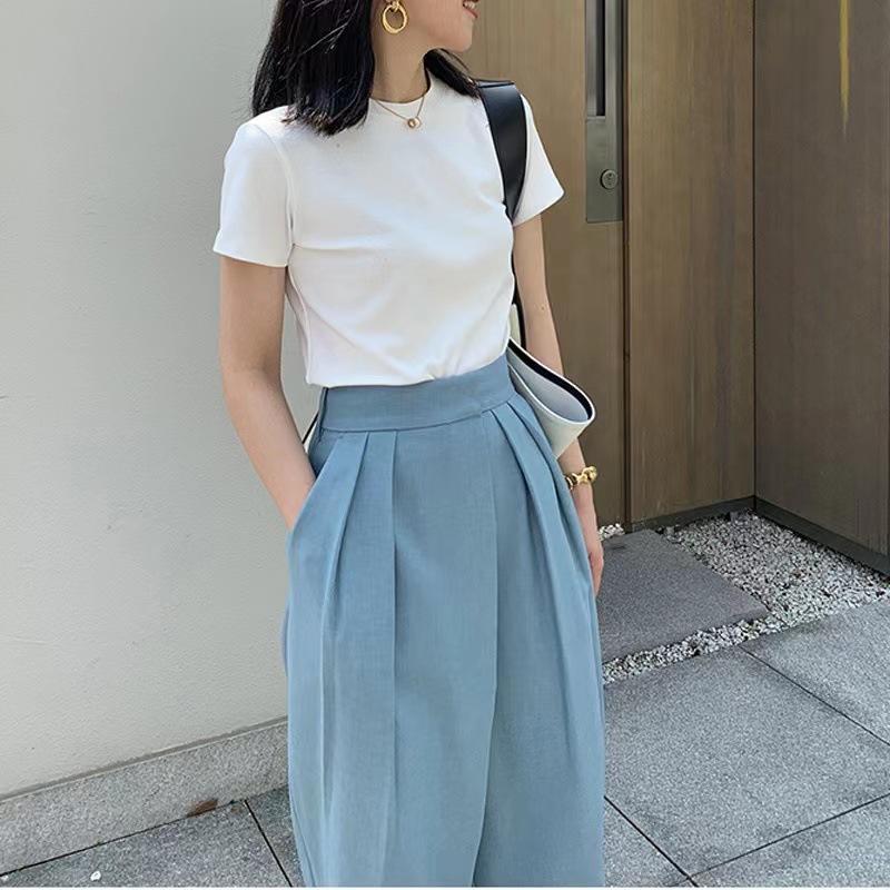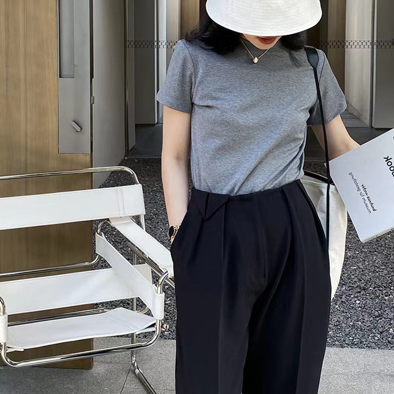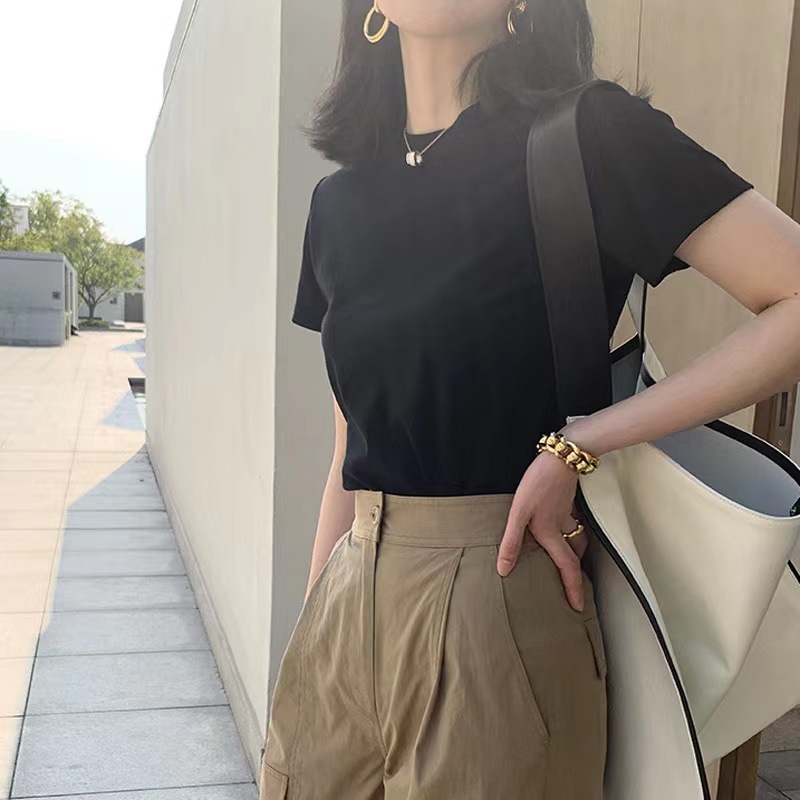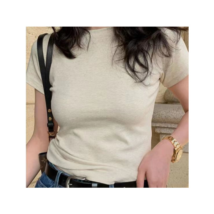 40 빗질 코튼 어깨 반팔 티셔츠 여성용 단색 새 여름 한국 스타일의 다재다능한 학생 톱 도매스토어 가기