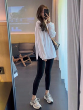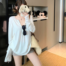 白色慵懒风长袖宽松T恤女秋季休闲薄款显瘦百搭纯欲上衣外贸批发