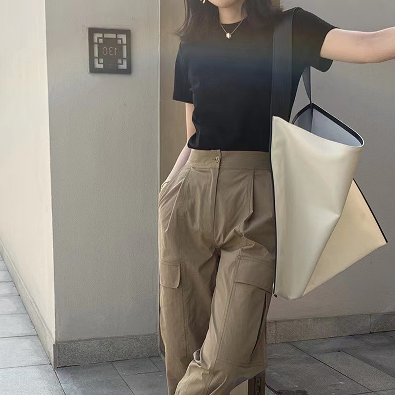 oversize秋季韩系宽松蝙蝠袖T恤女纯棉慵懒风松弛感上衣外贸批发