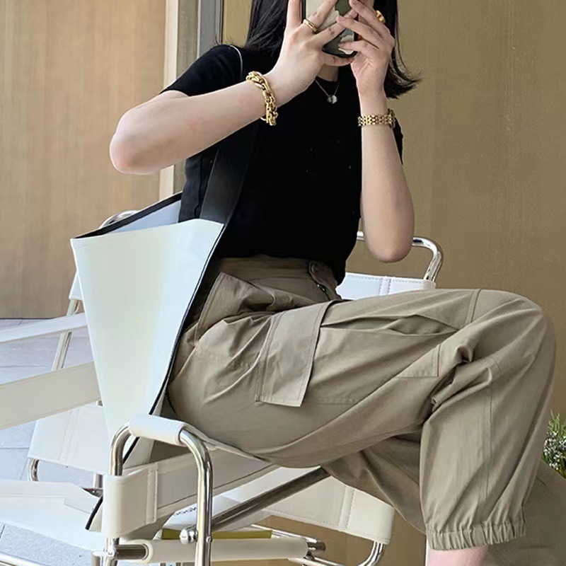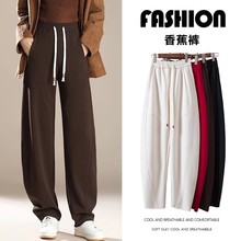 镰刀裤女秋冬季加绒宽松高腰香蕉裤休闲抽绳松紧腰百搭哈伦裤批发