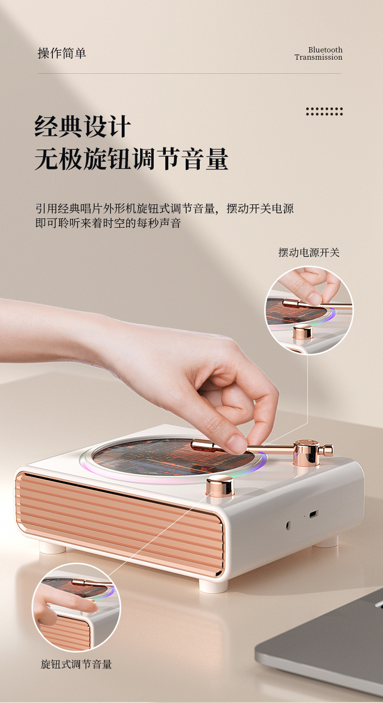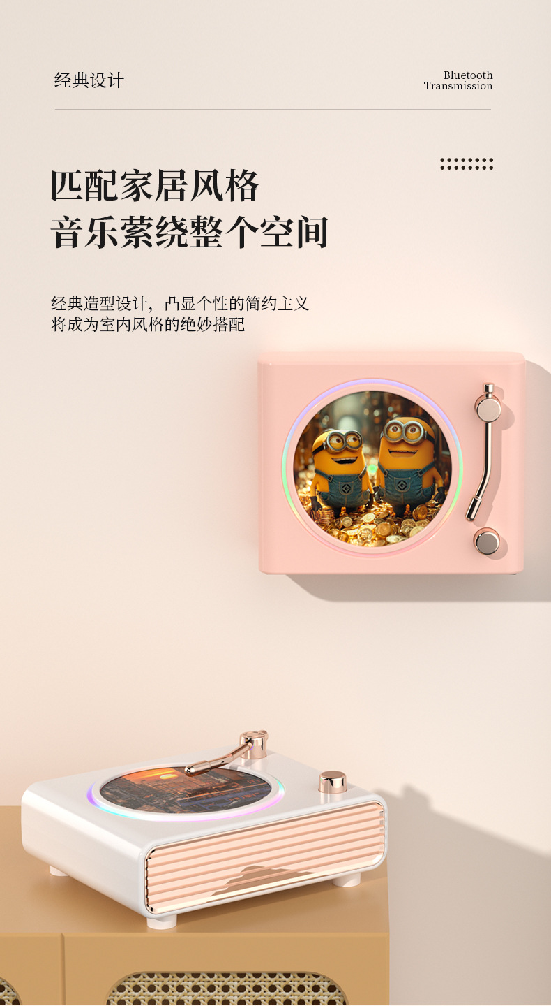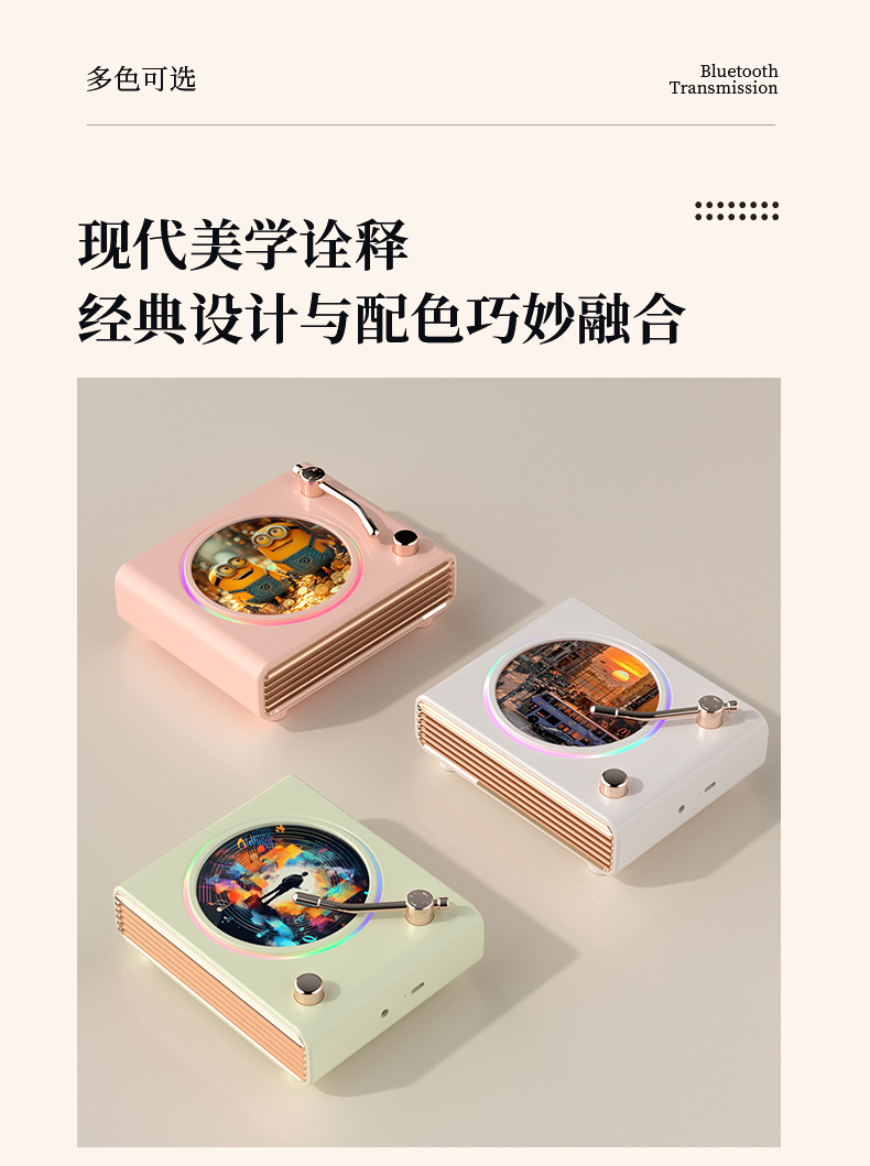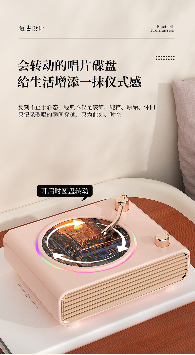 블루투스 스피커 레트로 회전 레코드 플레이어 무드등 무선 컴퓨터 충전 스피커 크로스보더 신제품 창의적인 선물