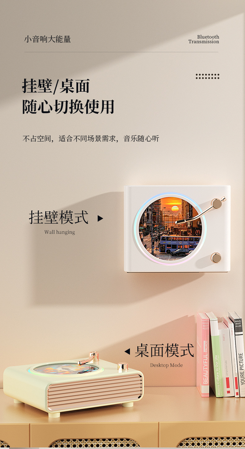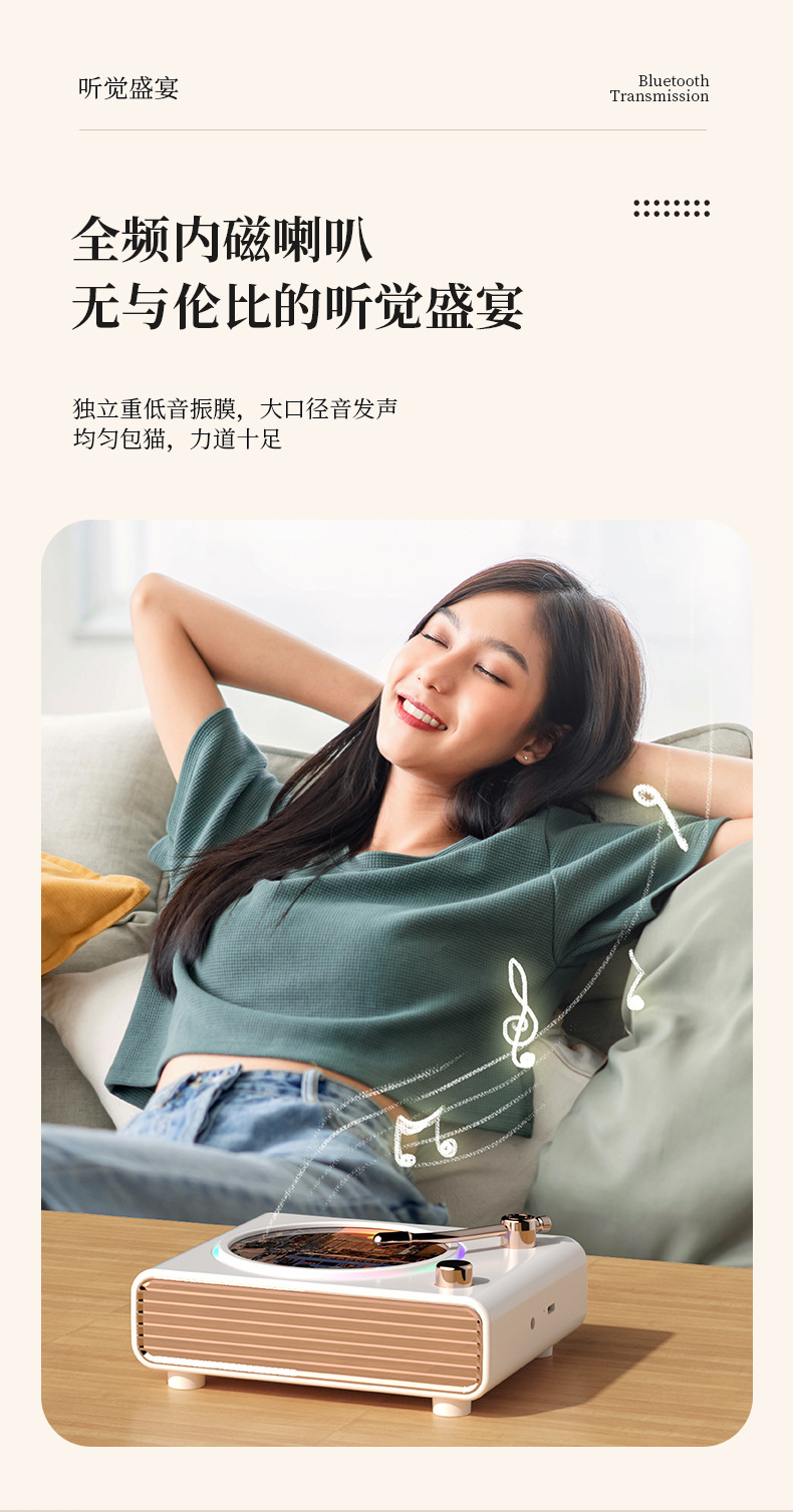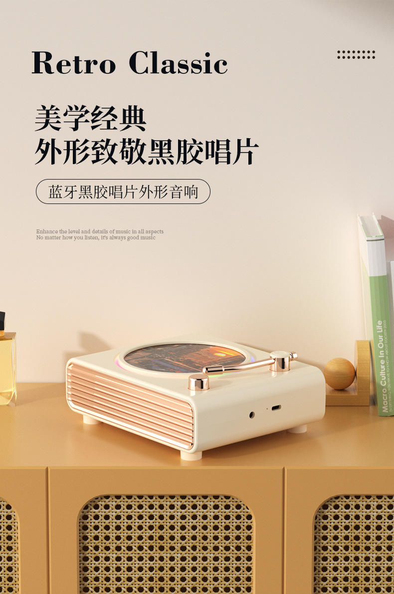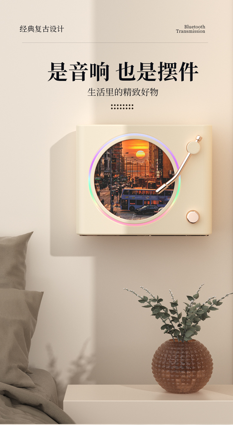 블루투스 스피커 레트로 회전 레코드 플레이어 무드등 무선 컴퓨터 충전 스피커 크로스보더 신제품 창의적인 선물