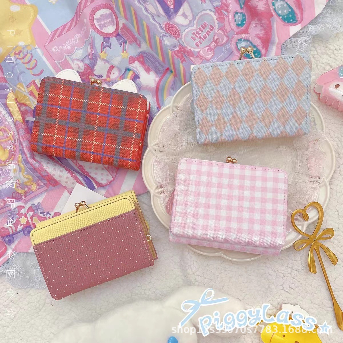 Yugui 개 Kulomi 지갑 가죽 클립 버클 메를로 카드 가방 지갑 짧은 만화 학생 일본 PU스토어 가기