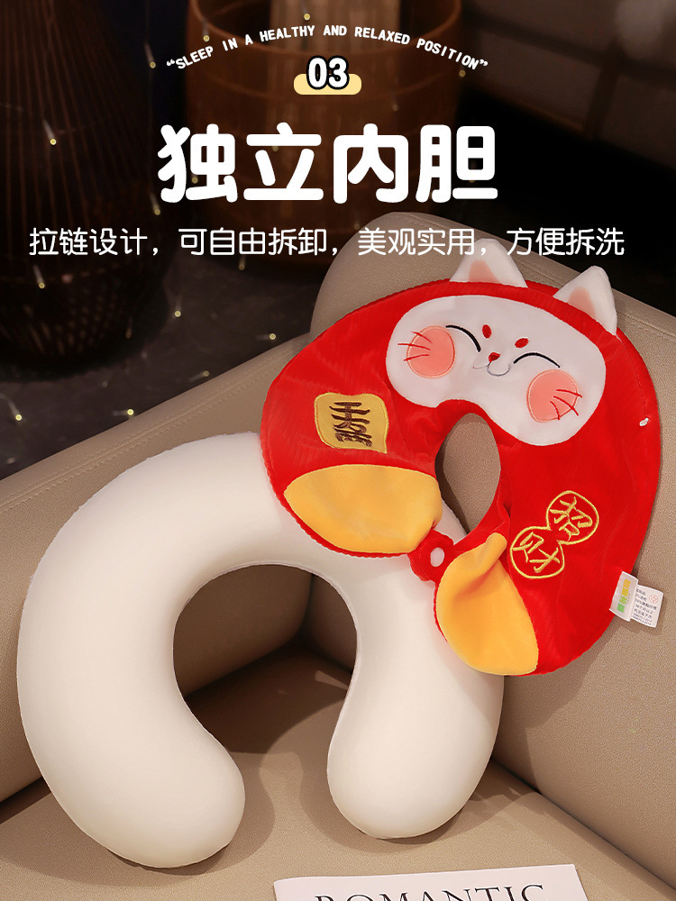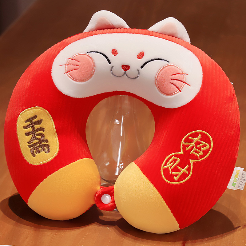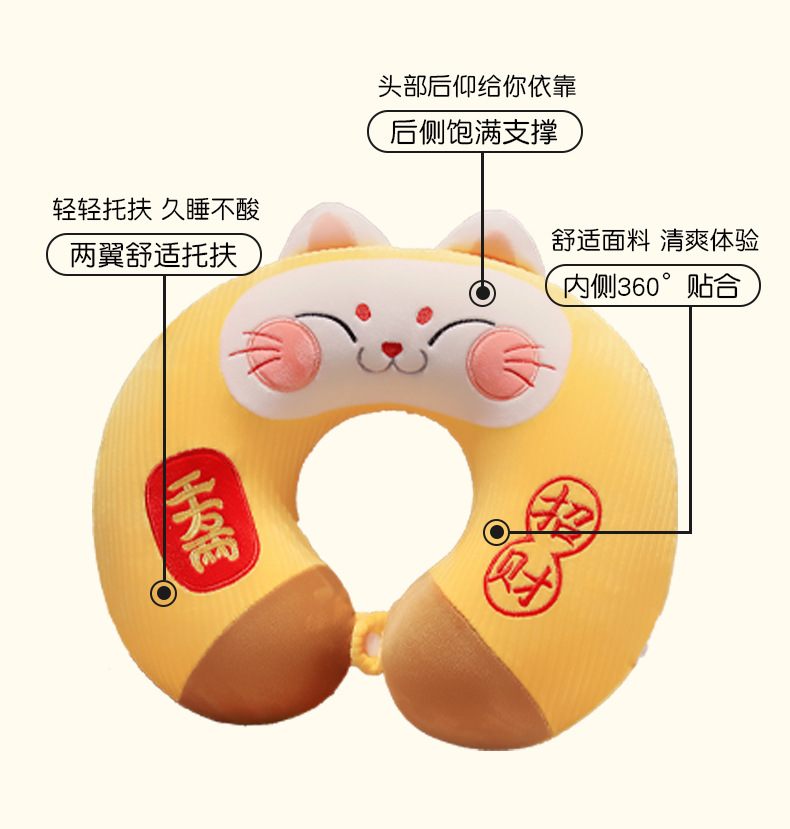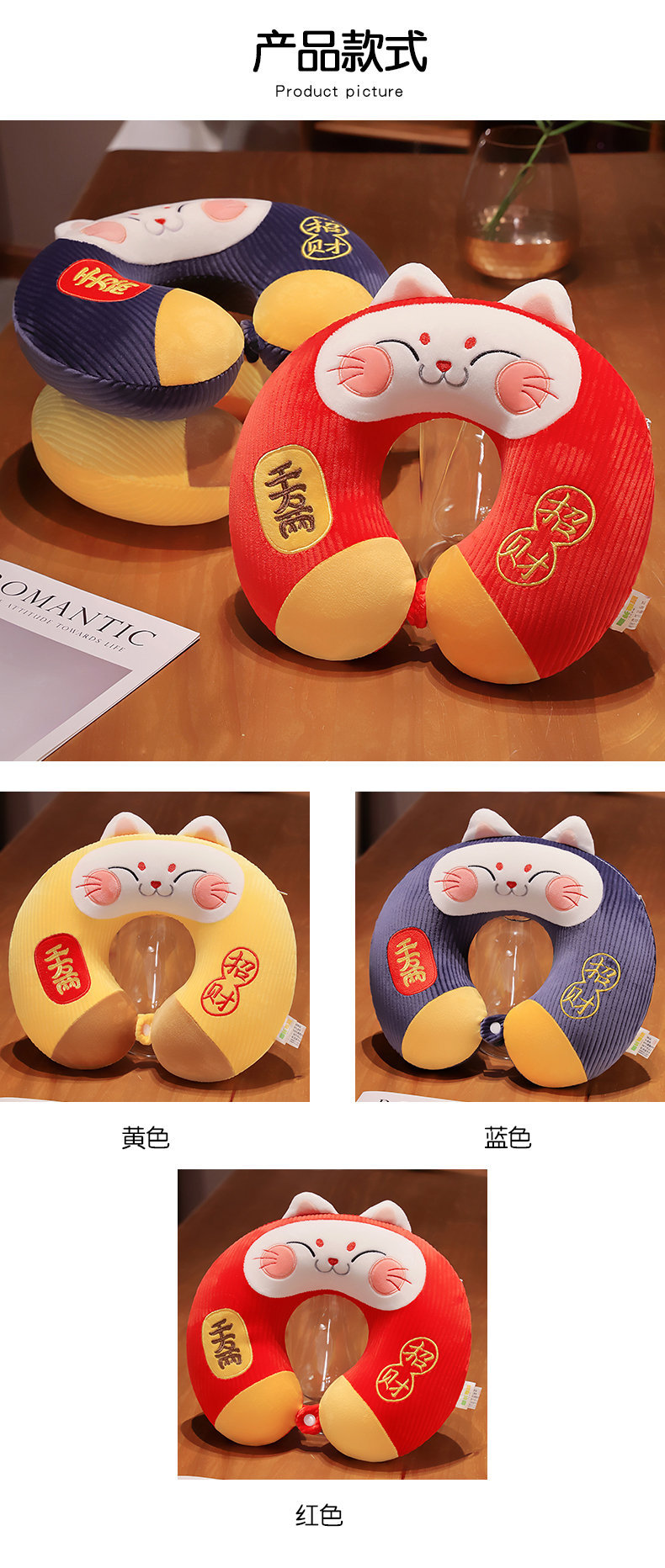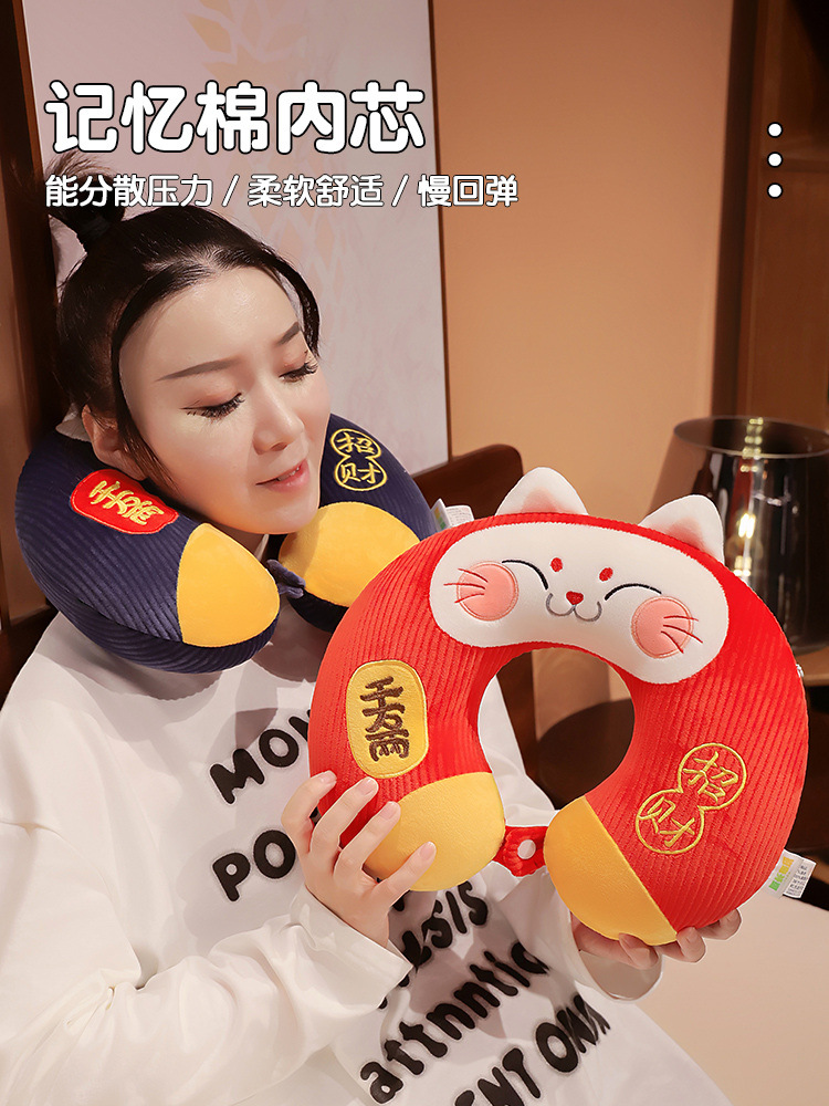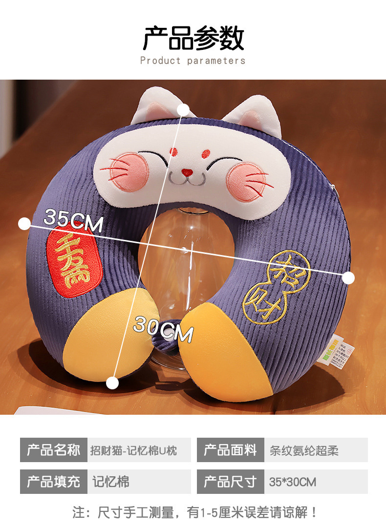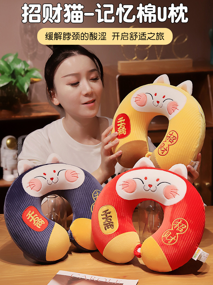만화 메모리 폼 넥 베개 여행 사무실 낮잠 베개 포춘 고양이 U 자형 베개 휴일 프로모션 선물스토어 가기