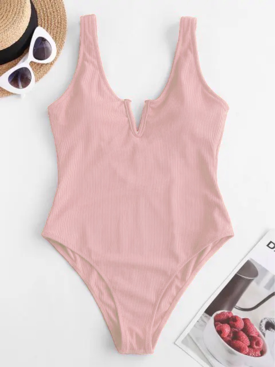 여성용 V-넥 V-백 삼각형 작은 가슴 푸시 업 수영복 솔리드 컬러 핑크 블랙 온천 수영복스토어 가기