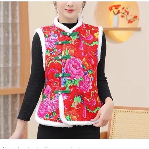 2024 봄 새로운 민족 스타일 북동쪽 큰 꽃 조끼 두꺼운 서양식 캐주얼 엄마 여성 민소매 조끼스토어 가기