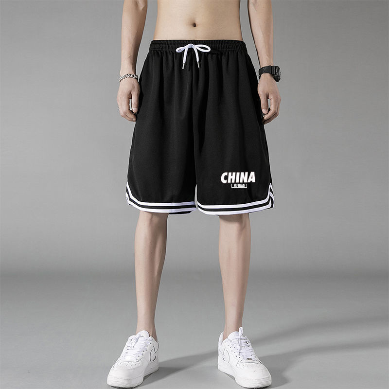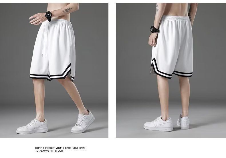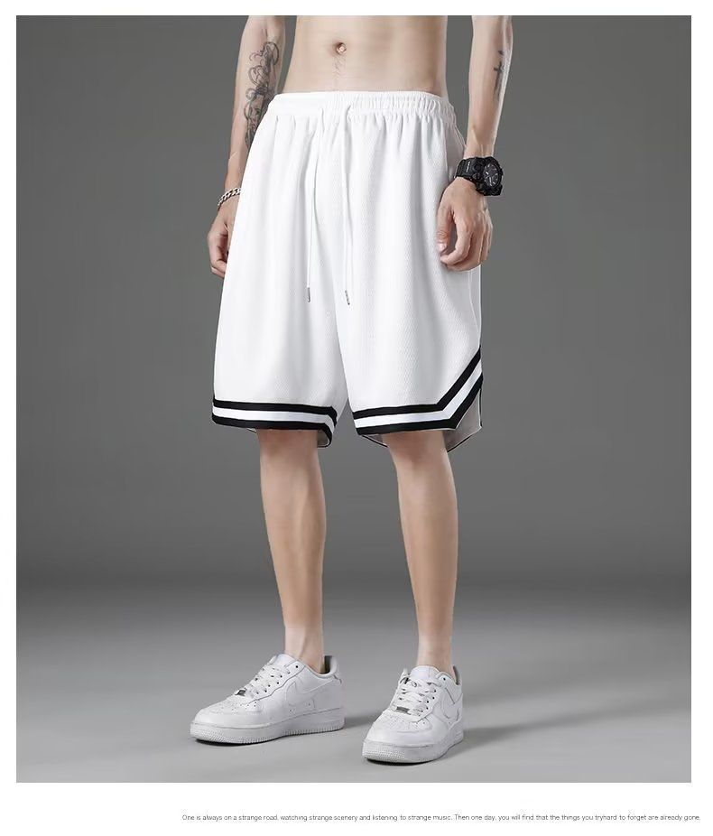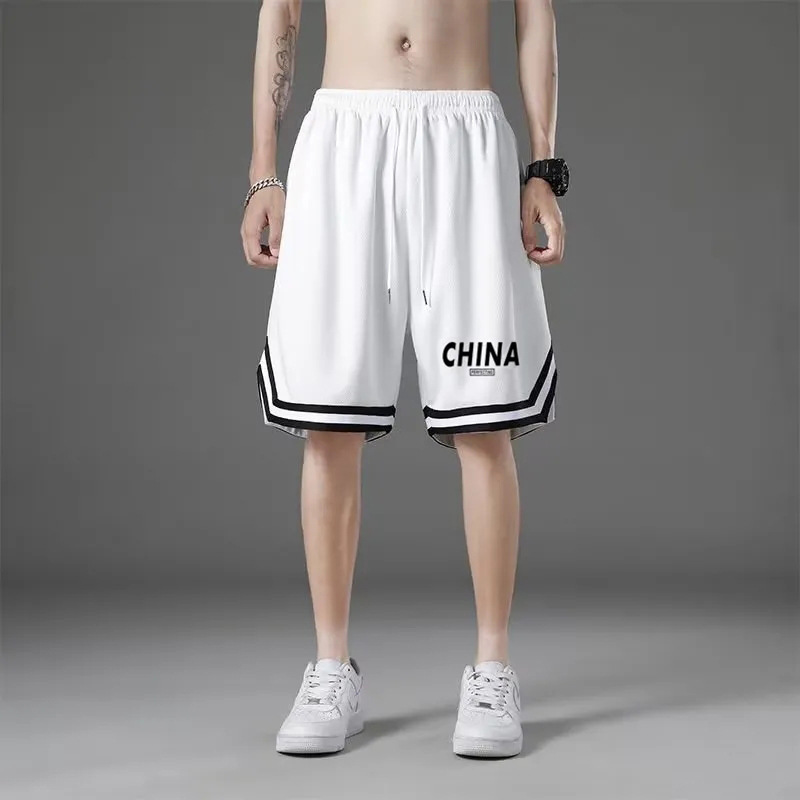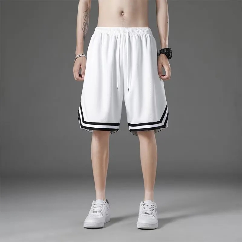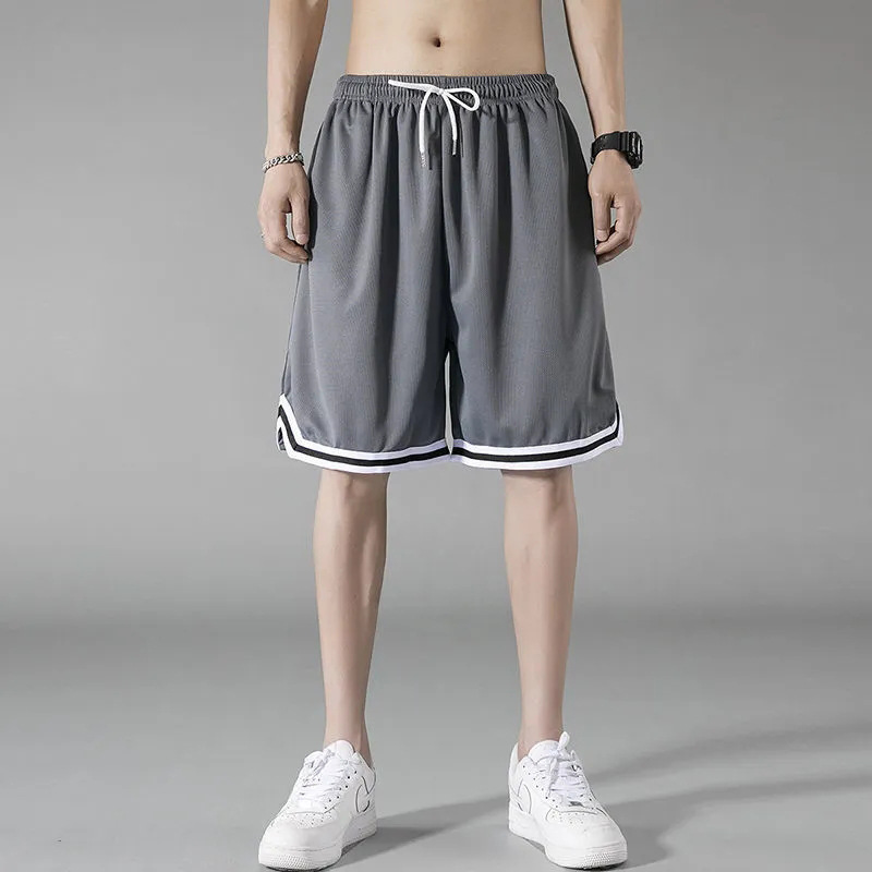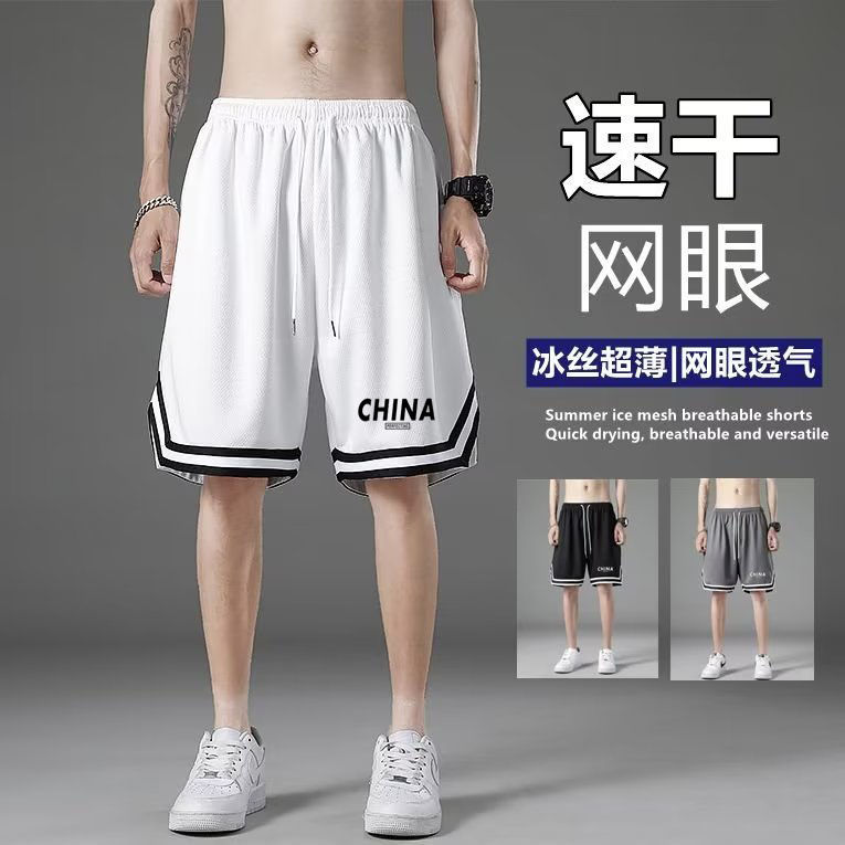 여름 스포츠 반바지 남성용 미국식 아이스 실크 통기성 빠른 건조 스포츠 달리기 캐주얼 플러스 사이즈 얇은 자른 바지