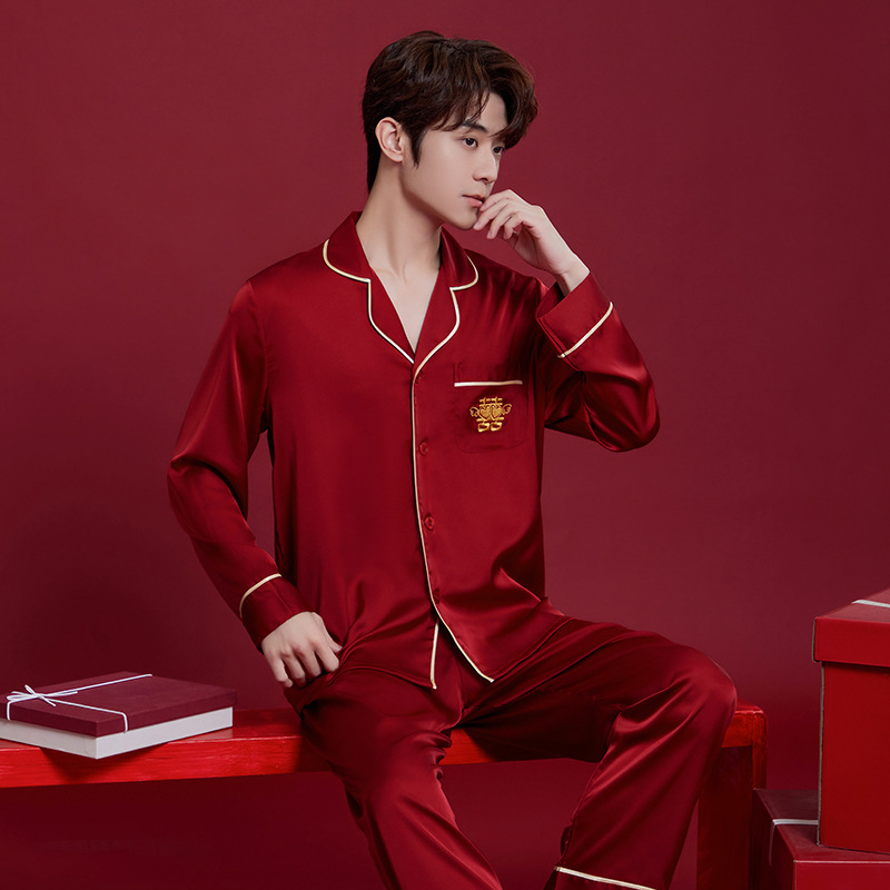 잠옷 웨딩 웨딩 웨딩 커플 하이 엔드 웨딩 아이스 실크 레드 출생 년 축제 남녀 결혼 지참금 세트