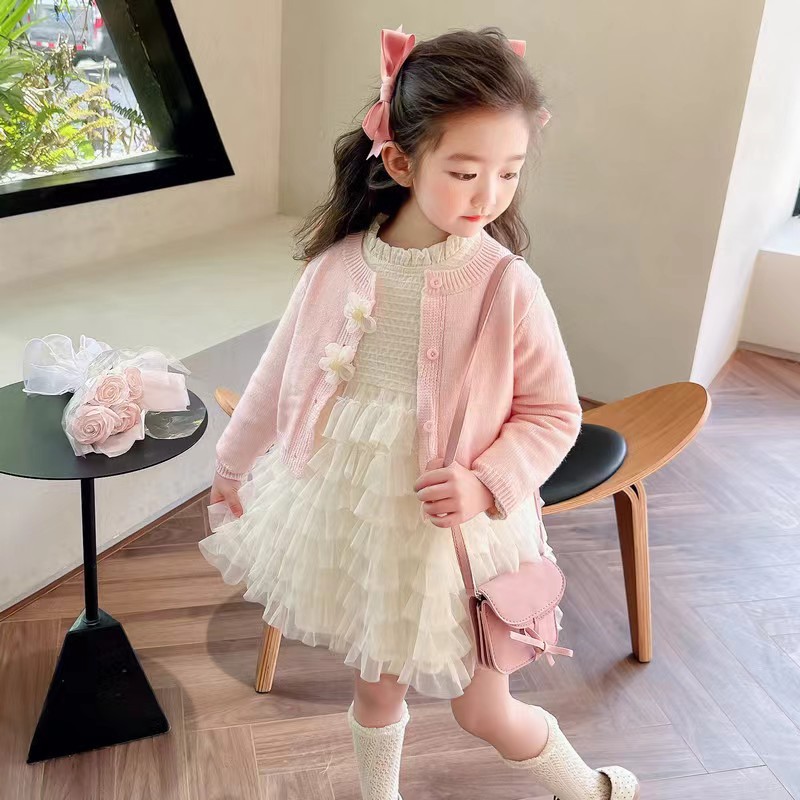소녀 봄과 가을 2024 새로운 원피스 세트 어린이 더블 꽃 봄 서양식 아기 공주 원피스 봄 옷스토어 가기