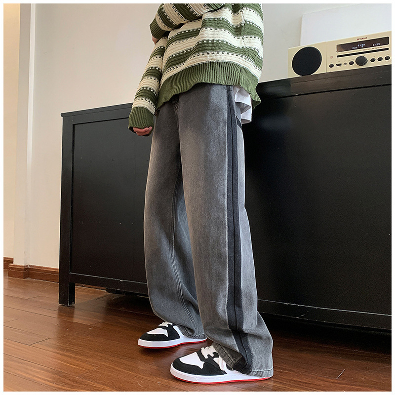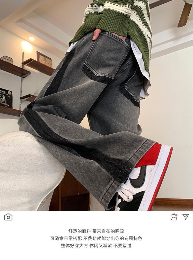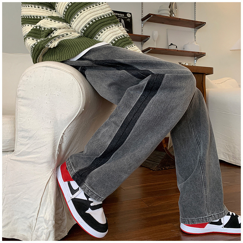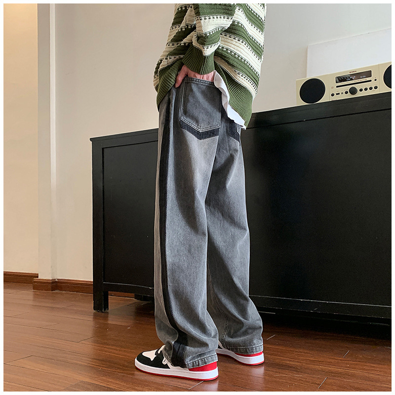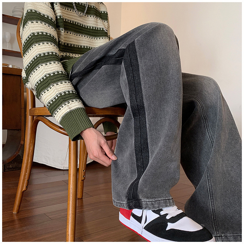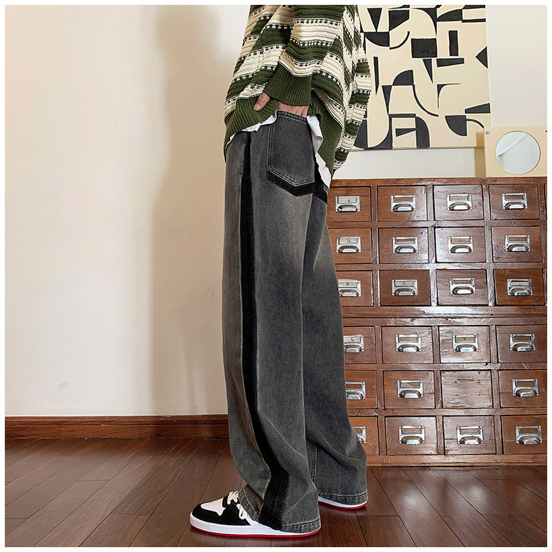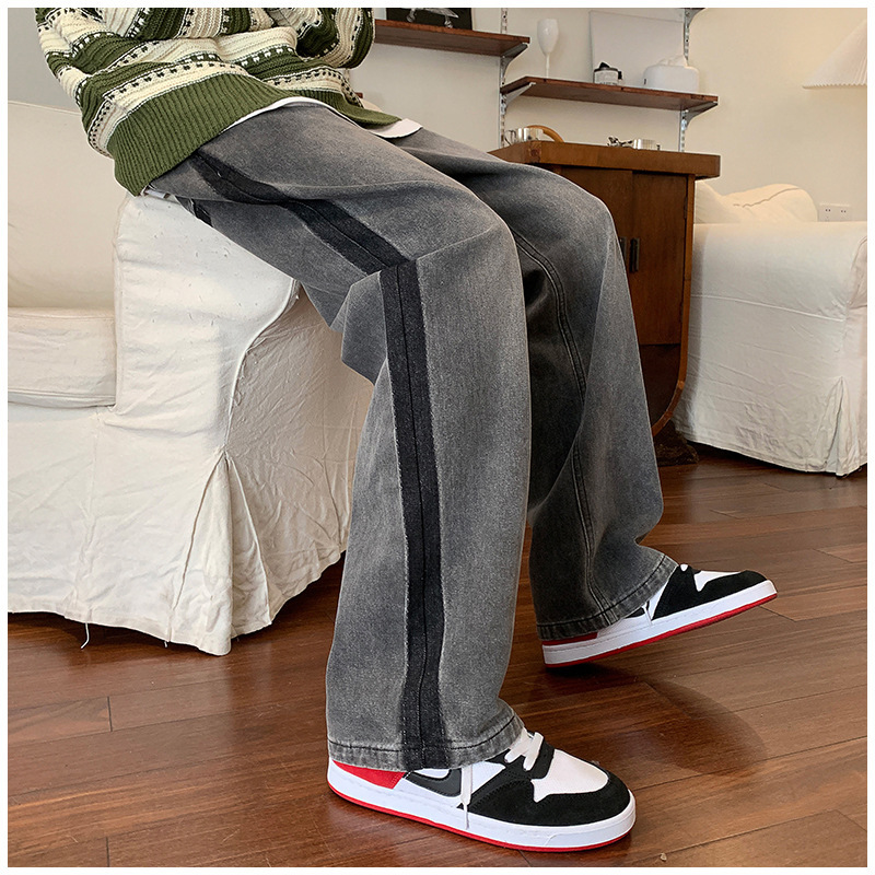 빈티지 청바지 남성 가을과 겨울 미국 하이 스트리트 패션 브랜드 프라이드 스트리트 프릴 잘 생긴 바지 느슨한 넓은 다리 스트레이트 걸레 바지스토어 가기