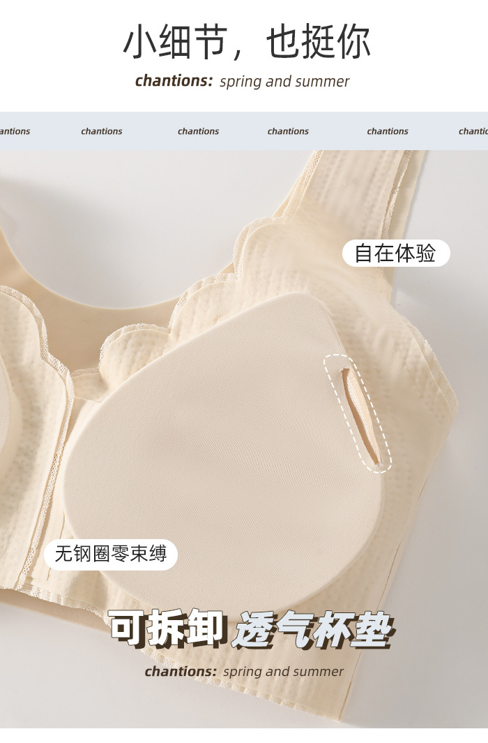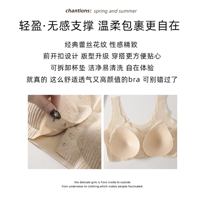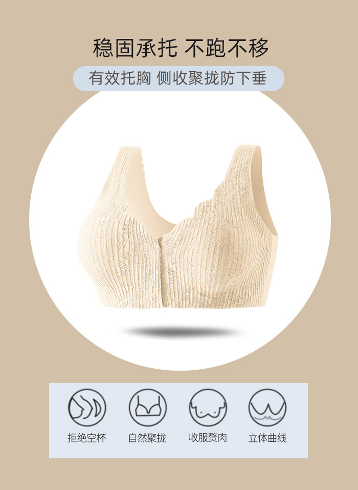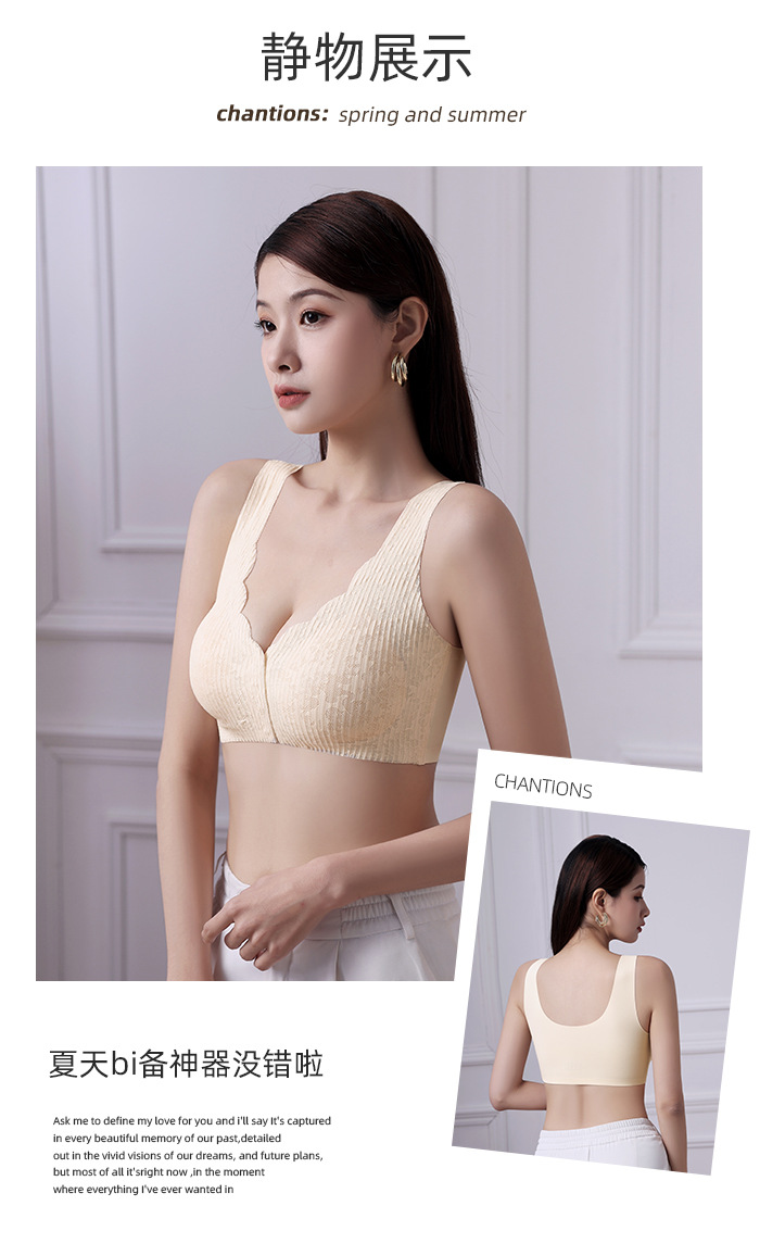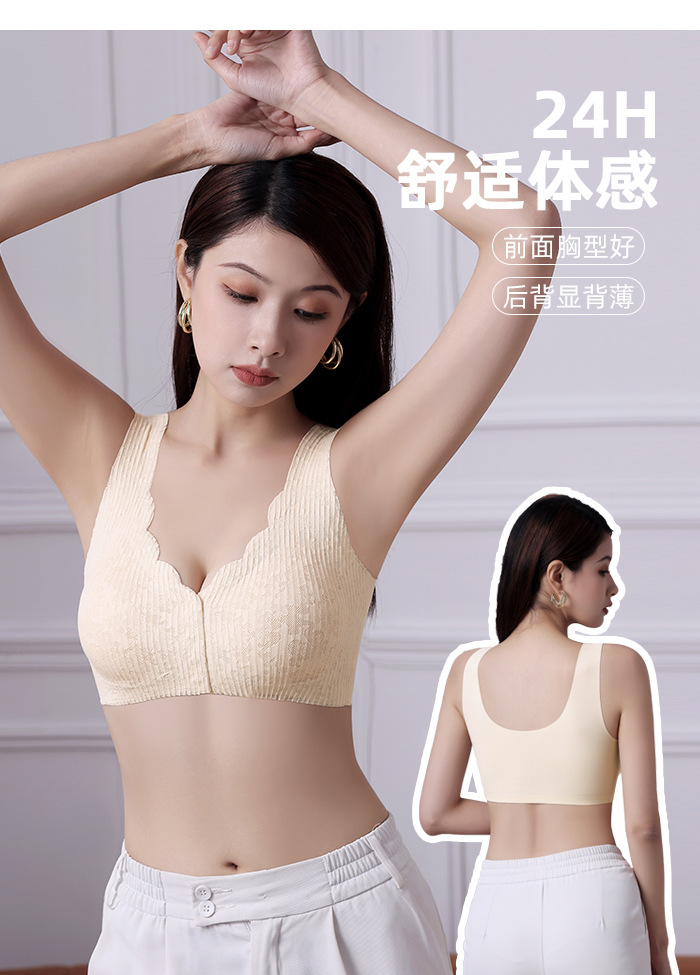 여성용 앞버튼 속옷, 심리스 레이스, 큰 가슴을 작아보이게 하는 푸쉬업 브라, 섹시한 아이스 실크 대형 사이즈 처짐 방지 브라, 인비저블스토어 가기