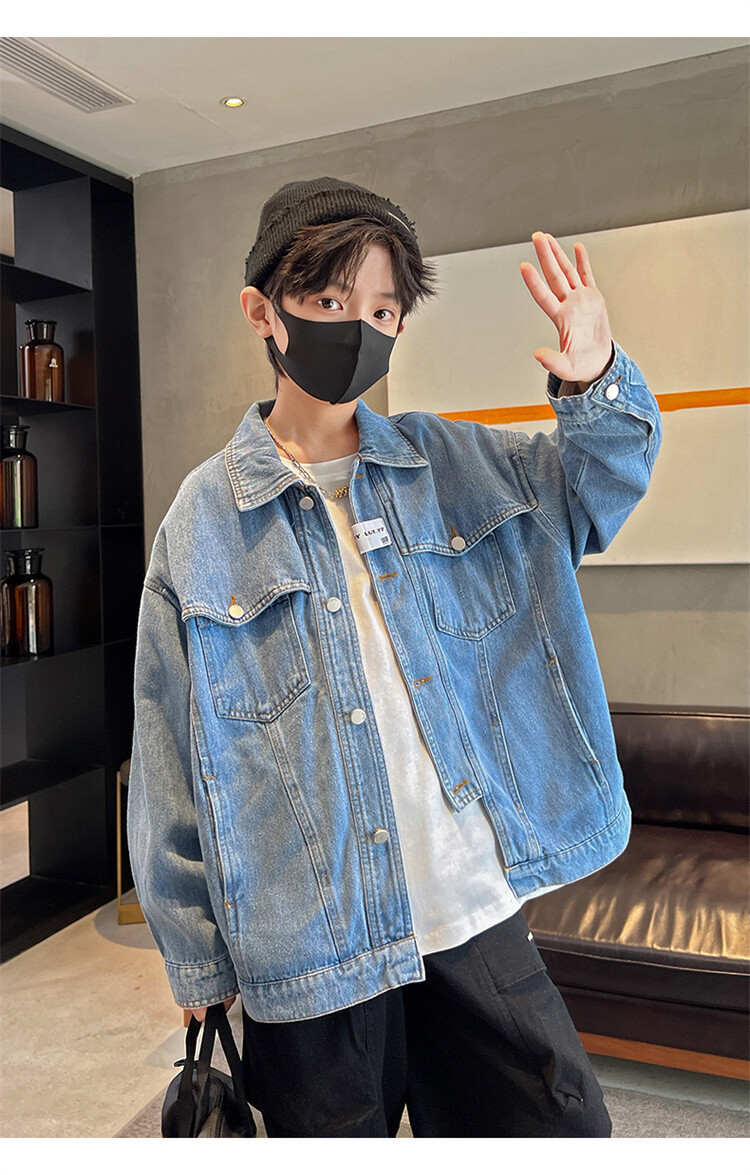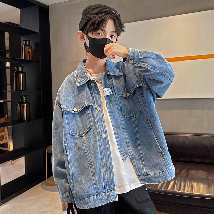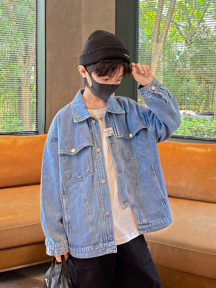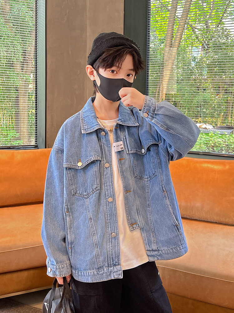 대외 무역 남성 아동복 봄 가을 데님 재킷 2024 새로운 한국 스타일 유행 소년 맞춤형 올 매치 캐주얼 탑스토어 가기