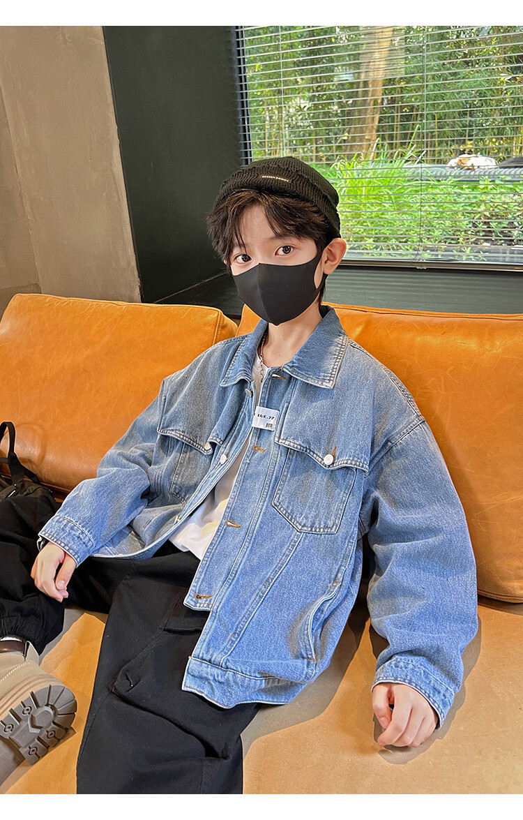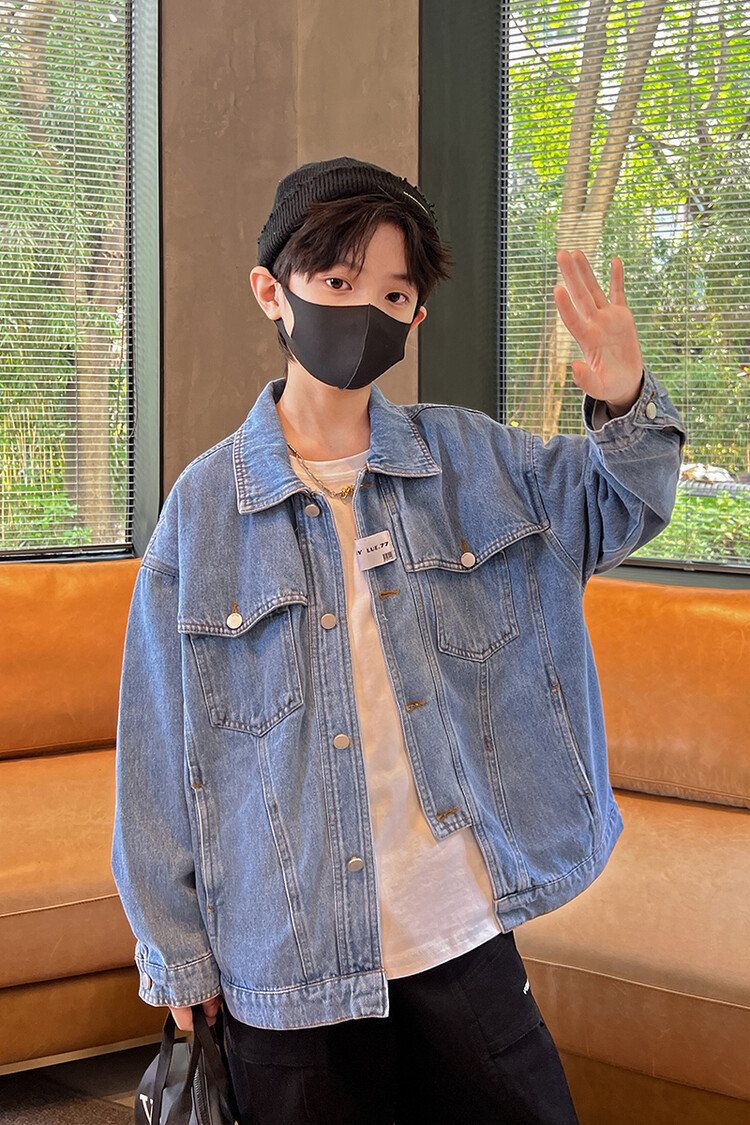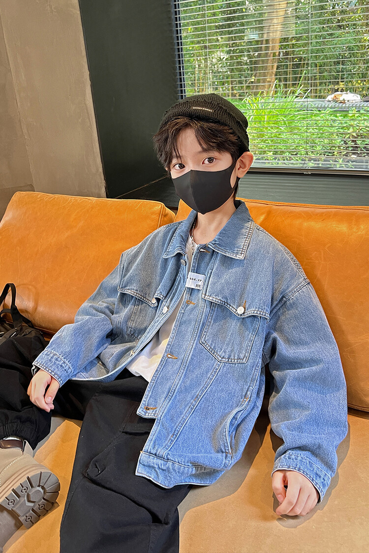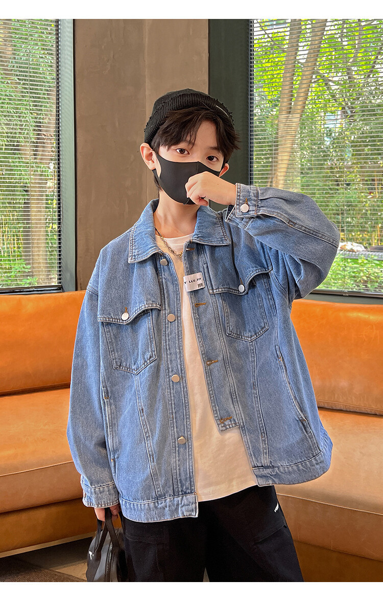 대외 무역 남성 아동복 봄 가을 데님 재킷 2024 새로운 한국 스타일 유행 소년 맞춤형 올 매치 캐주얼 탑스토어 가기