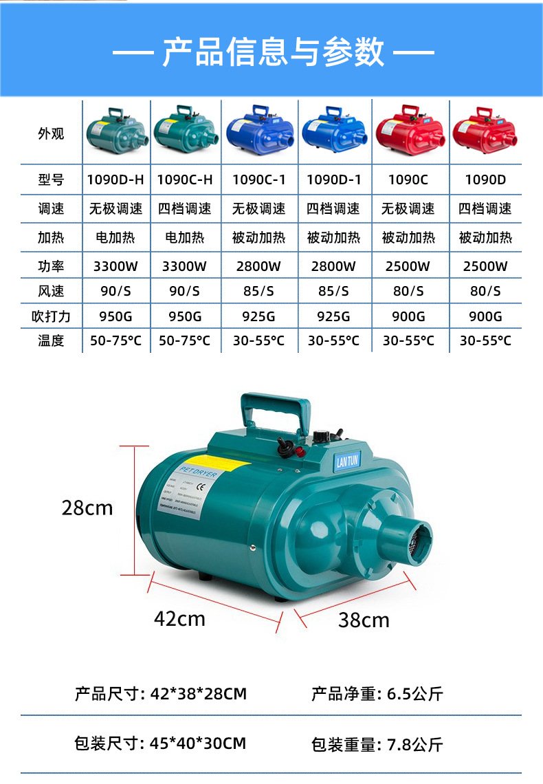 블루 돌고래 더블 말 애완 동물 부는 기계 개 고출력 대형 개 애완 동물 가게 머리 부는 유물 건조기