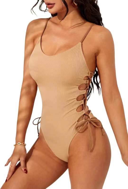 유럽과 미국의 새로운 국경 아마존 인기있는 단색 패션 섹시한 중공 스트랩 원피스 비키니 공장 직접 공급스토어 가기