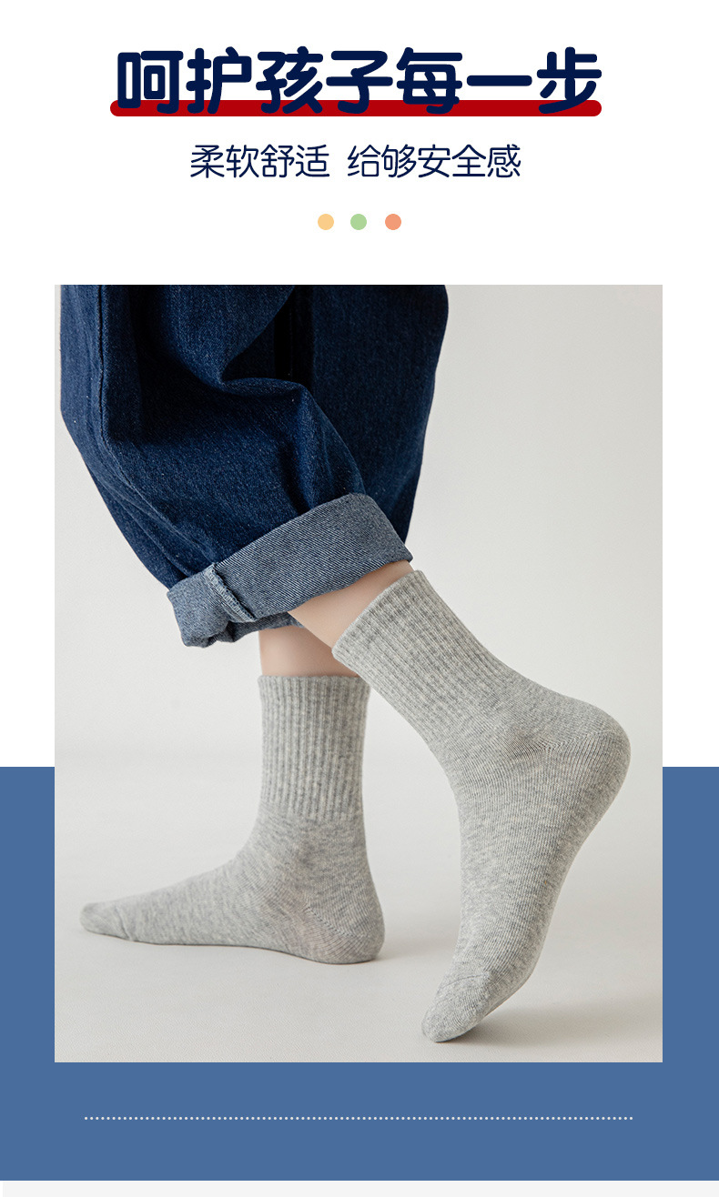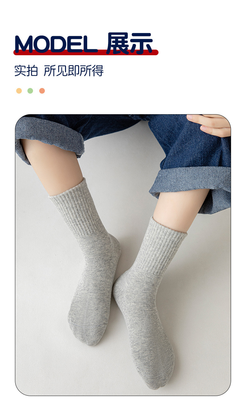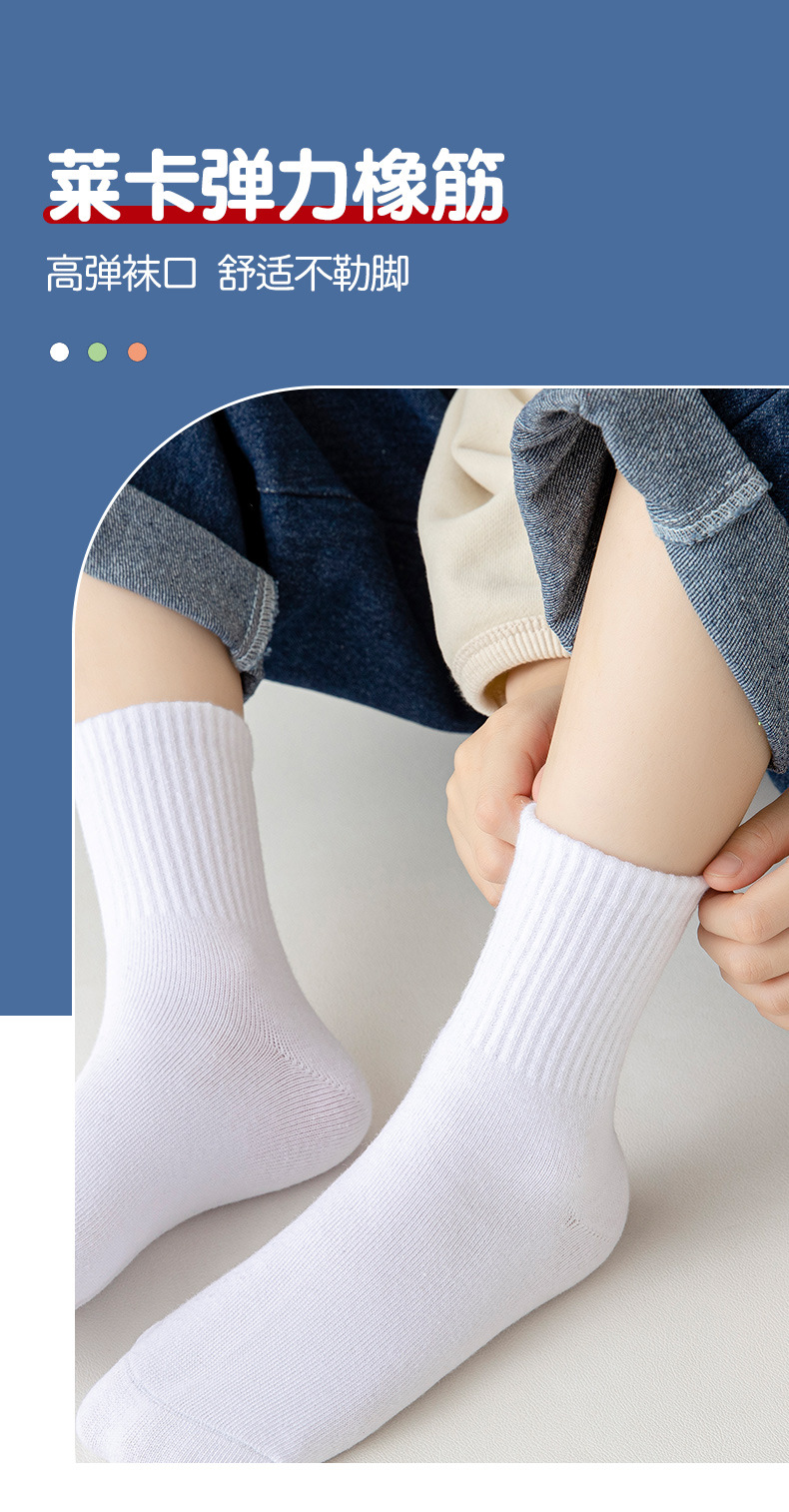 5 쌍의 어린이 양말 봄과 가을 면화 흰색 학생 양말 봄과 여름 순수한 흰색 대학 스타일 소년의 중간 종아리 길이 양말 여성