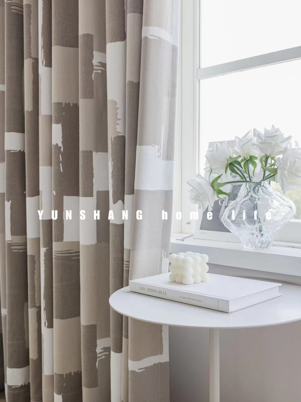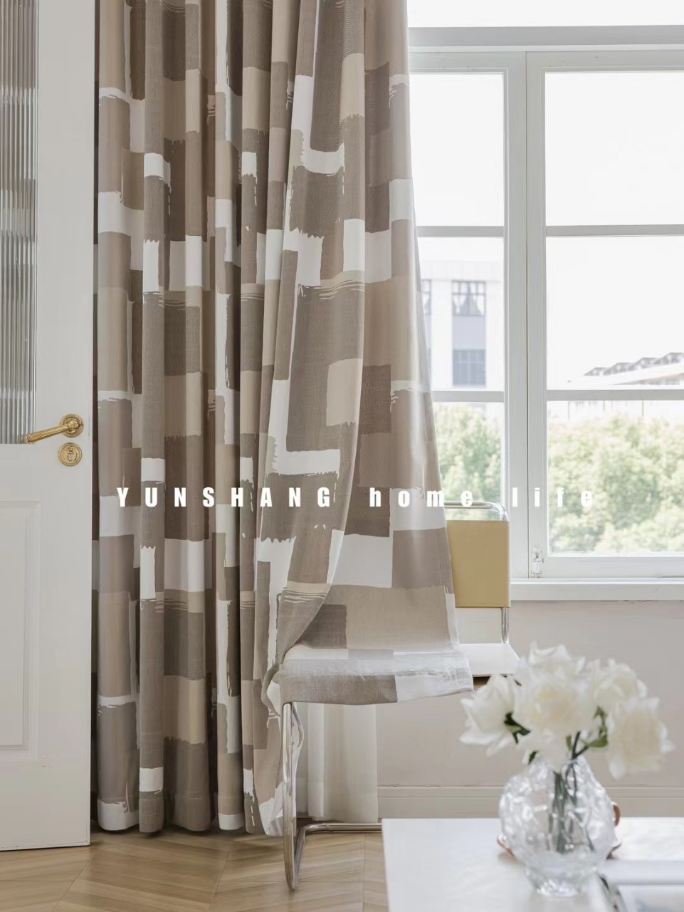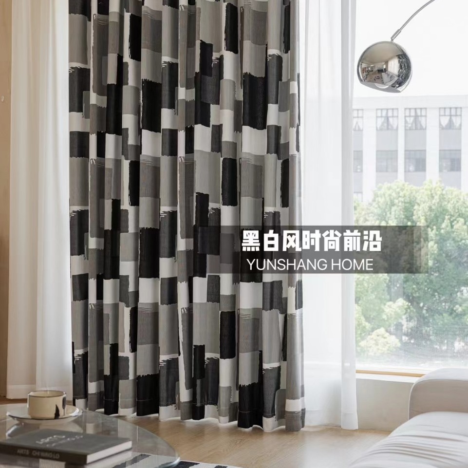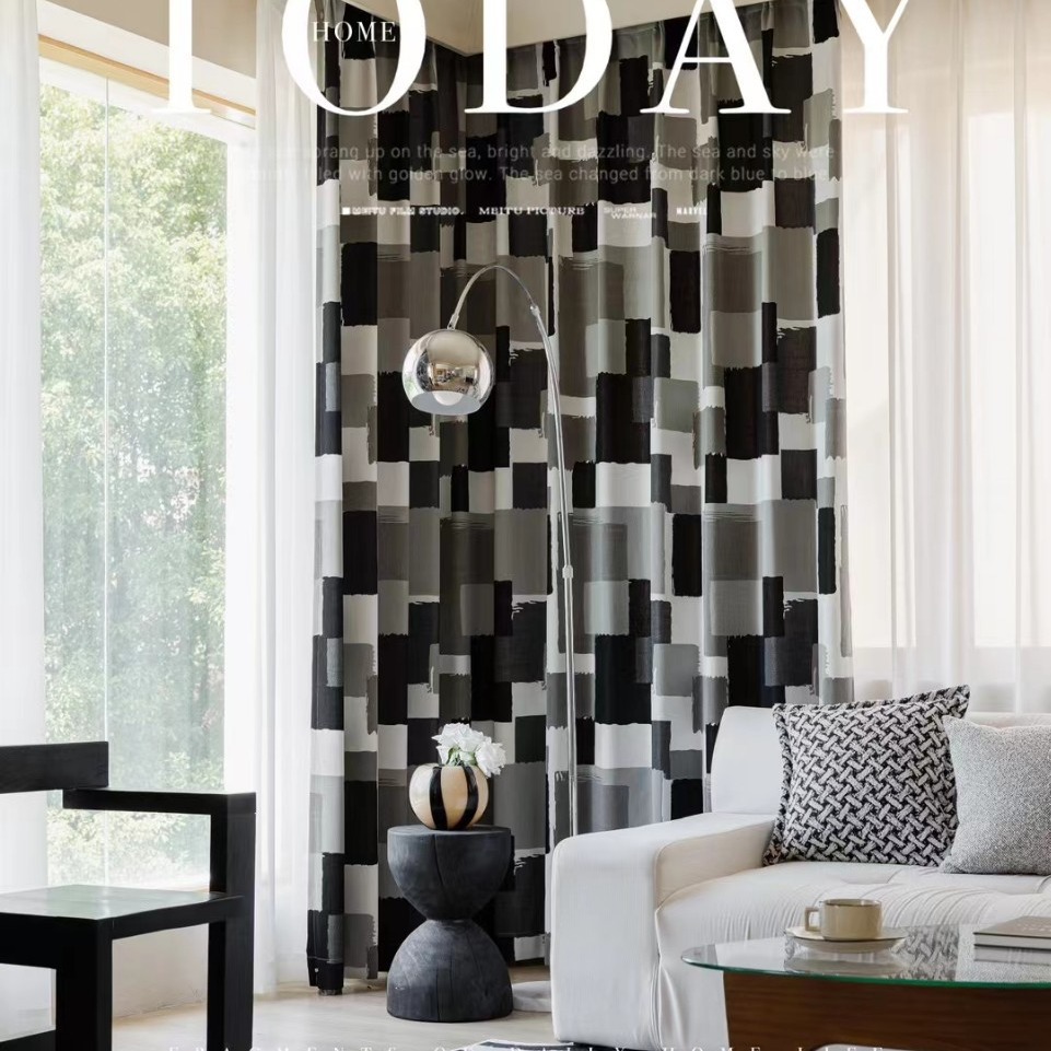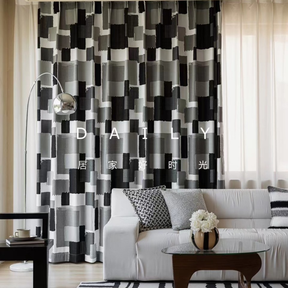 세련된 빛 럭셔리 셔닐 흑백 격자 현대 고급 미국 복고풍 완성 커튼 거실 침실 새로운 기하학스토어 가기