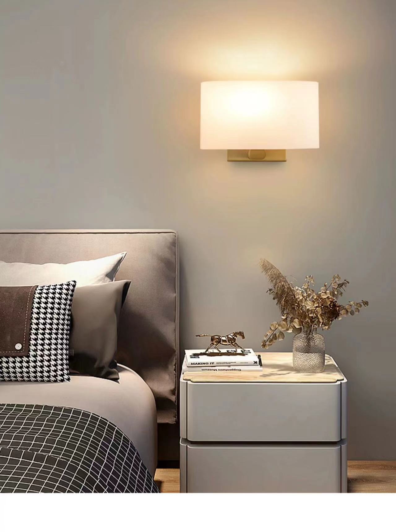 새로운 북유럽 현대 미니멀 한 거실 침대 옆 벽 램프 led 호텔 방 램프 미국 유리 커버 국경스토어 가기