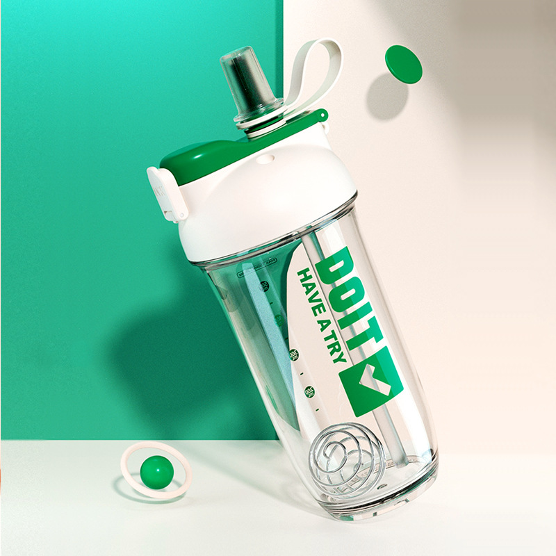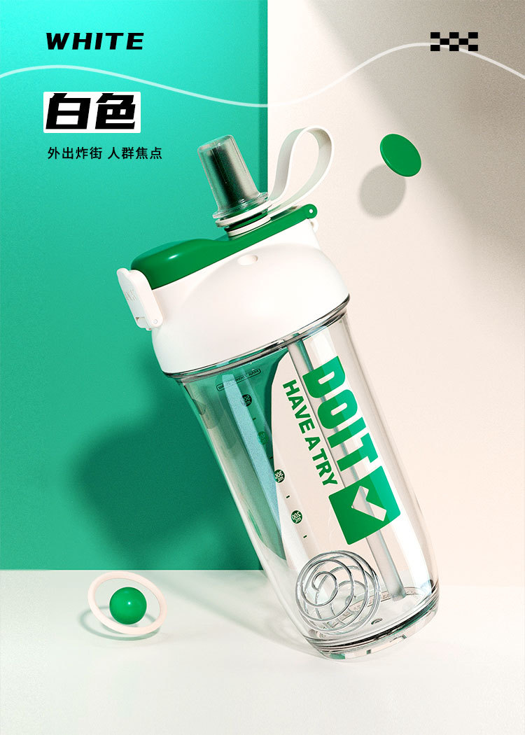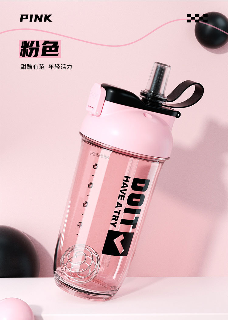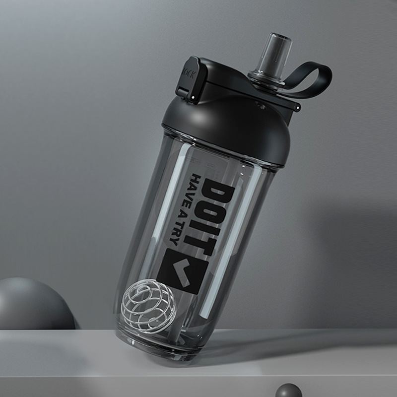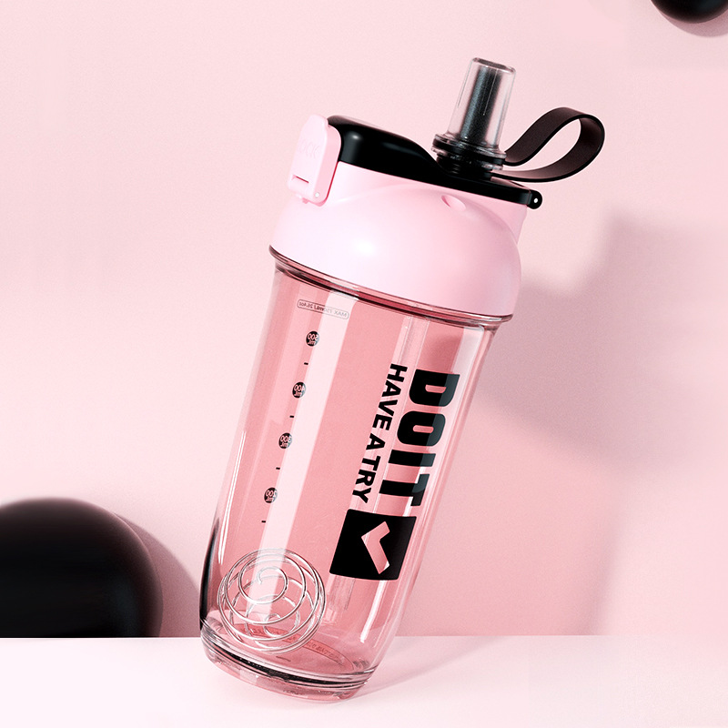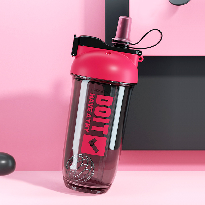 크리 에이 티브 더블 음료 쉐이크 컵 스틸 볼 커피 단백질 파우더 혼합 컵 트리탄 플라스틱 학생 컵