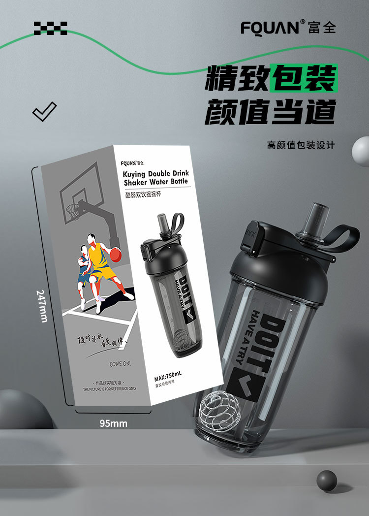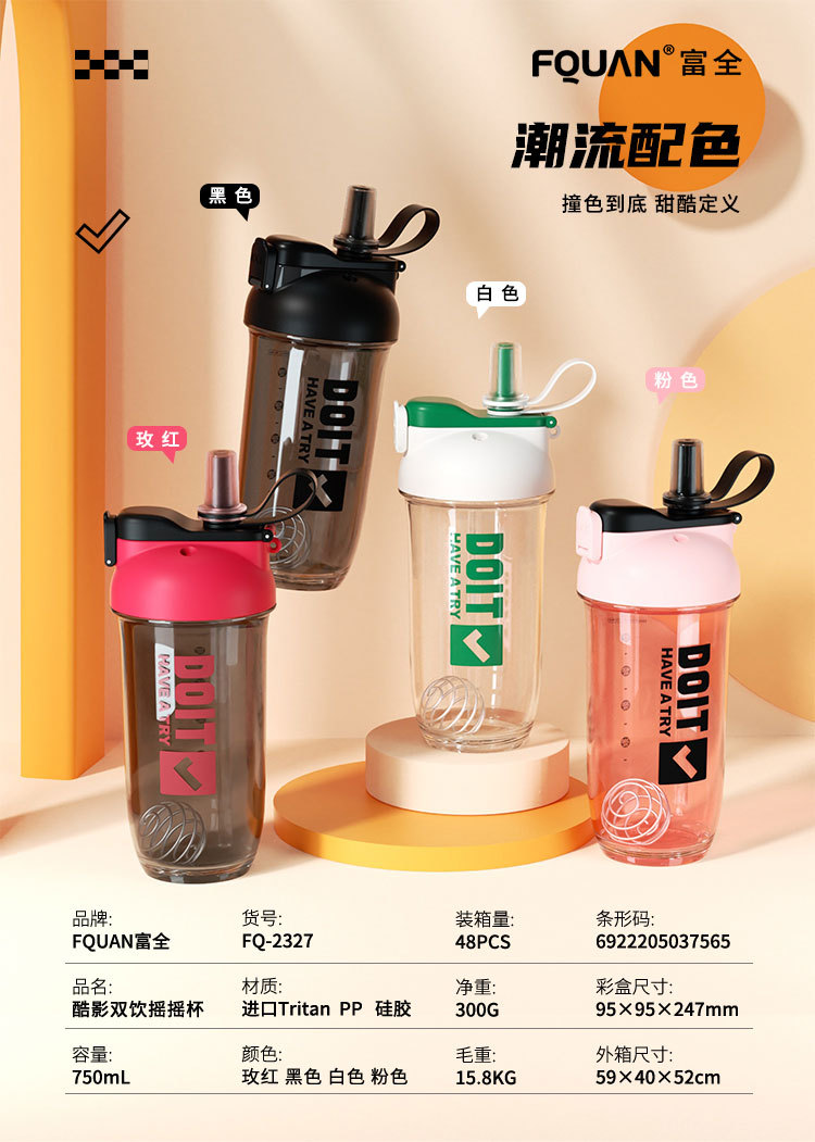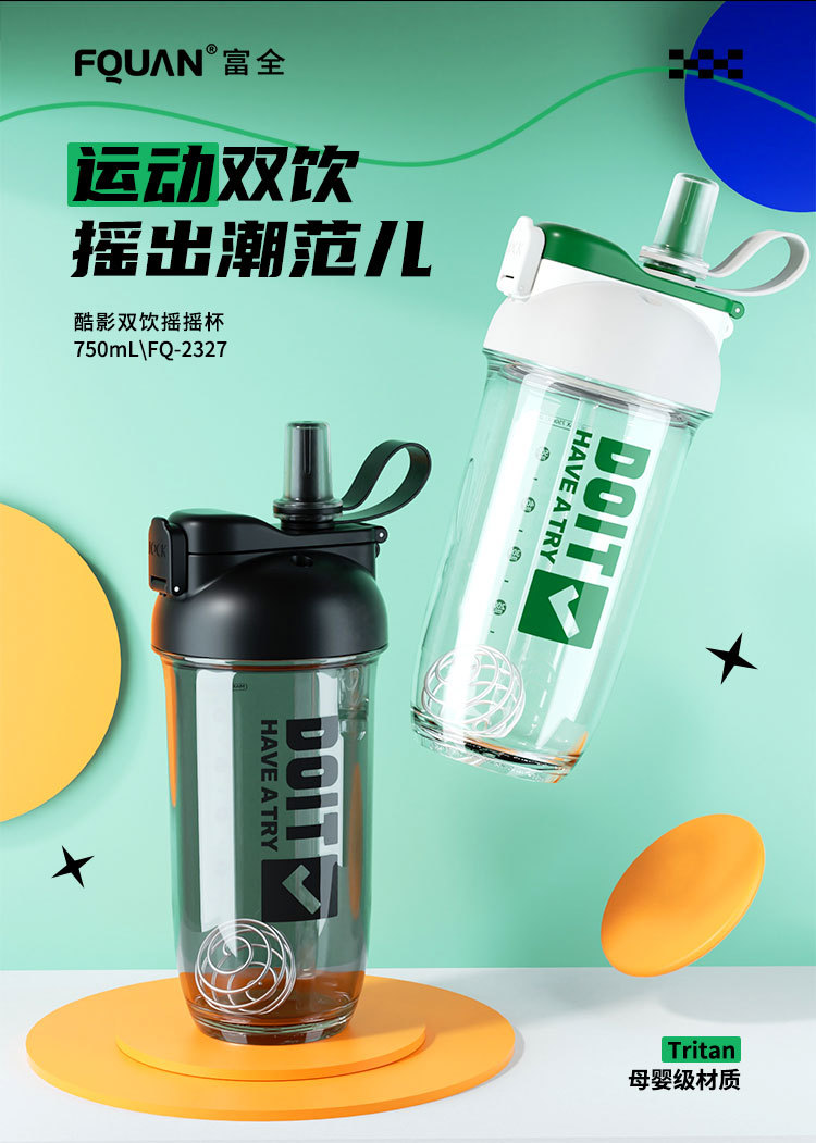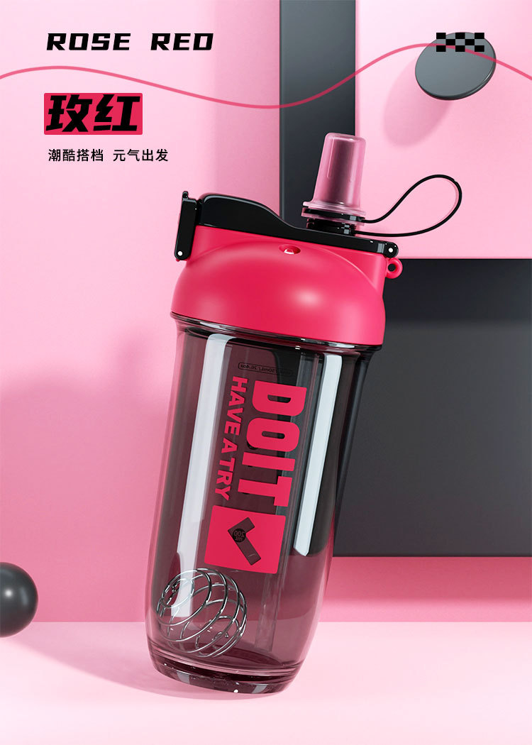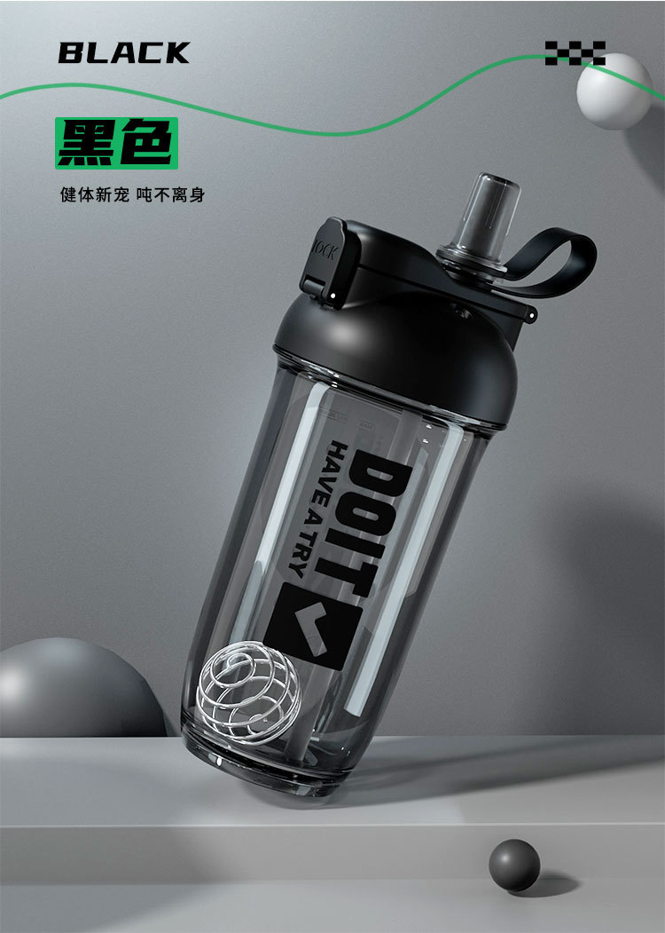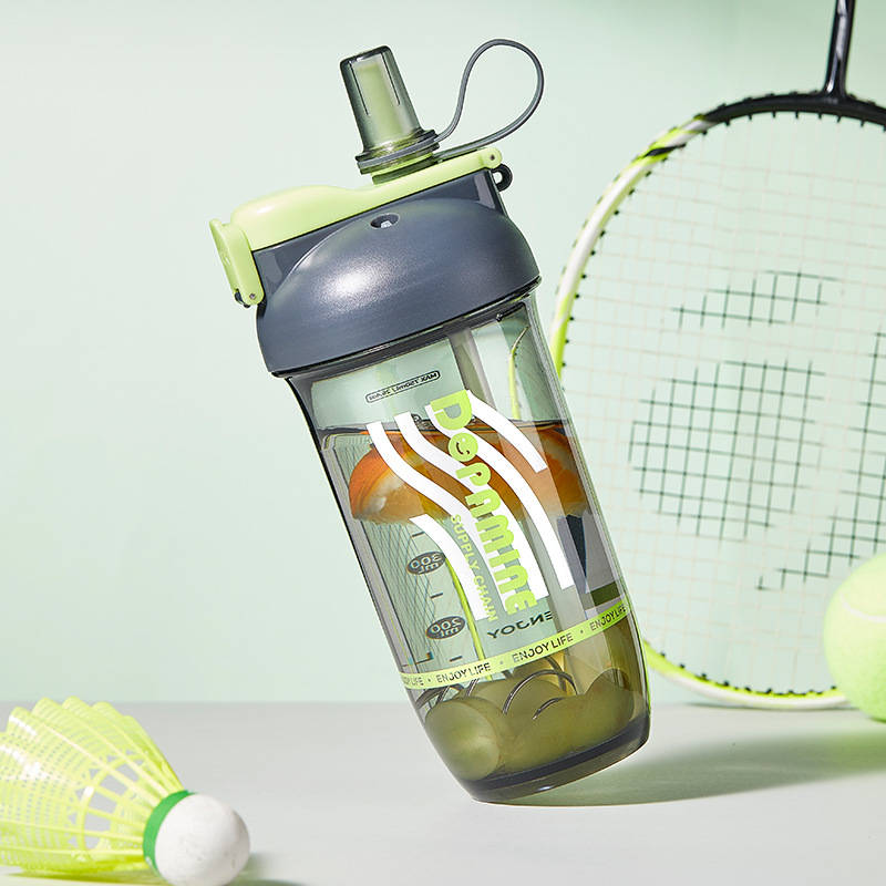 크리 에이 티브 더블 음료 쉐이크 컵 스틸 볼 커피 단백질 파우더 혼합 컵 트리탄 플라스틱 학생 컵
