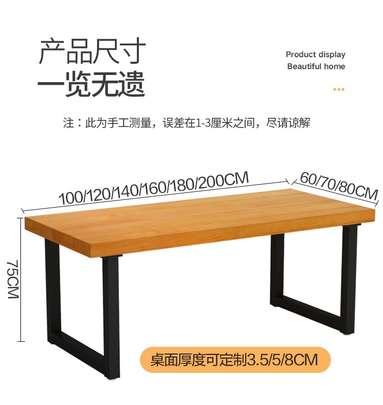 • 160*70*75 테이블 보드 두께 8cm (기본 검은 호두 색상)