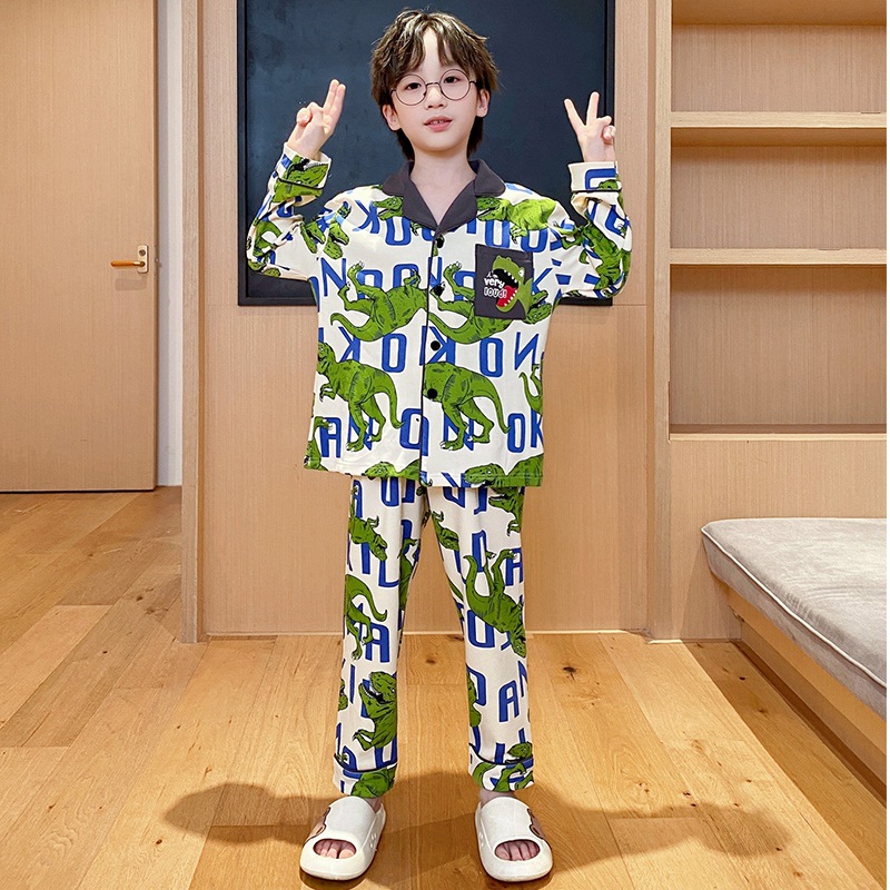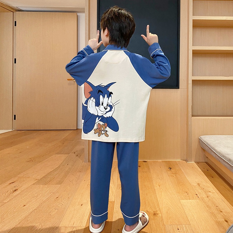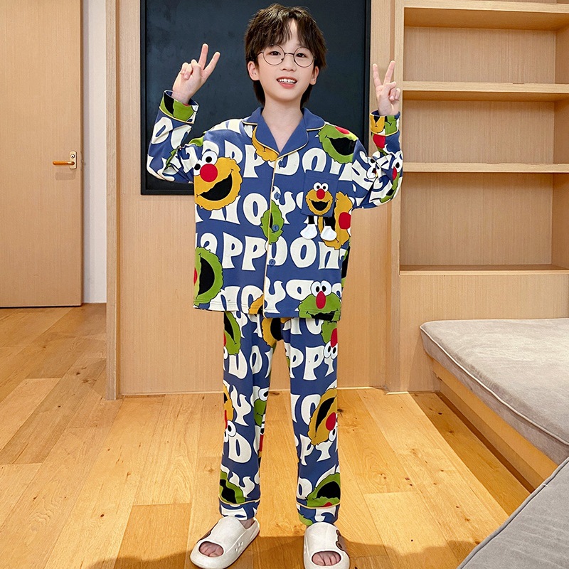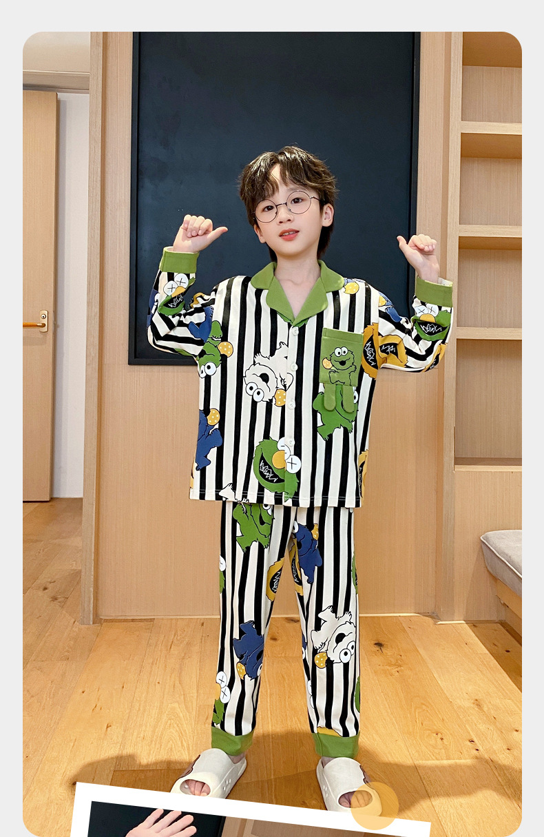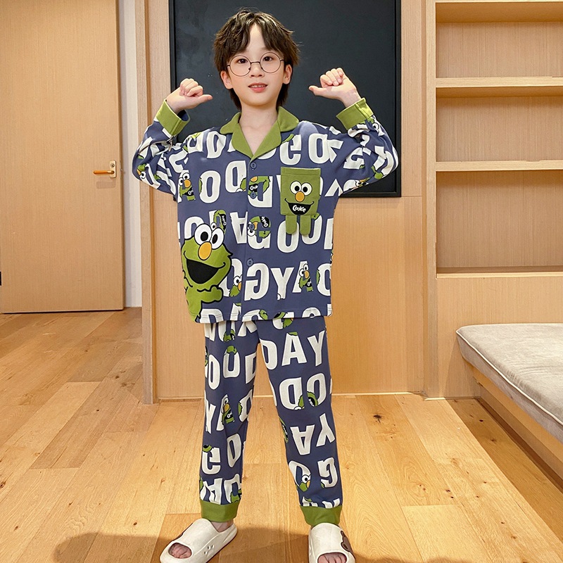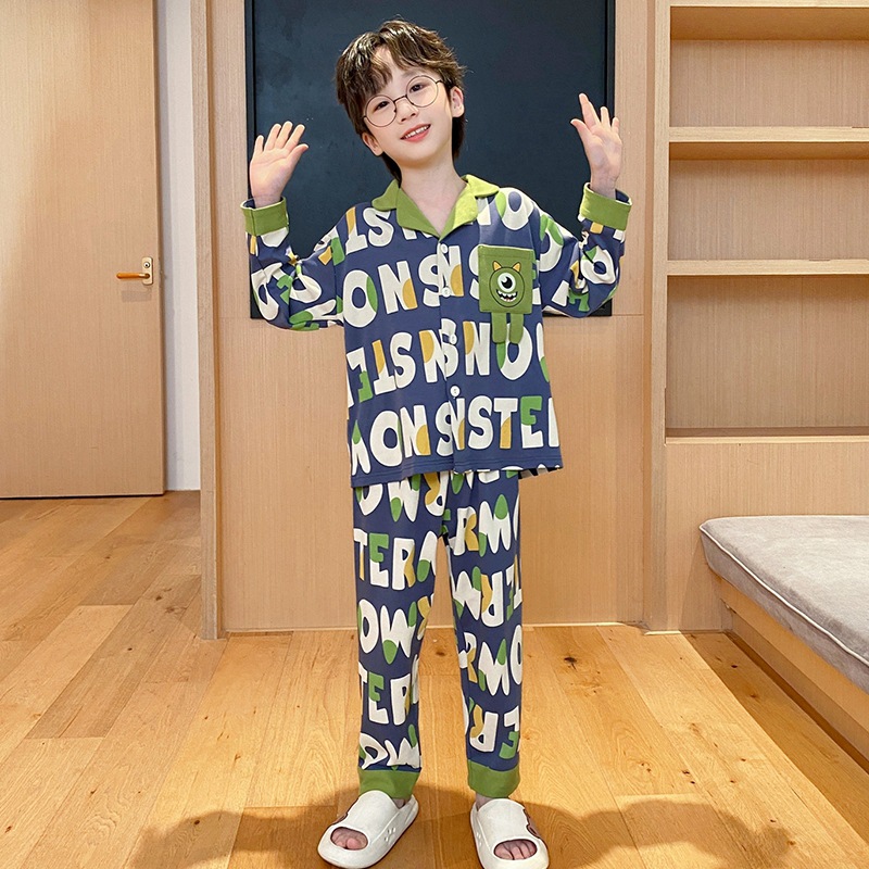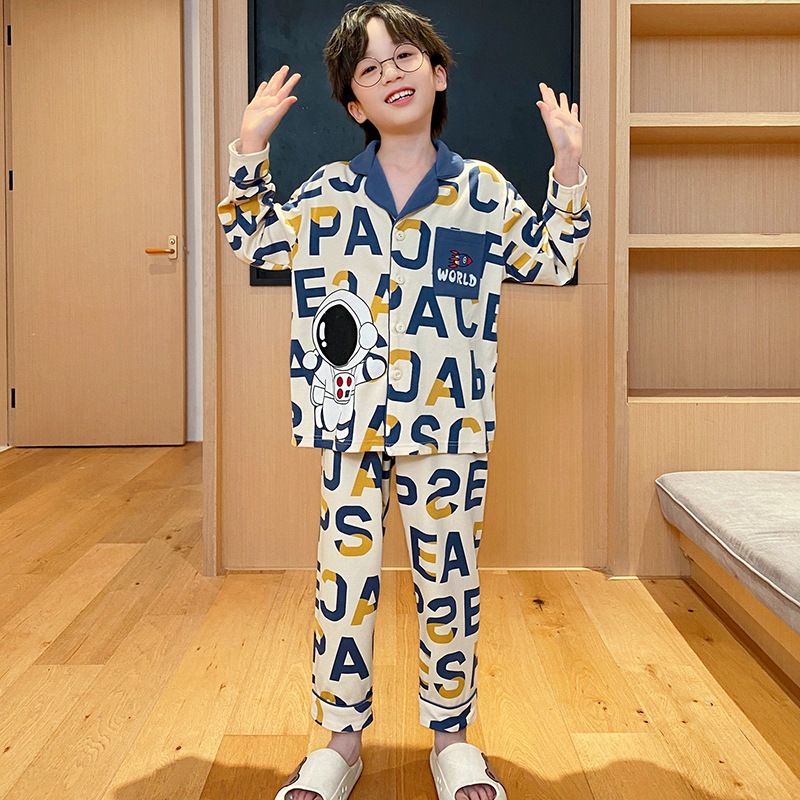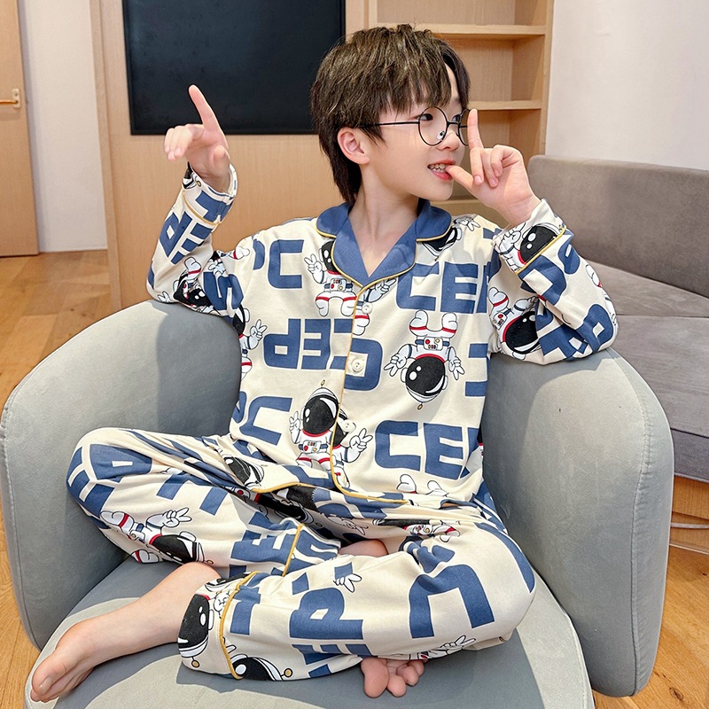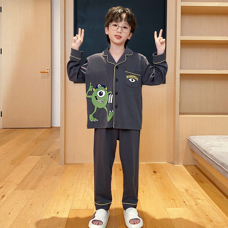 코튼 긴팔 봄 2024 어린이 잠옷 소년 인기 한국 만화 매체 및 큰 어린이 옷깃 소년