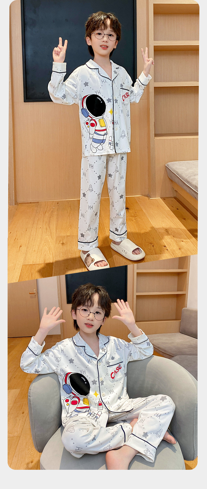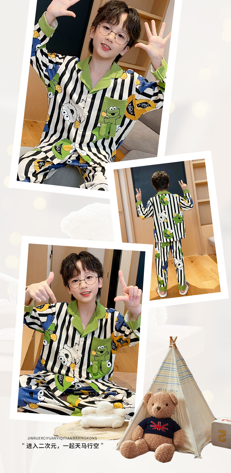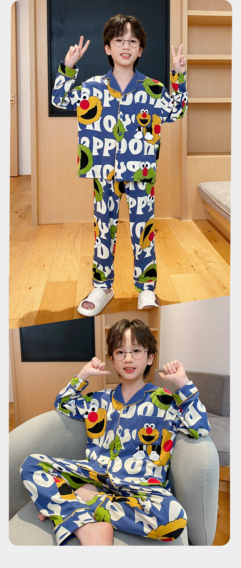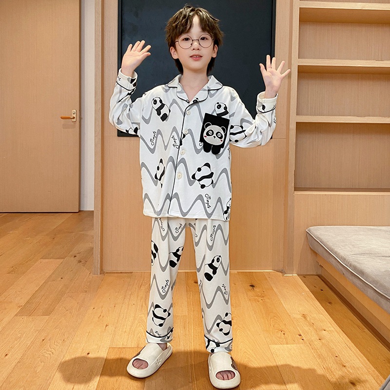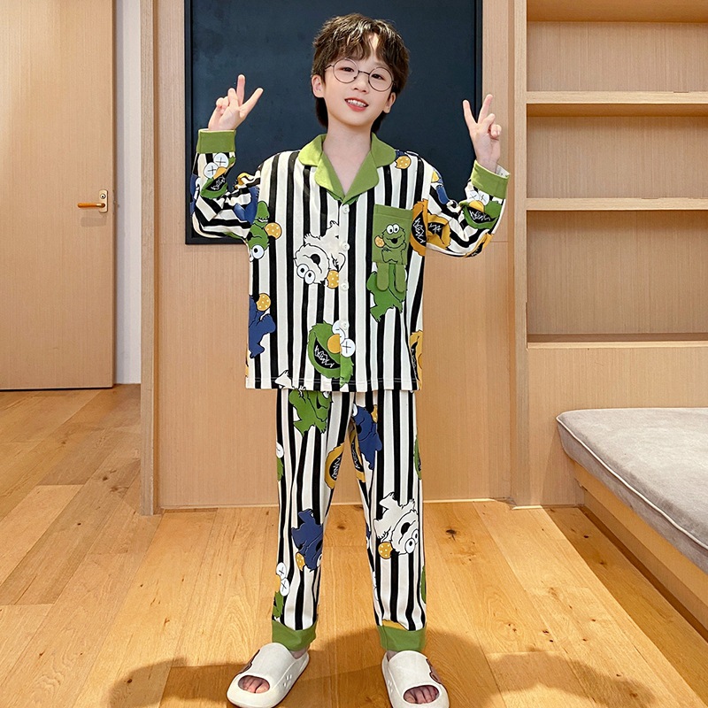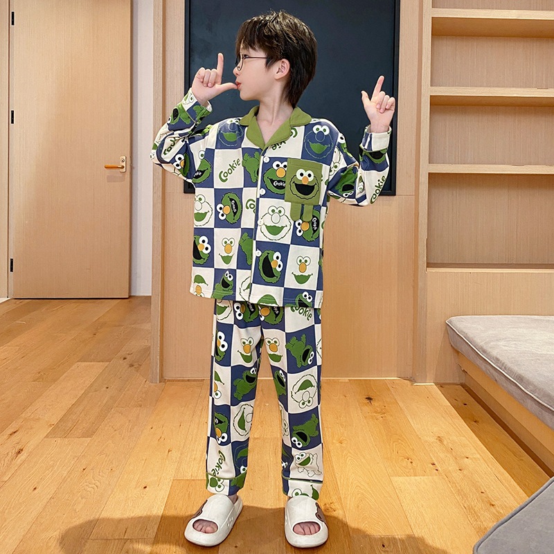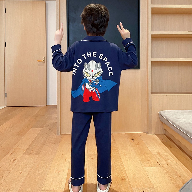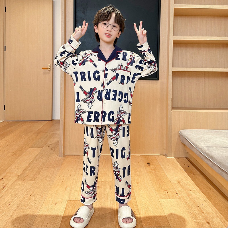 코튼 긴팔 봄 2024 어린이 잠옷 소년 인기 한국 만화 매체 및 큰 어린이 옷깃 소년