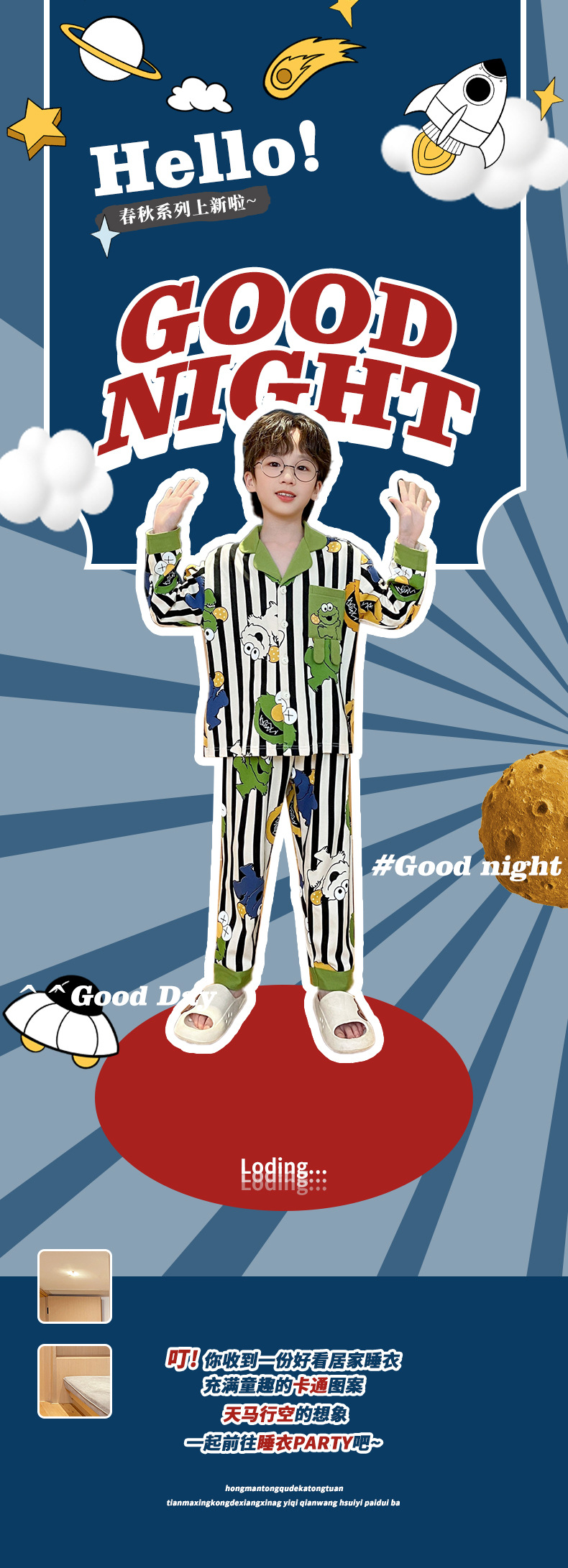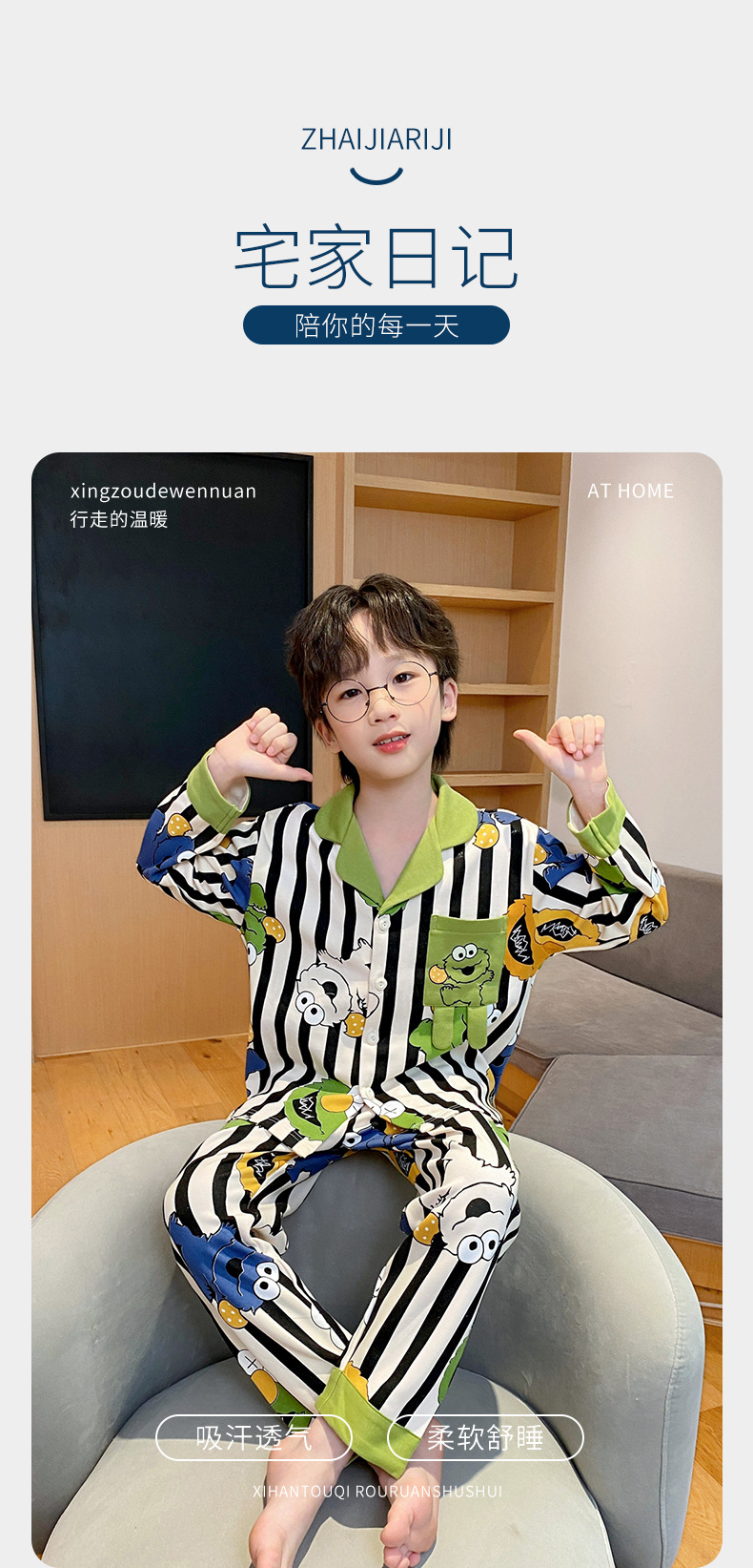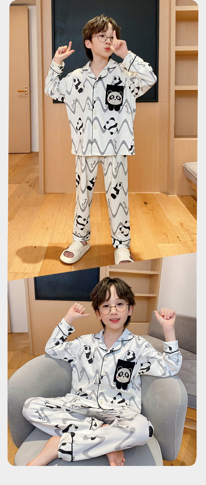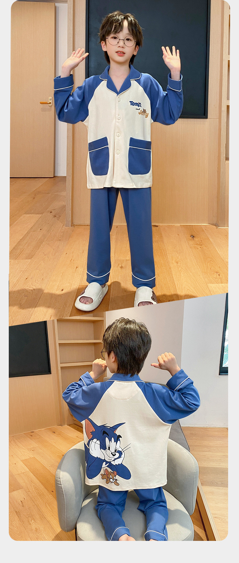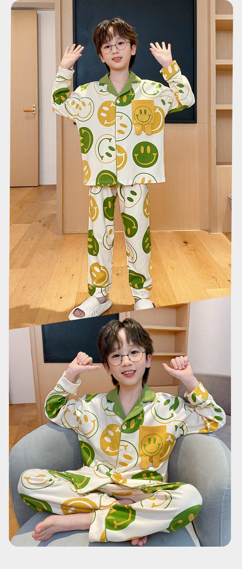 코튼 긴팔 봄 2024 어린이 잠옷 소년 인기 한국 만화 매체 및 큰 어린이 옷깃 소년