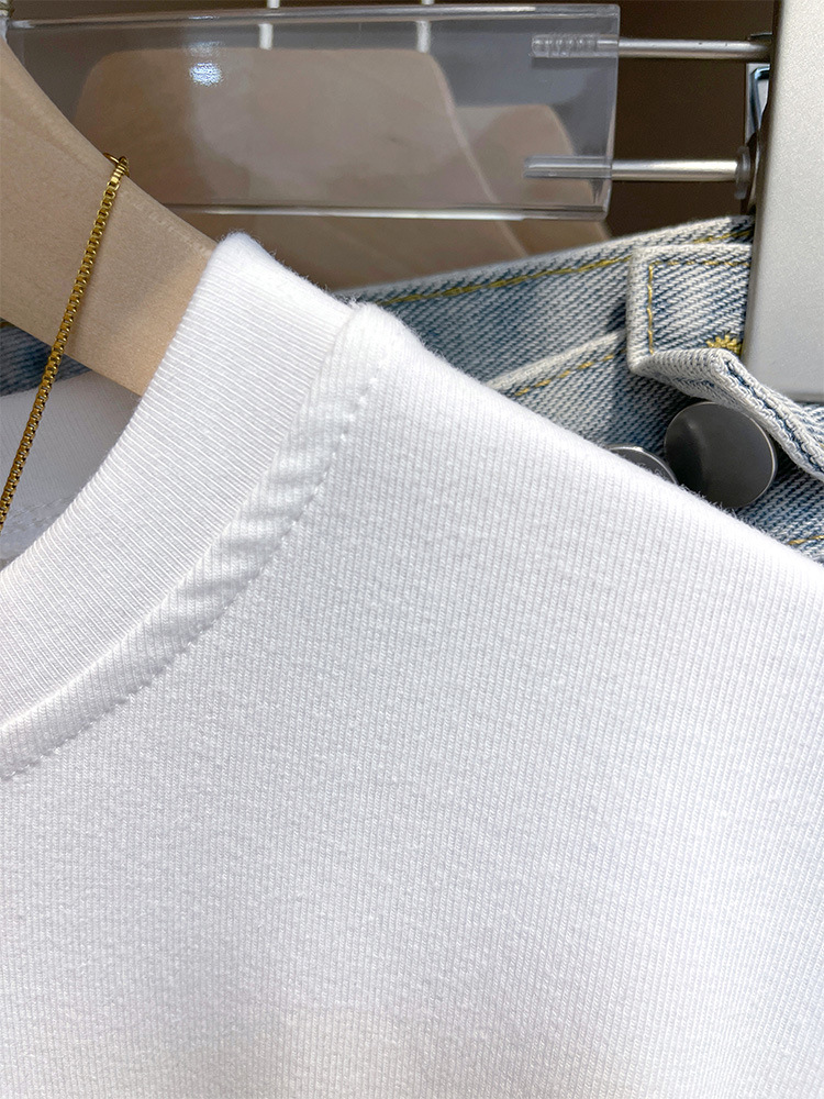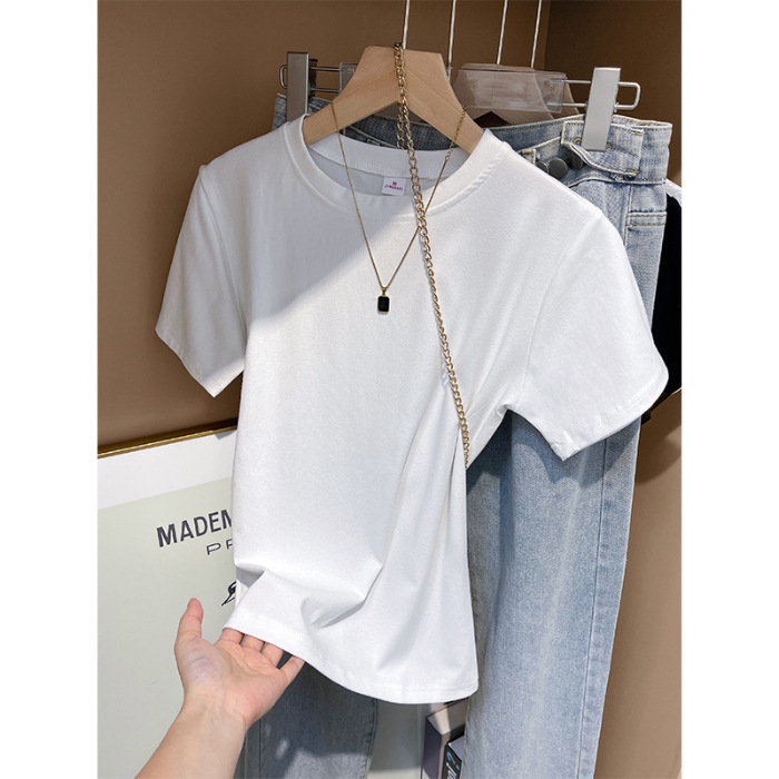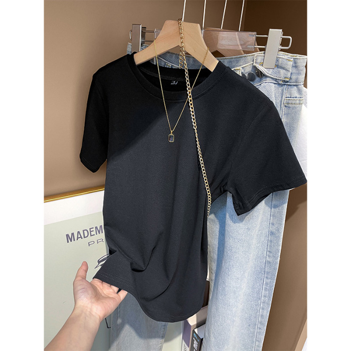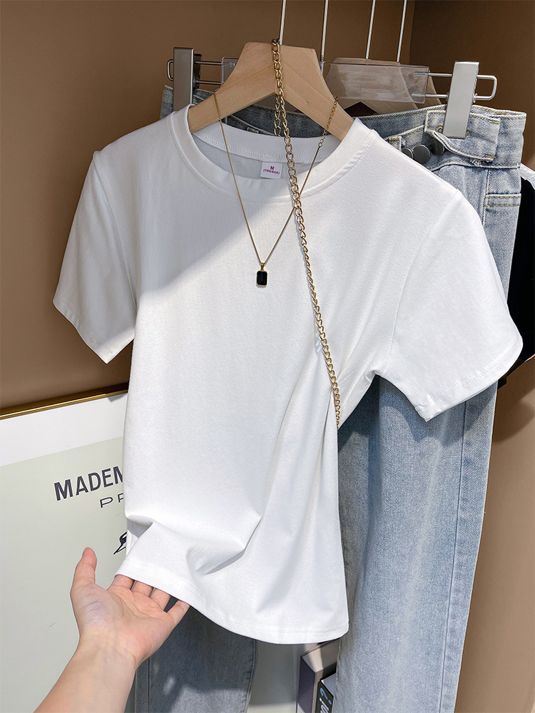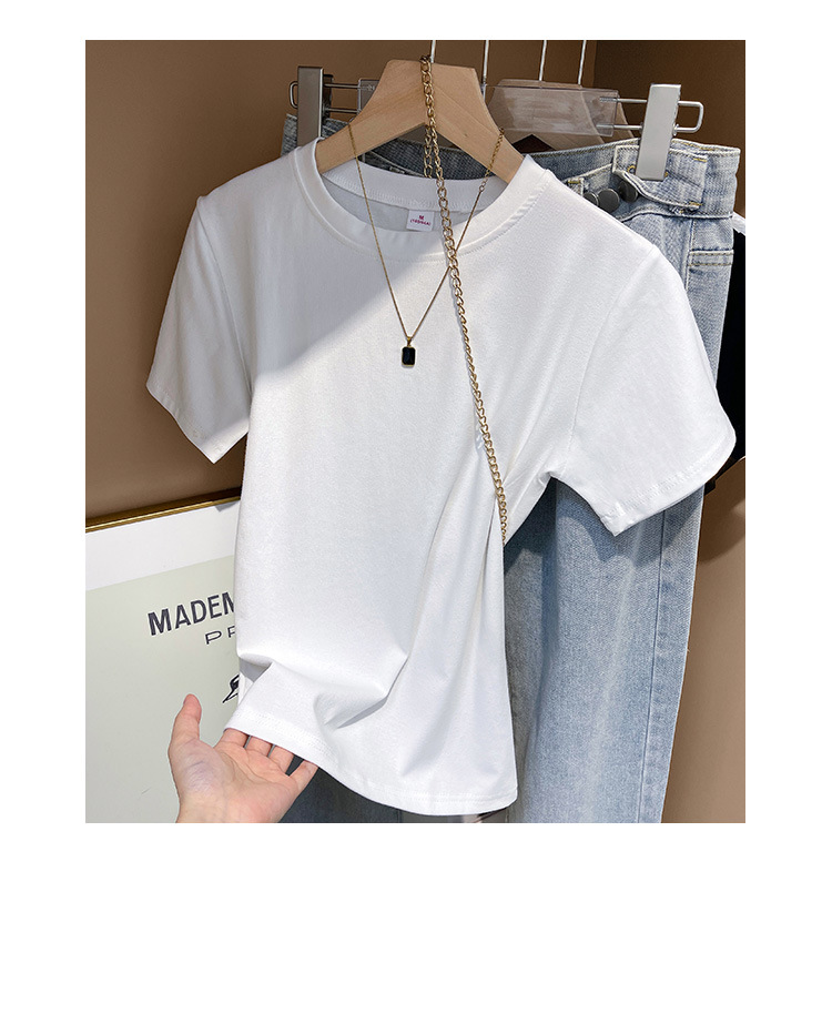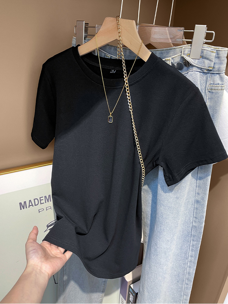 대외 무역 국경 도매 여름 모조 면화 어깨 반팔 티셔츠 여성용 느슨한 올 매치 솔리드 컬러 Bottoming Top스토어 가기