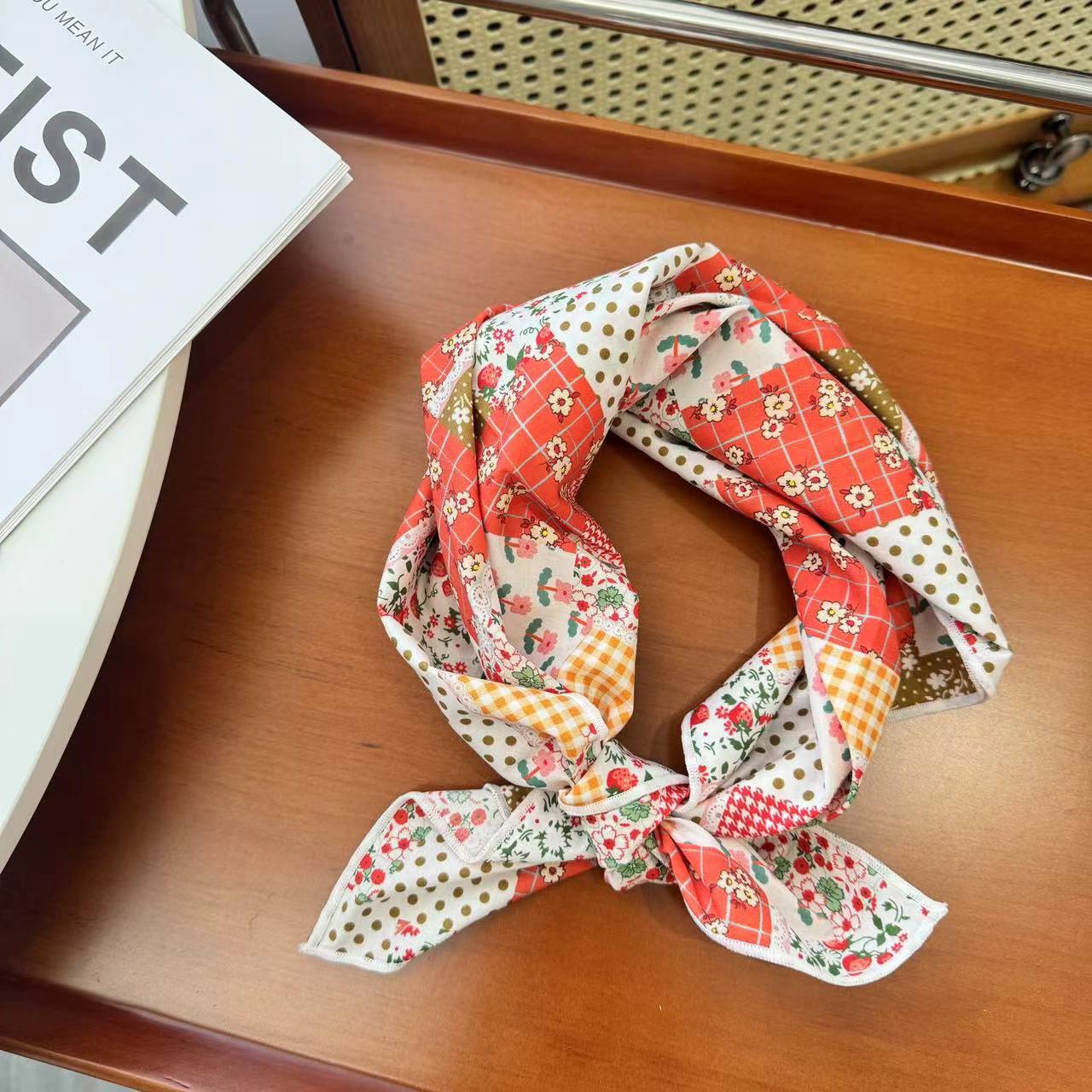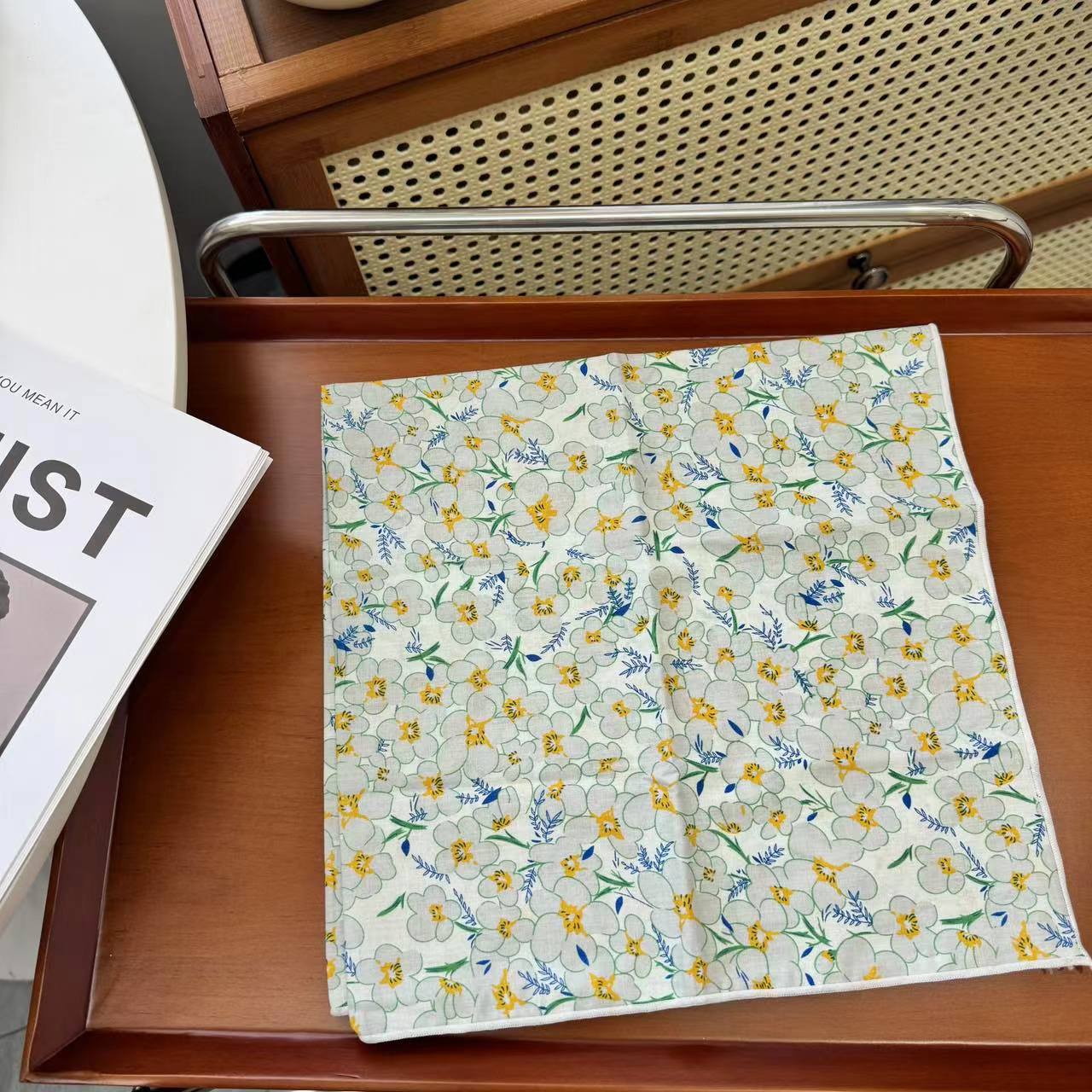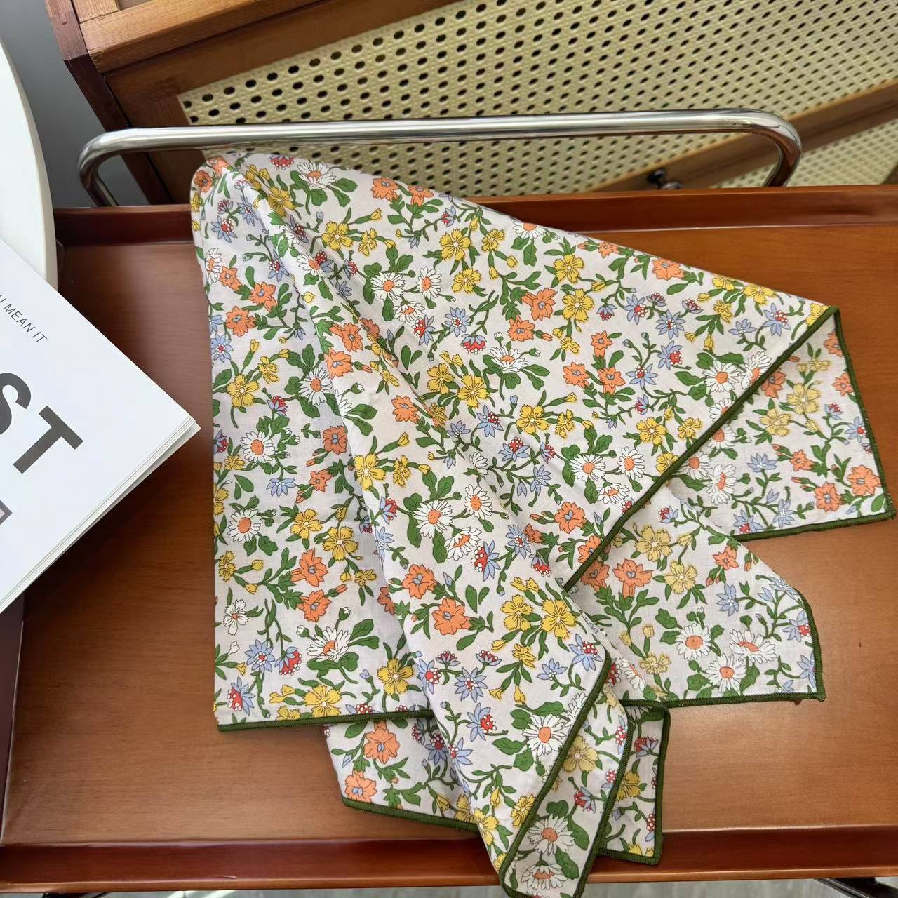 순수한 면 작은 광장 스카프 꽃 복고풍 작은 신선한 예술 스카프 실크 스카프 장식 헤드 스카프 헤어 벨트 스카프 꽃 한국 스타일스토어 가기